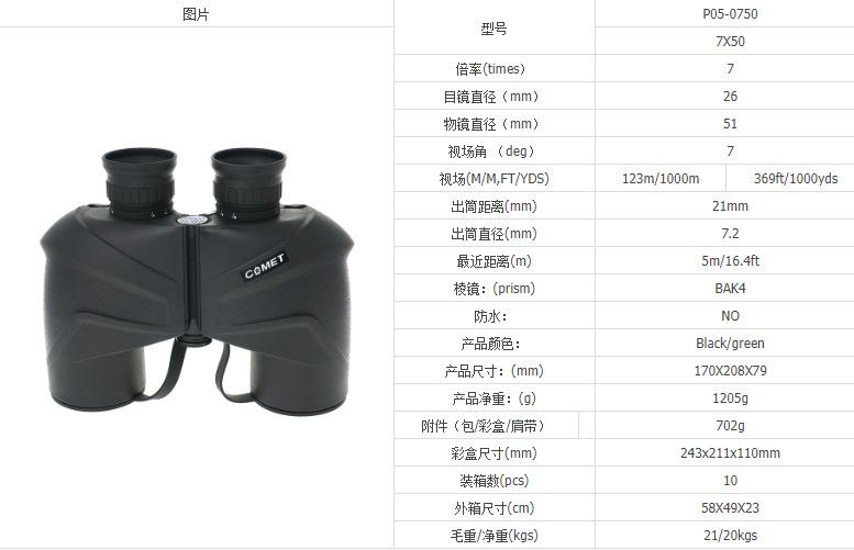 Telescopio Náutico Comet de Alta Potencia y Alta Definición 7x50 Binocular Visión Nocturna con Poca Luz Lupa Equipo para Exteriores