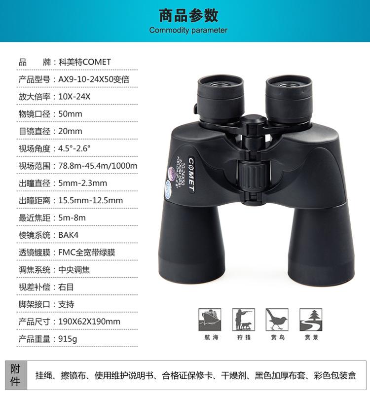 Binoculares Komet 10-24 Zoom Continuo Alta Definición Alta Potencia Visión Nocturna con Poca Luz Paisaje