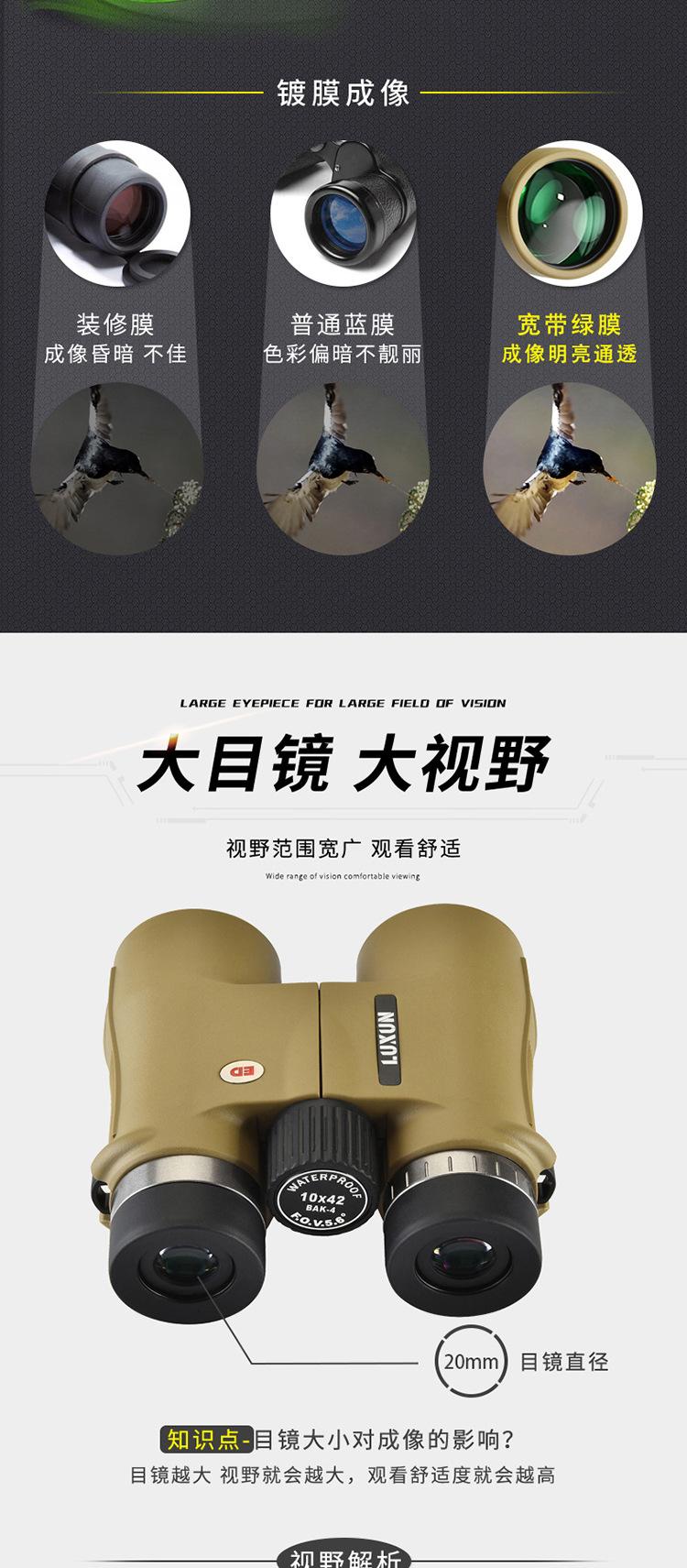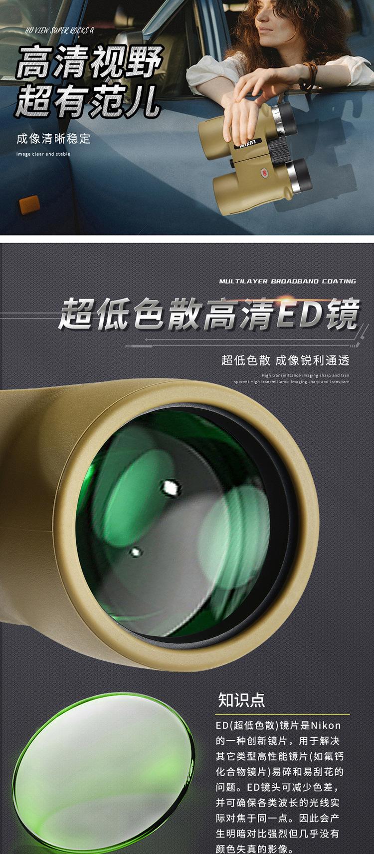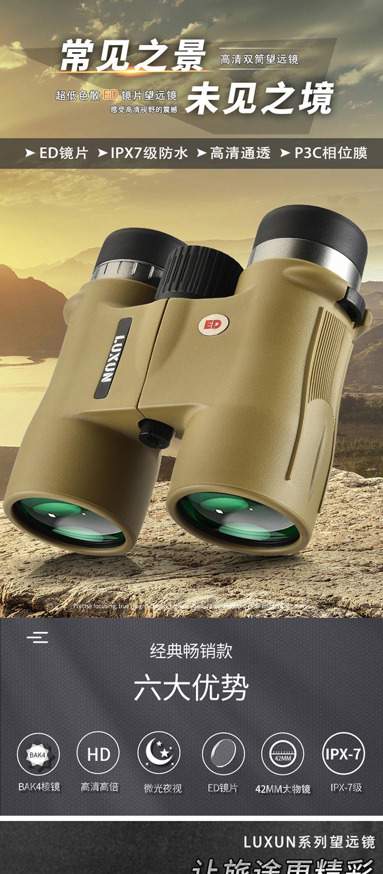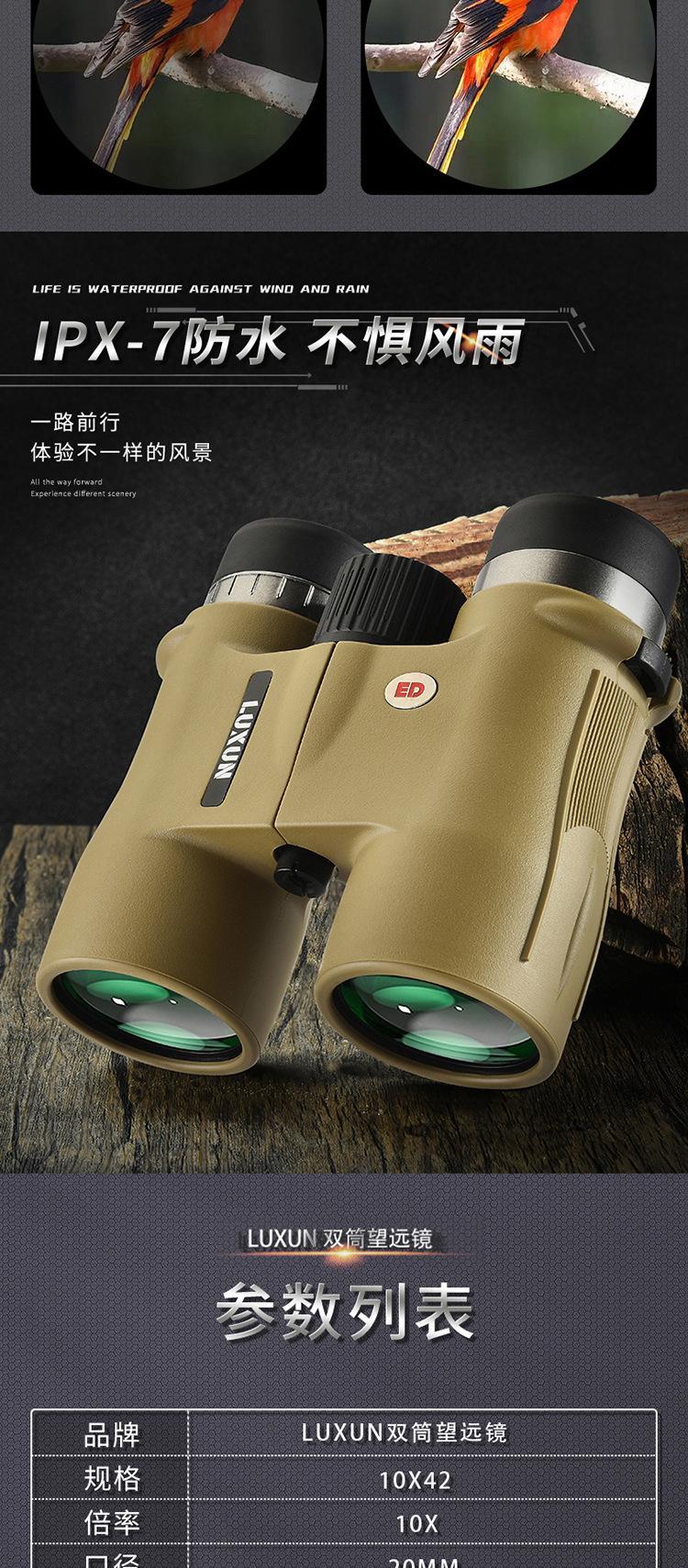 Binocular 10X42Ed Transfronterizo Telescopio Portátil de Alta Potencia Alta Definición Visión Nocturna con Poca Luz Relleno de Nitrógeno Impermeable Ipx7 Ocular Grande