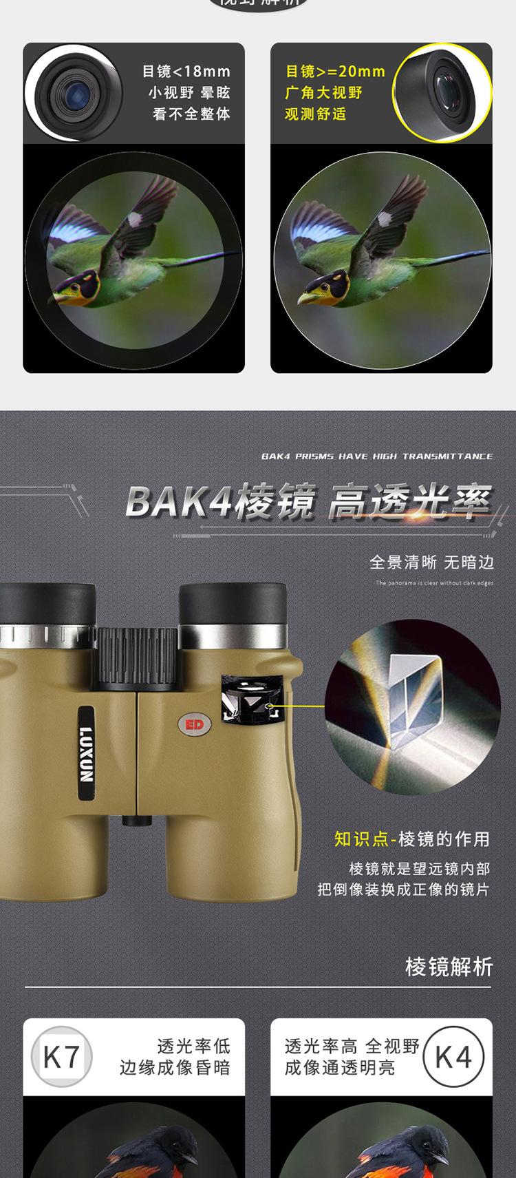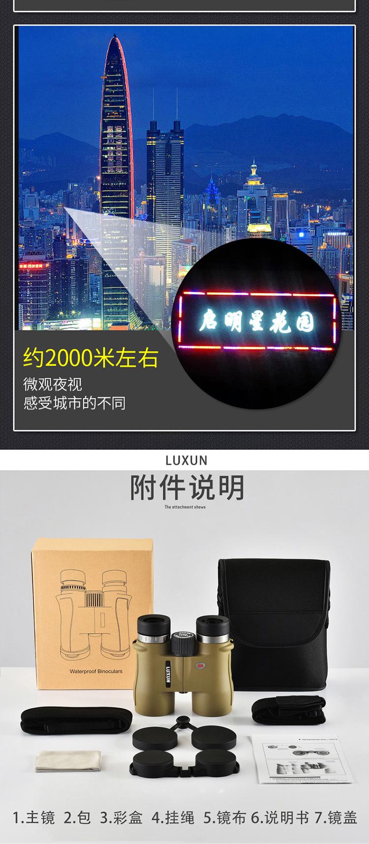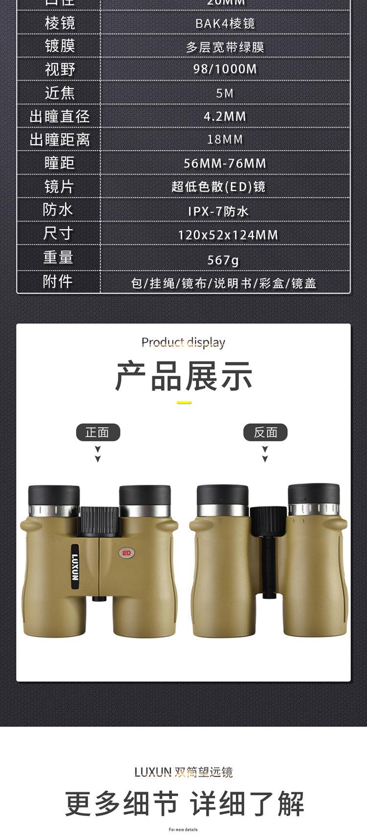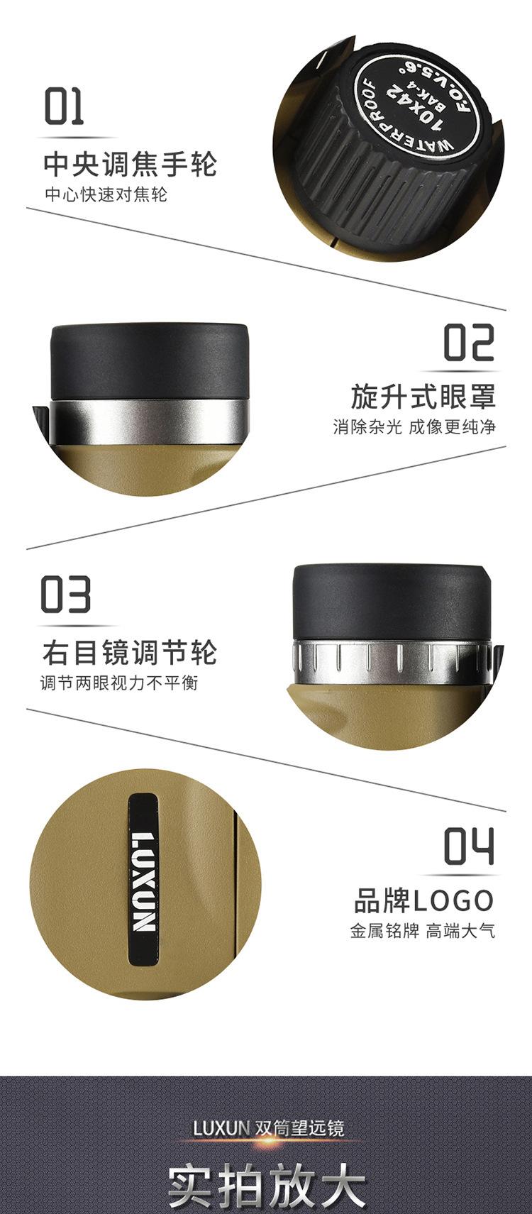 Binocular 10X42Ed Transfronterizo Telescopio Portátil de Alta Potencia Alta Definición Visión Nocturna con Poca Luz Relleno de Nitrógeno Impermeable Ipx7 Ocular Grande