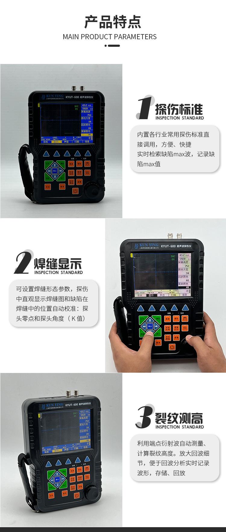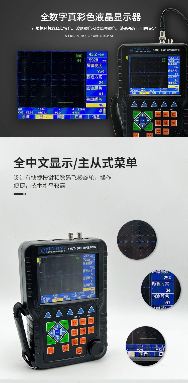 Detector de Fallas Ultrasónico Digital Kyut-600 Detector de Fallas de Soldadura de Estructura de Acero Detección de Fallas Ultrasónica No Destructiva