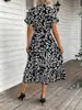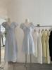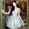 Vestido Azul Ondas de Agua Estilo Suave Estampado para Primavera y Verano