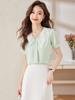Verano Ropa de Negocios Nueva Tops para Mujer Camisas Jersey Manga Corta Camisas Básicas Ajustadas Ajustadas Camisas de Encaje de Manga Corta