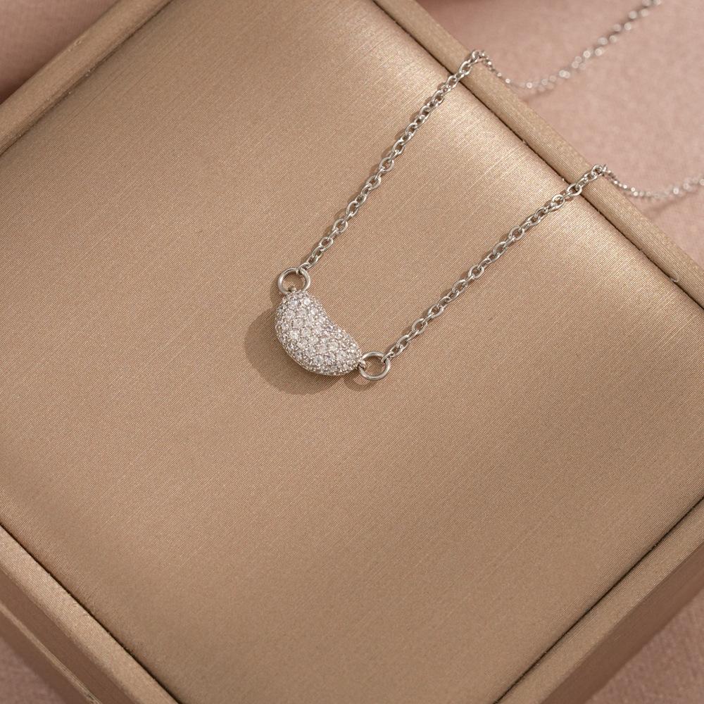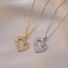 Collar para Mujer Celebridad de Internet Amor Zircón Nicho Diamante Completo Nuevo Estilo Diseño Sensación Colgante Elegante Simple Corazón de Durazno Acero Titanio Collar