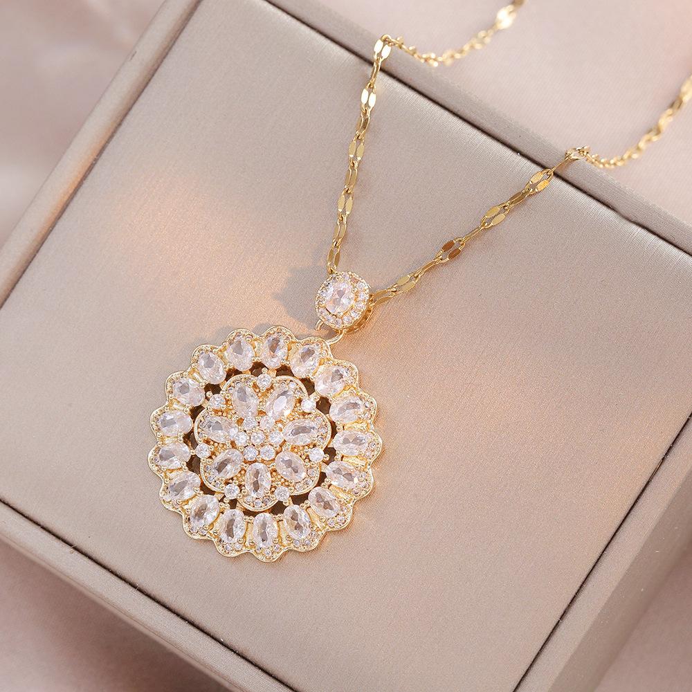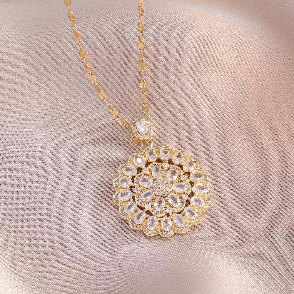 Collar para mujer, estilo japonés-coreano, elegante, de moda, con colgante de flor, de acero de titanio, con circonitas y diamantes, cadena de clavícula.
