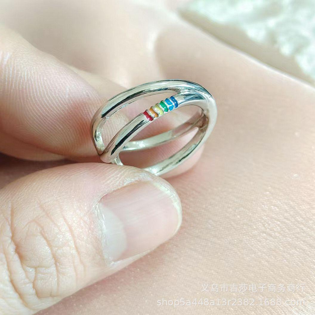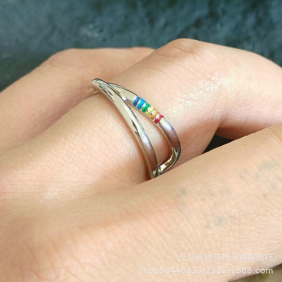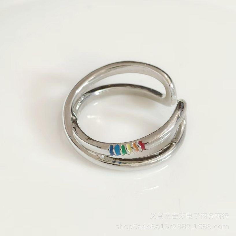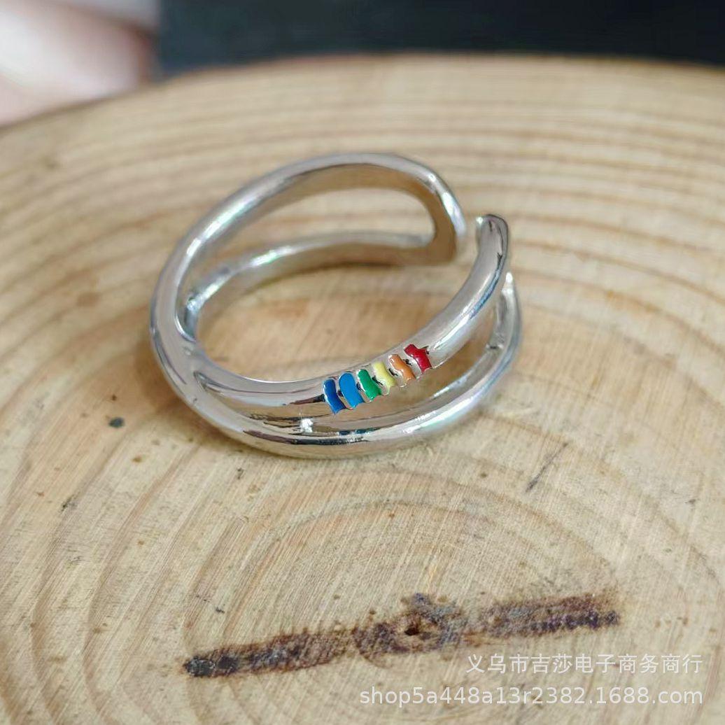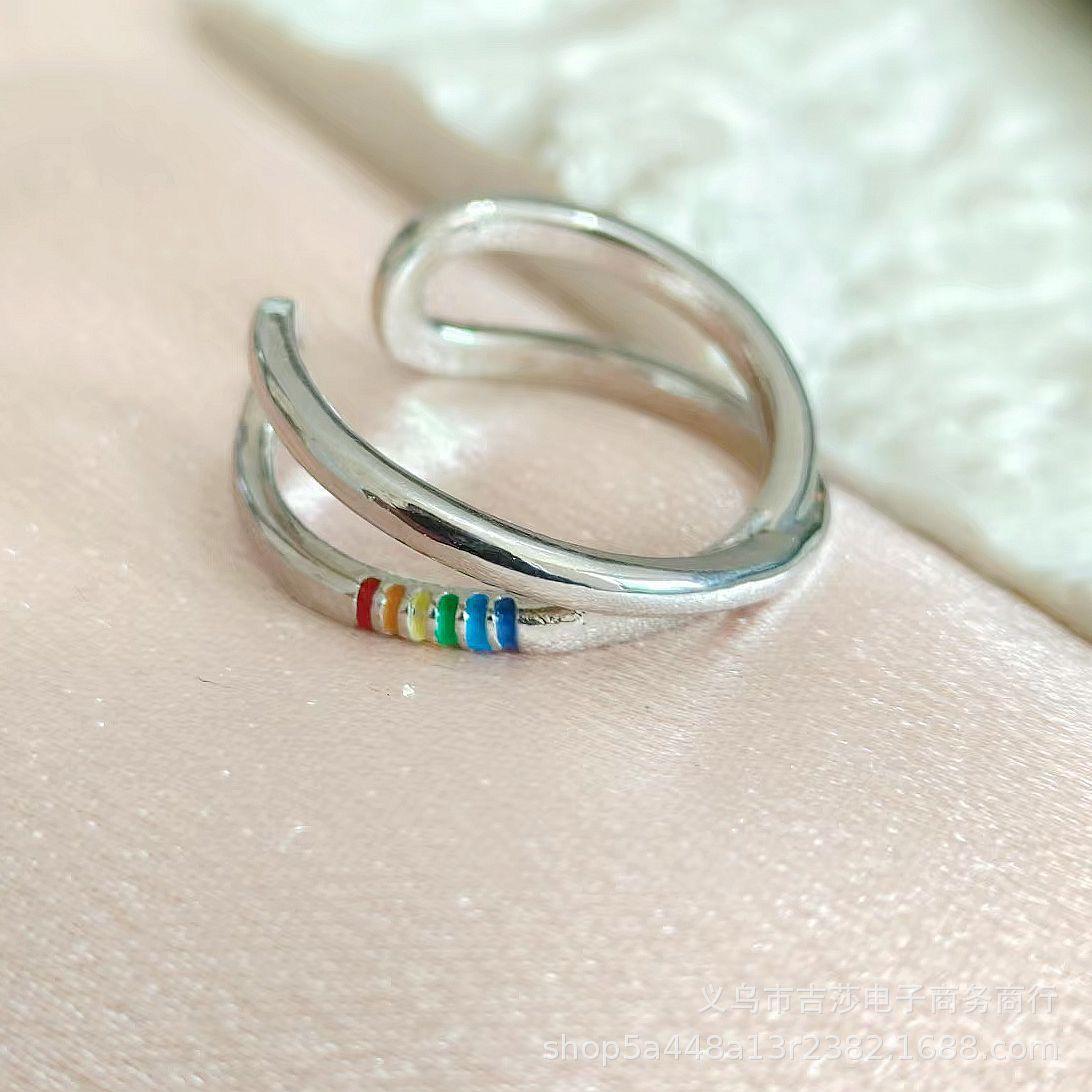 Anillo Arcoíris Goteo de Aceite Mobius Abierto Lujo Nicho Diseño Personalidad Trendy Versátil Colorido Anillo para Dedo Índice para Mujer