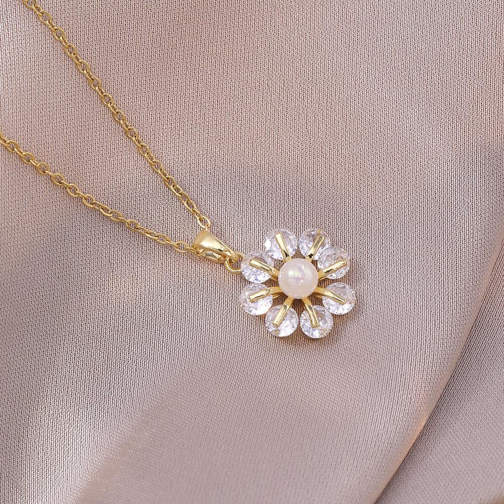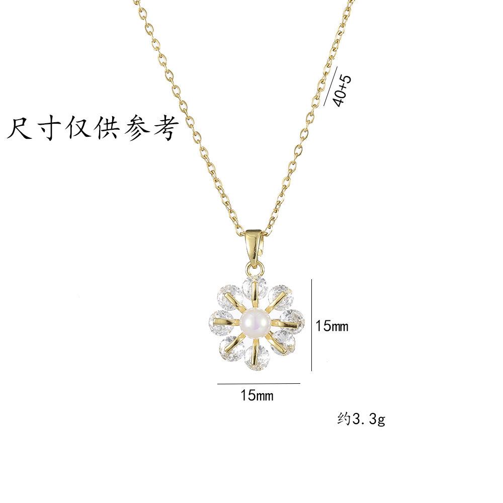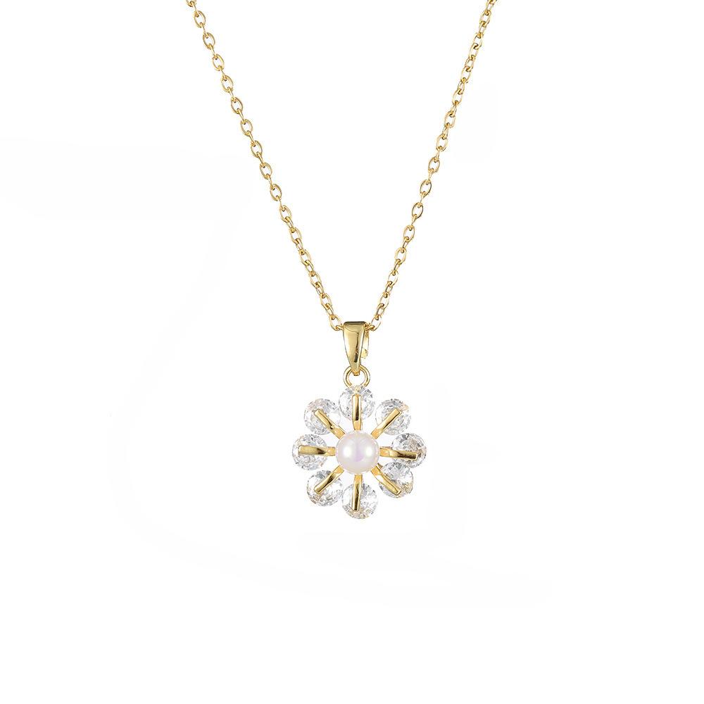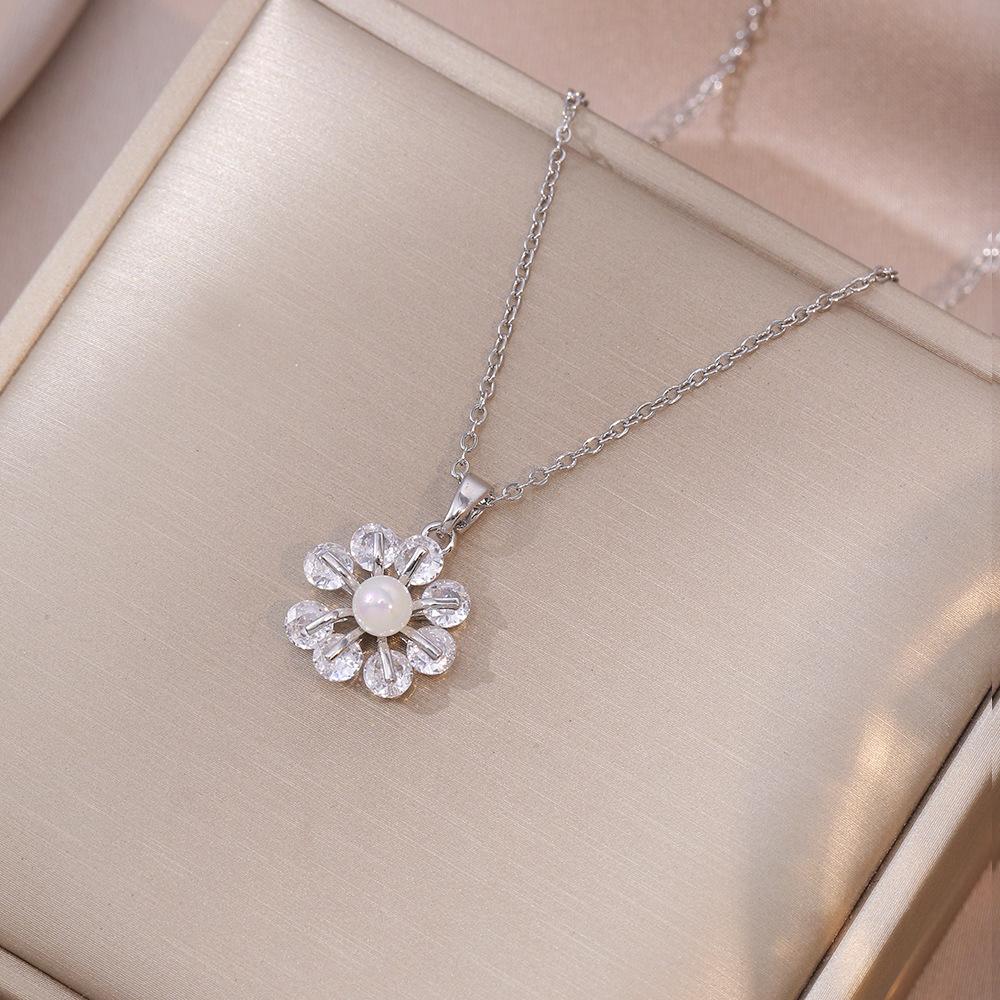 Collar de mujer con temperamento transfronterizo, cadena de clavícula con diseño de nicho, flor de perla y diamante con ocho destellos, de acero y titanio.