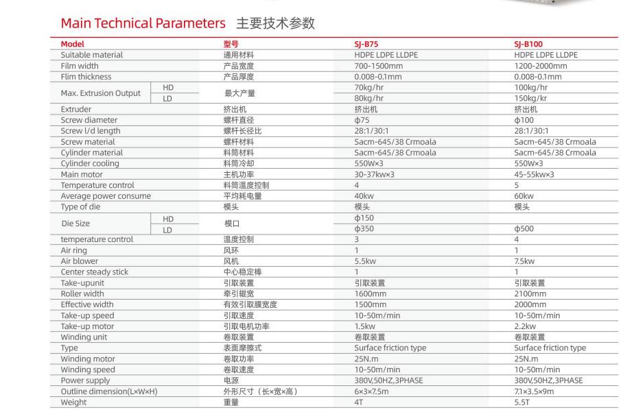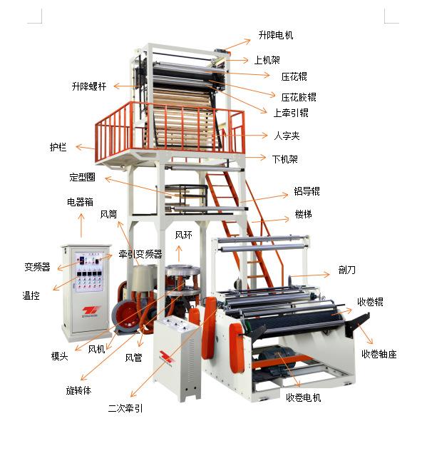 Se utiliza para el soplado de diversas películas plásticas de polietileno de baja densidad (LDPE) y polietileno de alta densidad (HDPE) con tiras de color. Ampliamente utilizada en el envasado de productos civiles e industriales, como alimentos, frutas, ropa, textiles y artículos de primera necesidad.