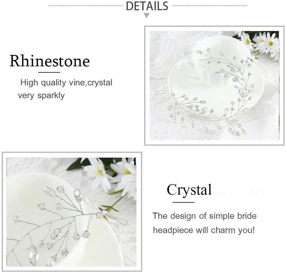 Diadema de Boda Amazon Bride Cristal Plata Hojas Accesorio para el Cabello Nupcial Diadema de Pedrería Tocado para Novia y Damas de Honor