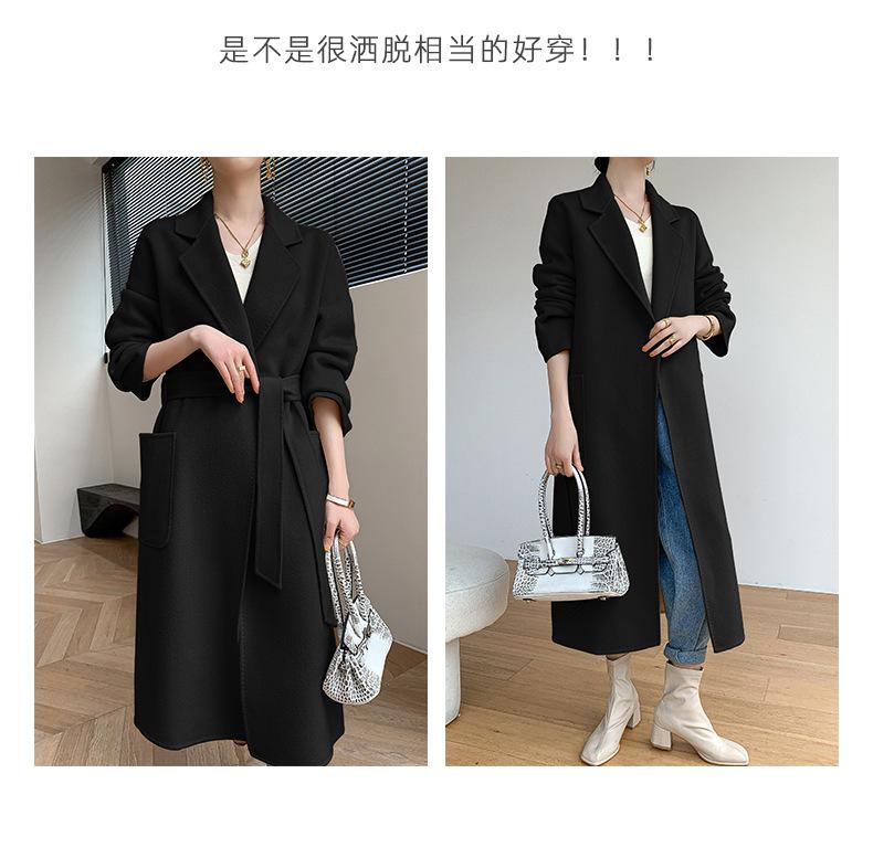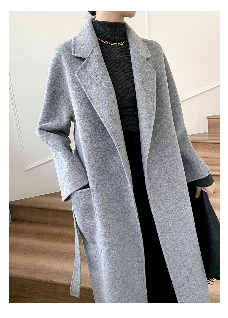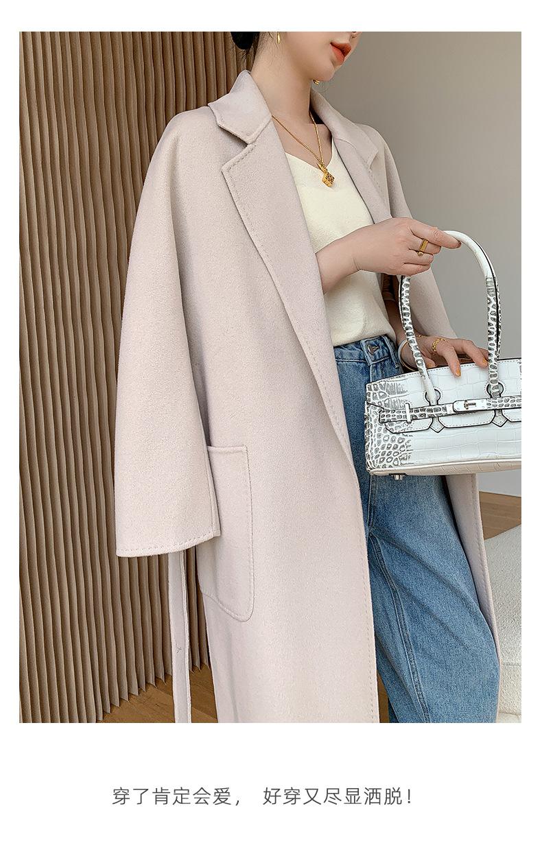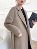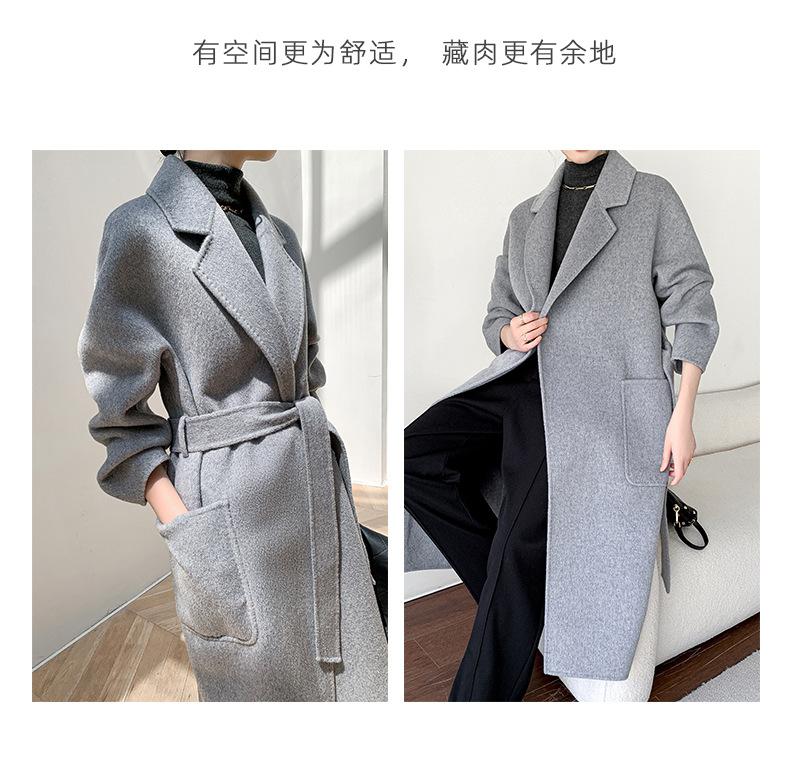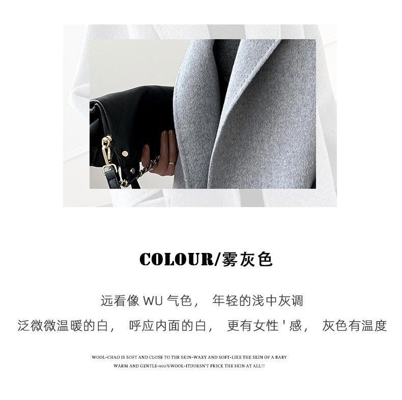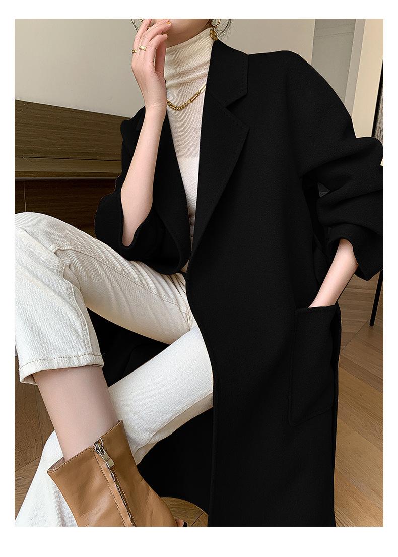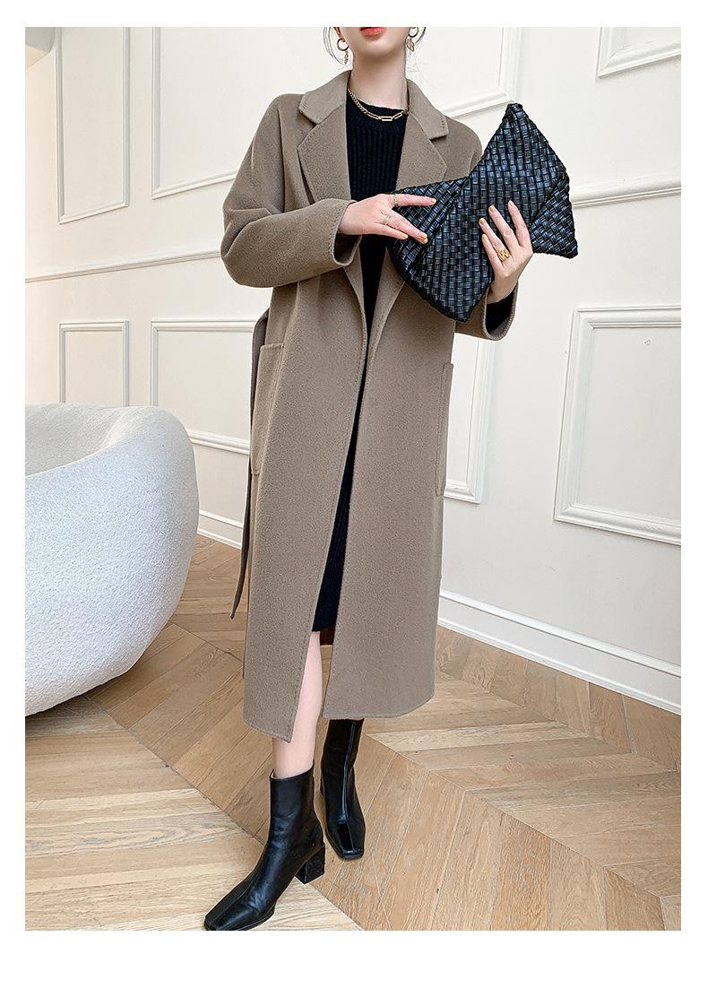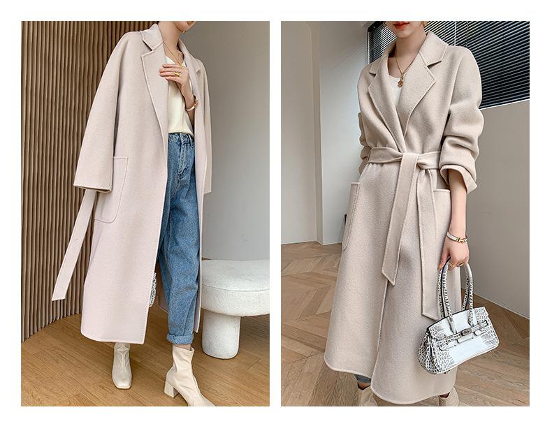 Abrigo de Lana de Doble Vista para Mujer, Largo Medio, Grueso para Invierno, Estilo Coreano Suelto de Moda, Abrigo para Mujer por Encima de la Rodilla con Diseño de Cinturón