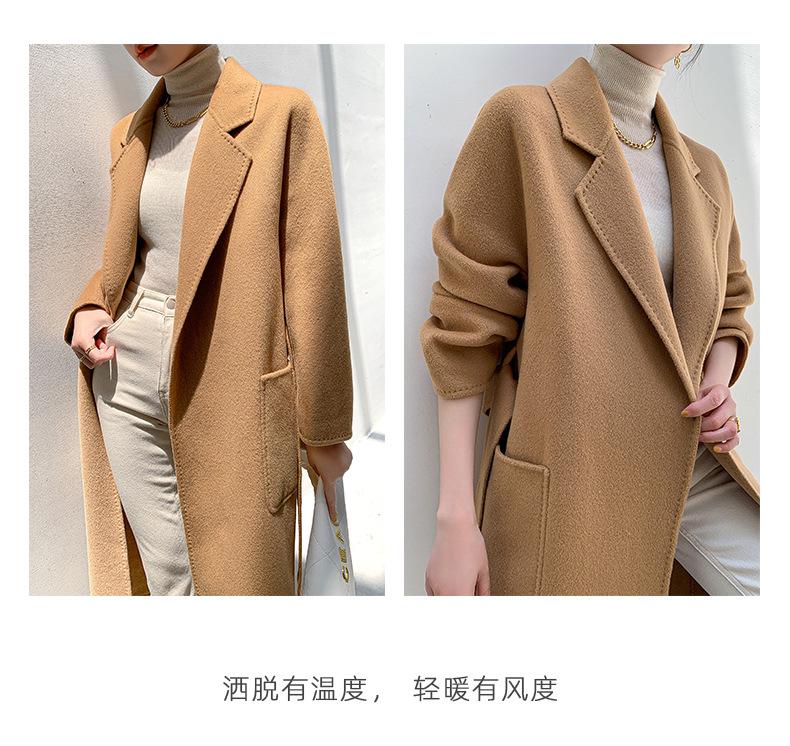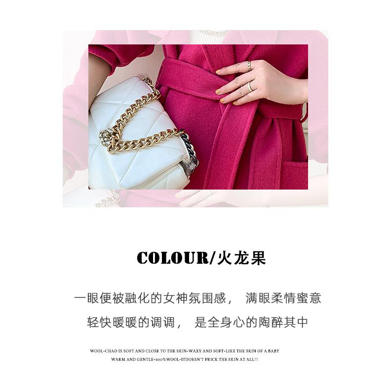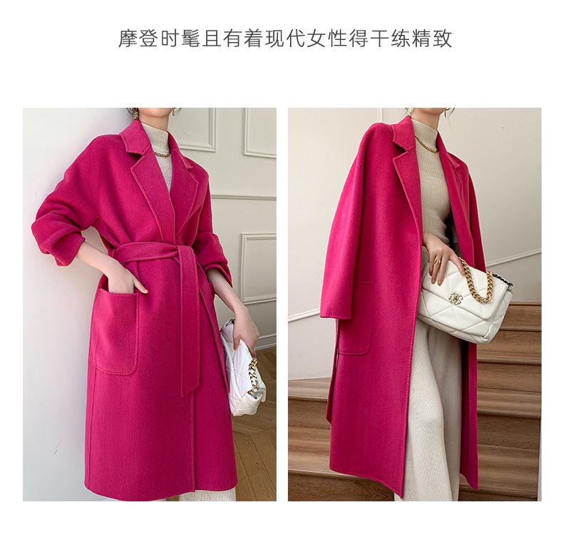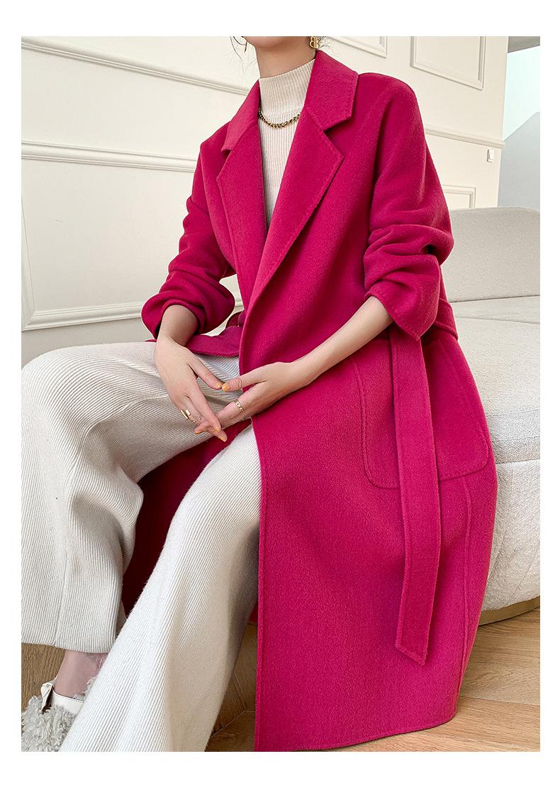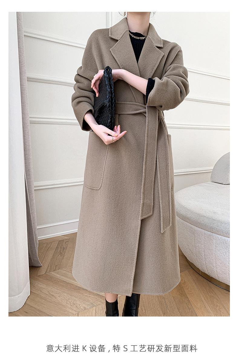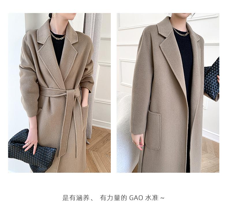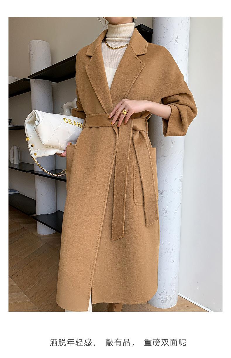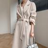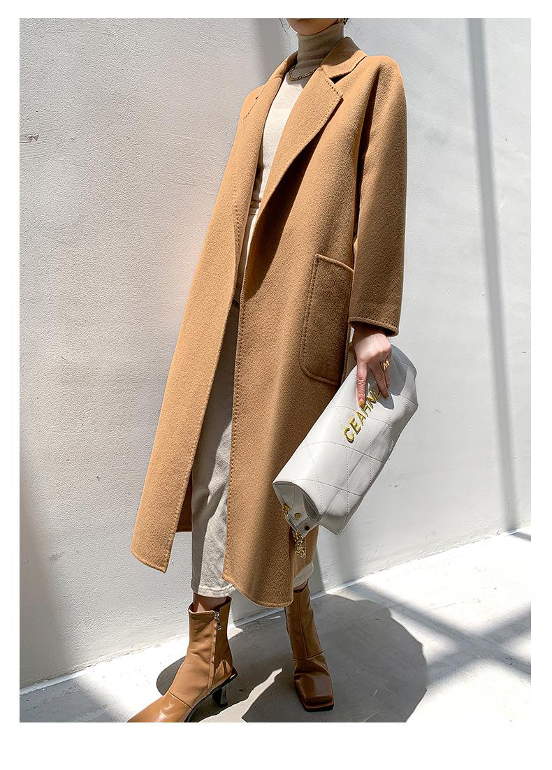 Abrigo de Lana de Doble Vista para Mujer, Largo Medio, Grueso para Invierno, Estilo Coreano Suelto de Moda, Abrigo para Mujer por Encima de la Rodilla con Diseño de Cinturón