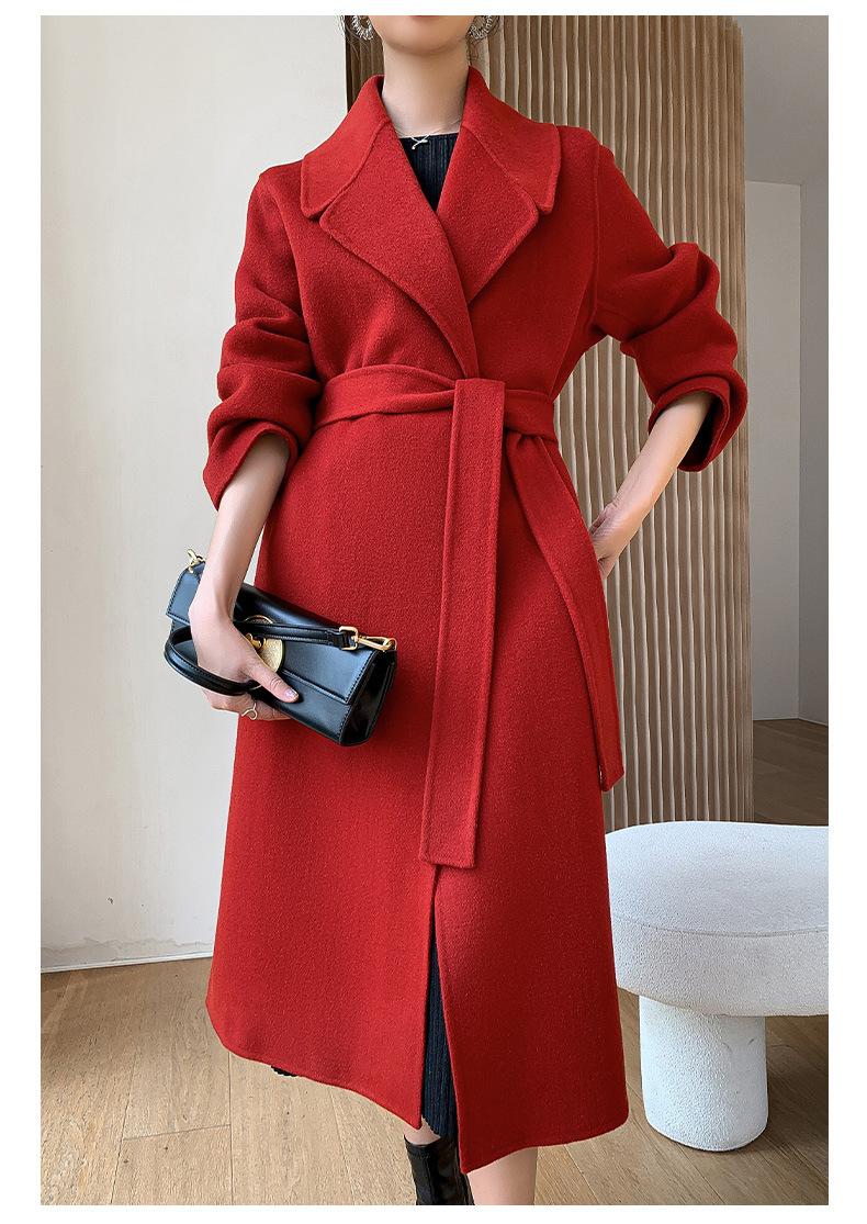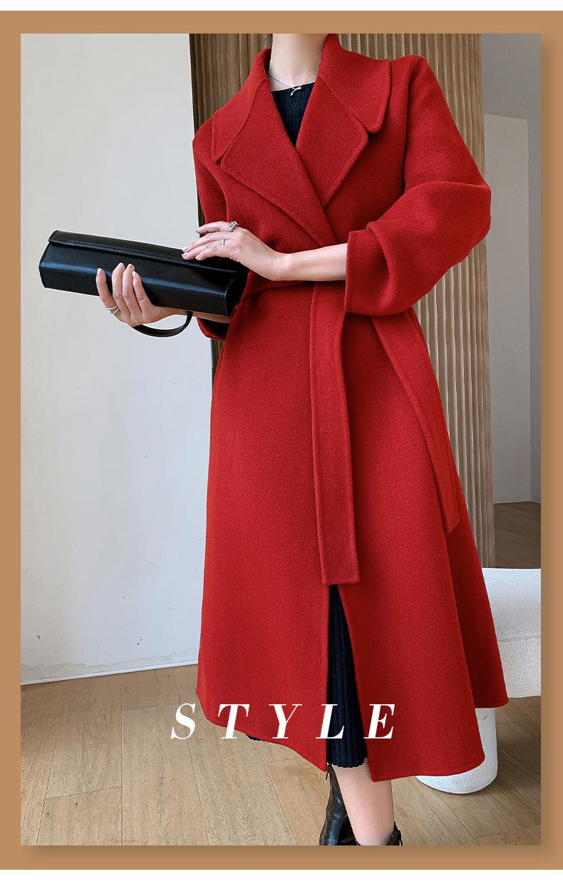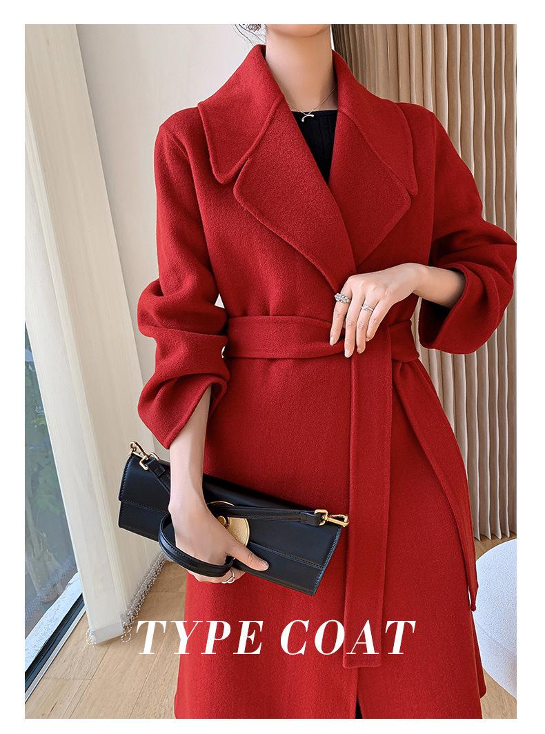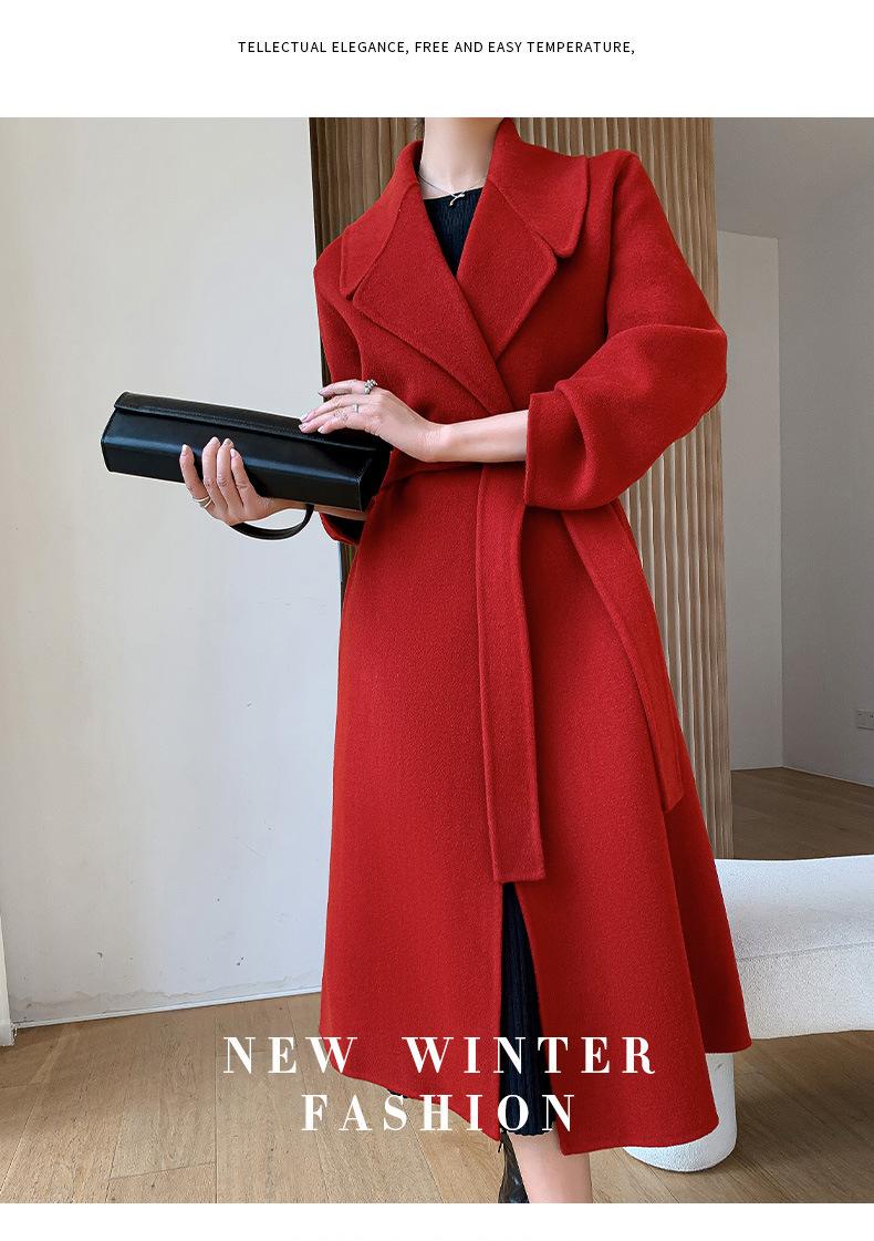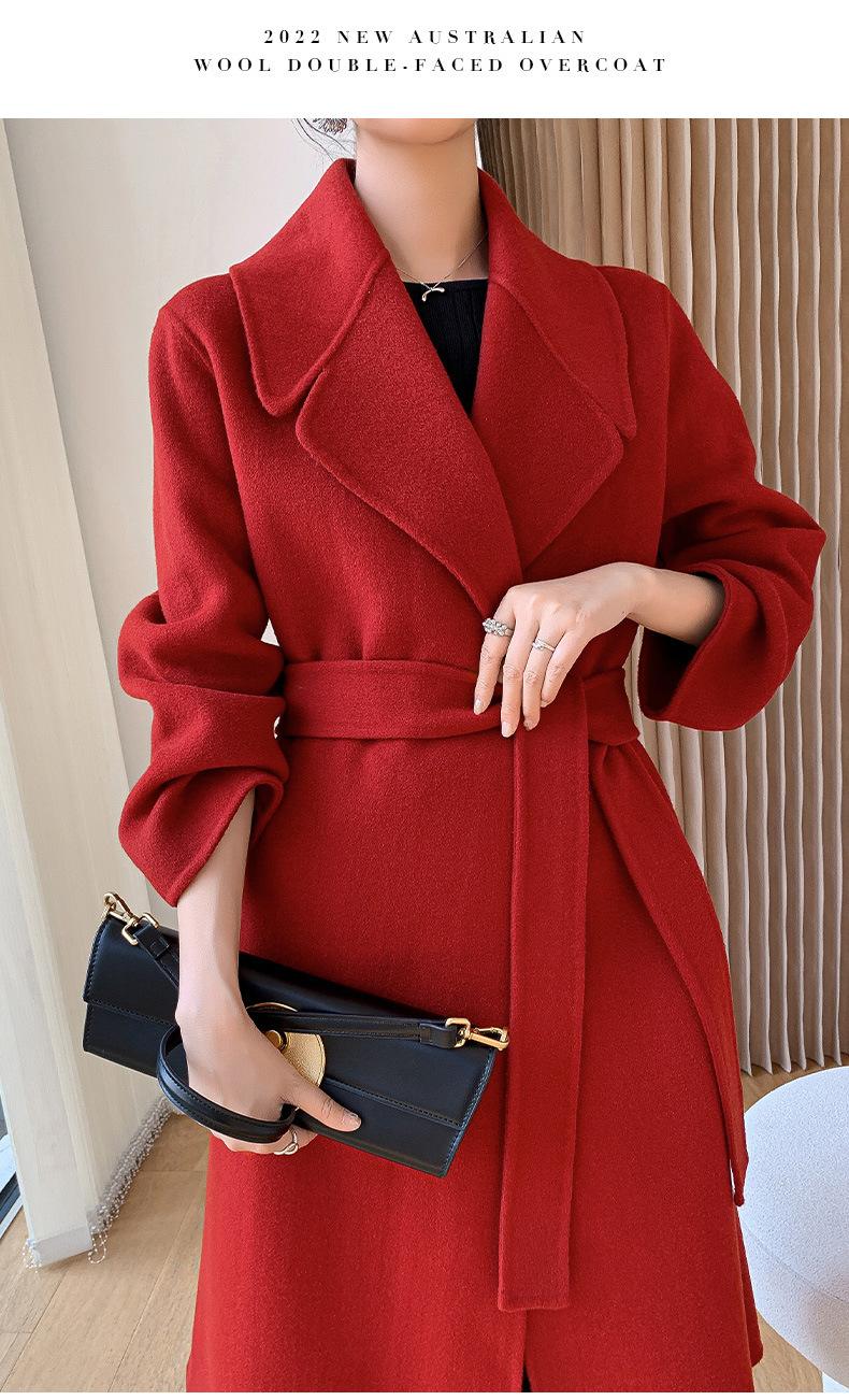 Abrigo de Lana de Doble Vista para Mujer de Largo Medio 2023 Otoño e Invierno Año Nuevo de Alta Gama Rojo con Cordones Abrigo de Lana