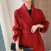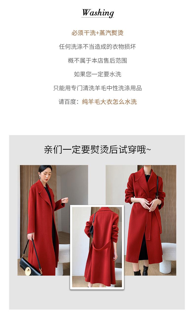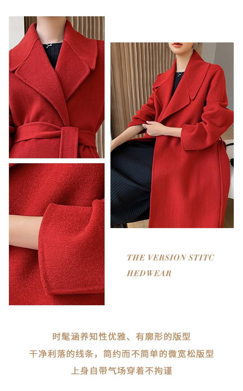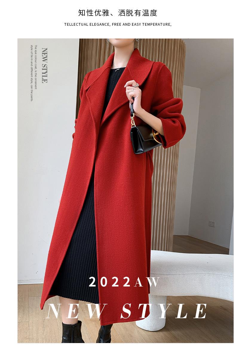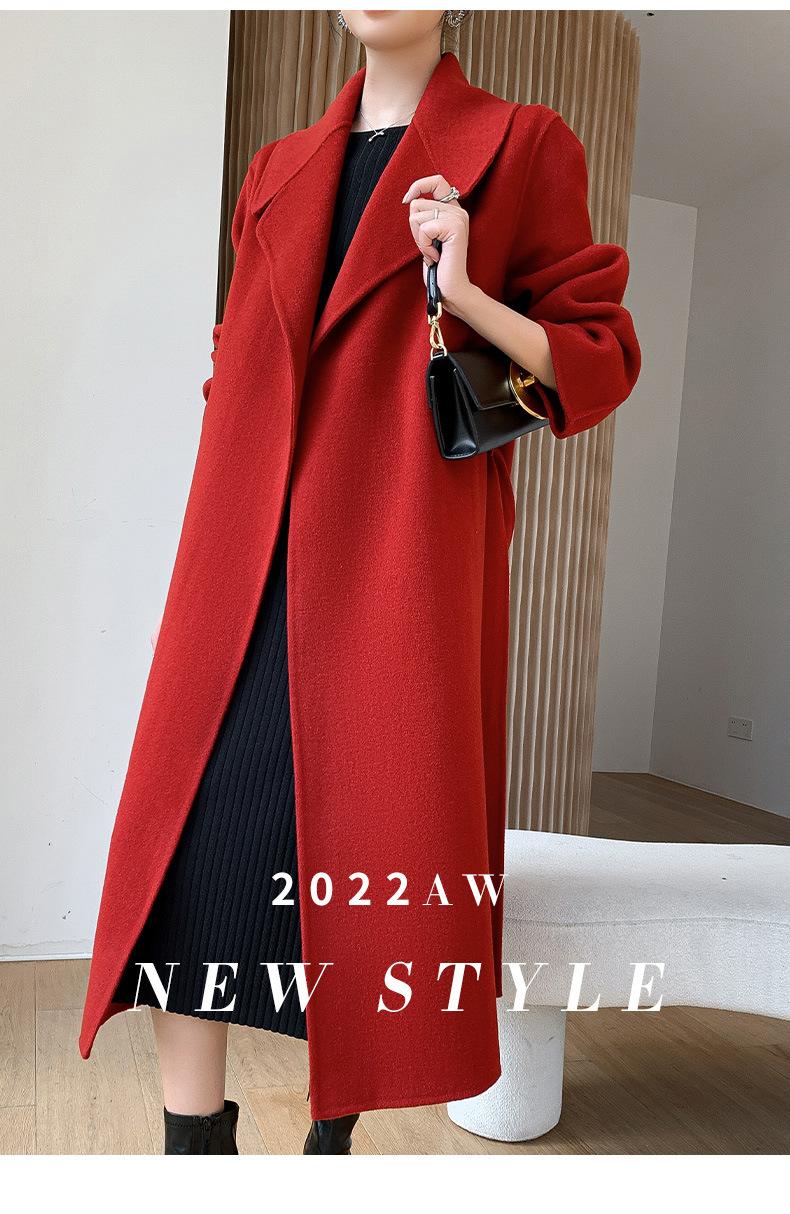 Abrigo de Lana de Doble Vista para Mujer de Largo Medio 2023 Otoño e Invierno Año Nuevo de Alta Gama Rojo con Cordones Abrigo de Lana