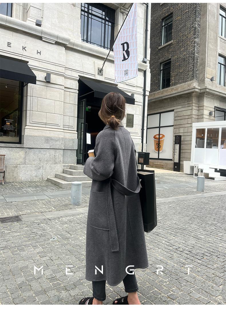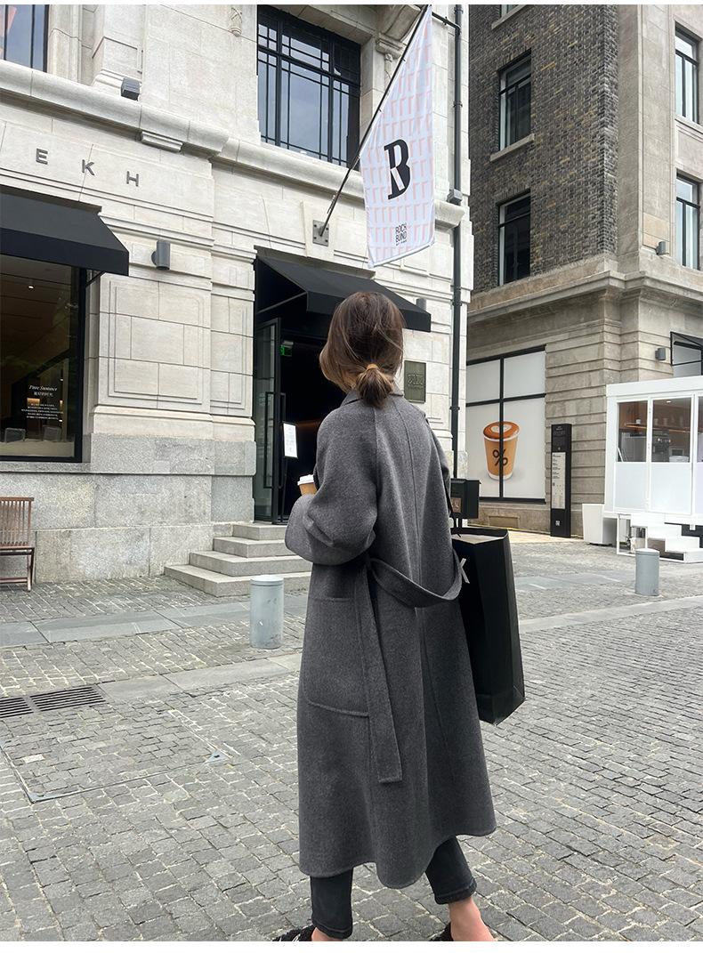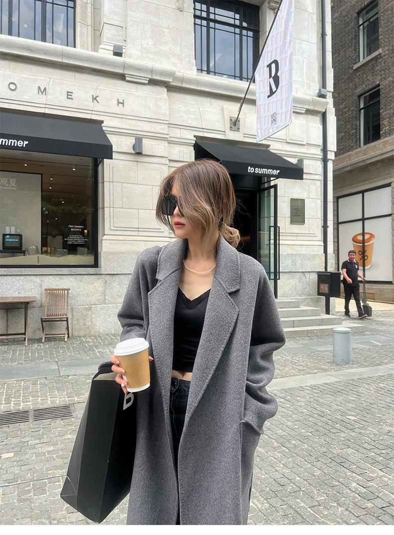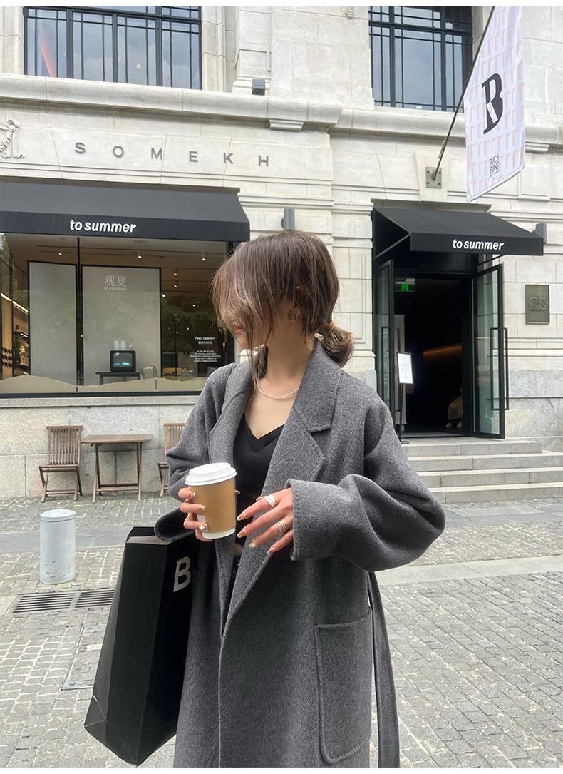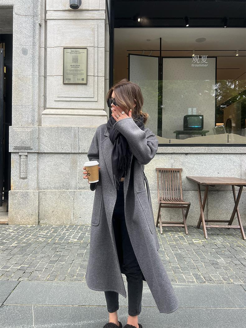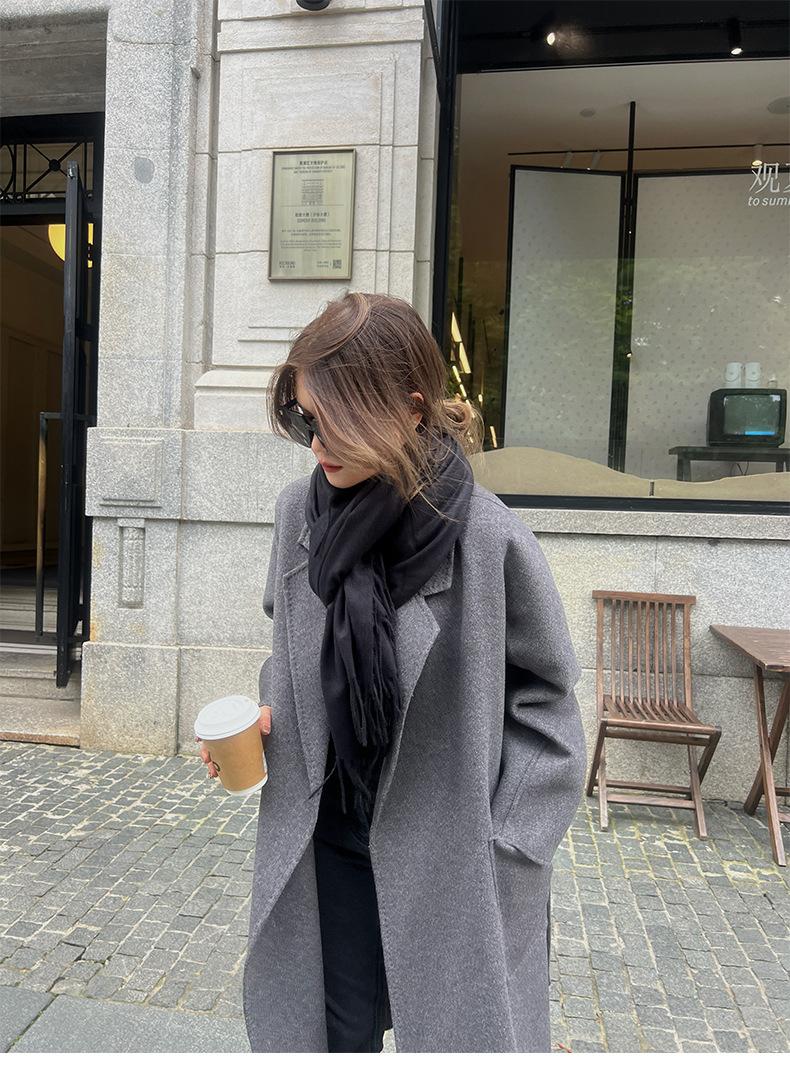 Abrigo de Cachemira Gris de Alta Gama para Mujer Invierno 24 Años Nuevo Suelto Grueso Largo Lana Exterior