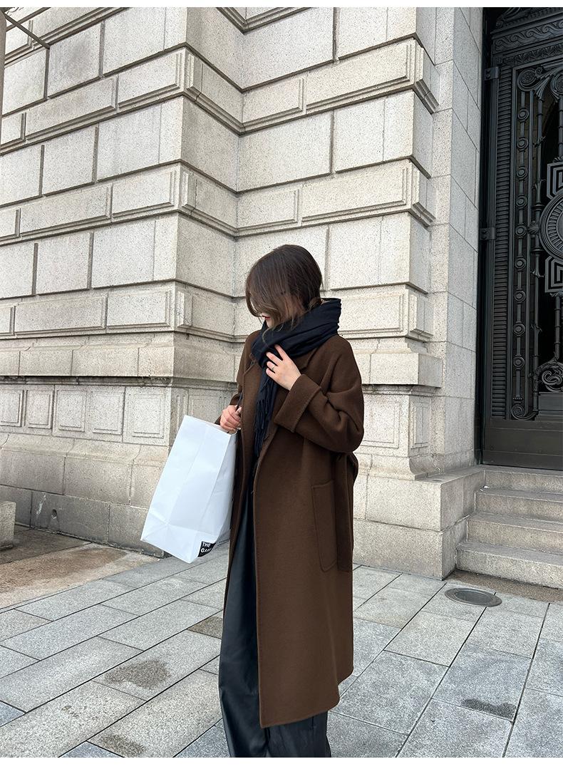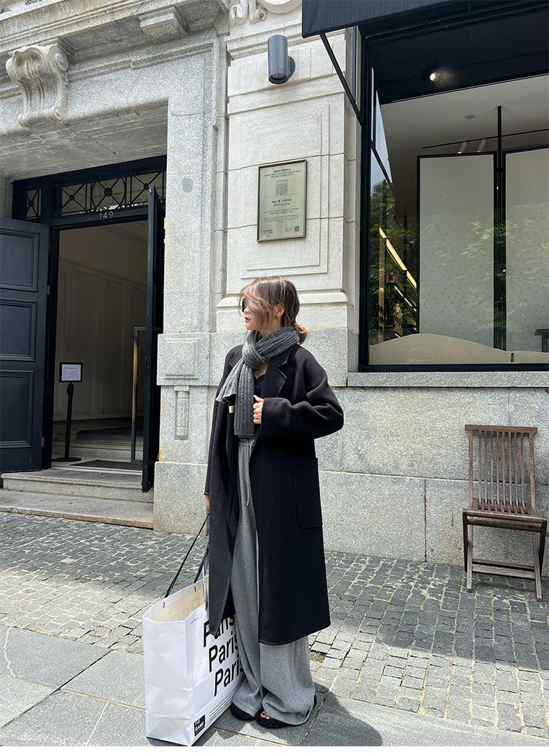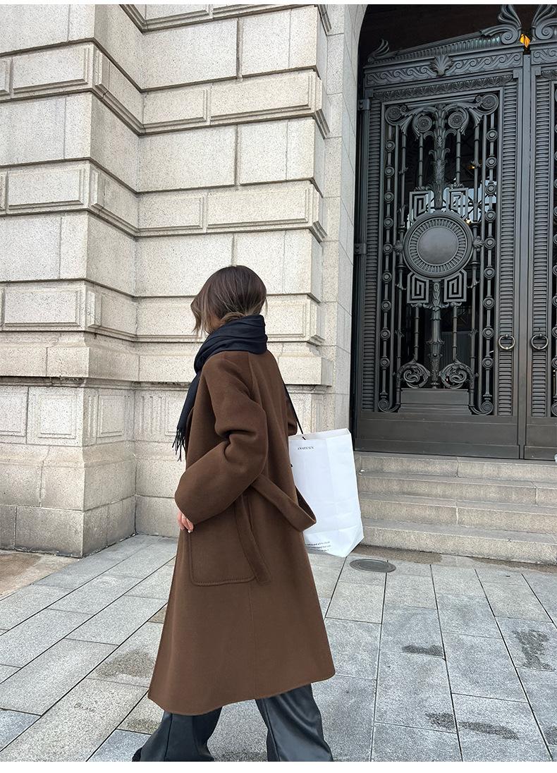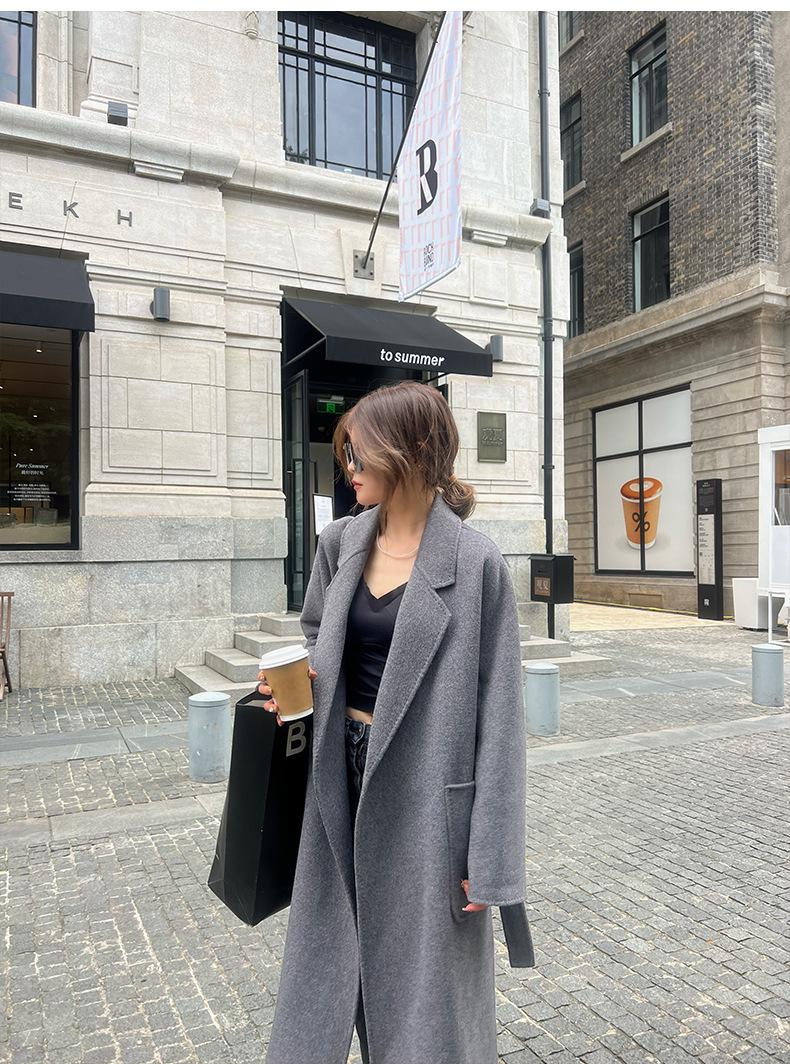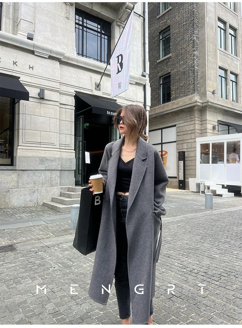 Abrigo de Cachemira Gris de Alta Gama para Mujer Invierno 24 Años Nuevo Suelto Grueso Largo Lana Exterior