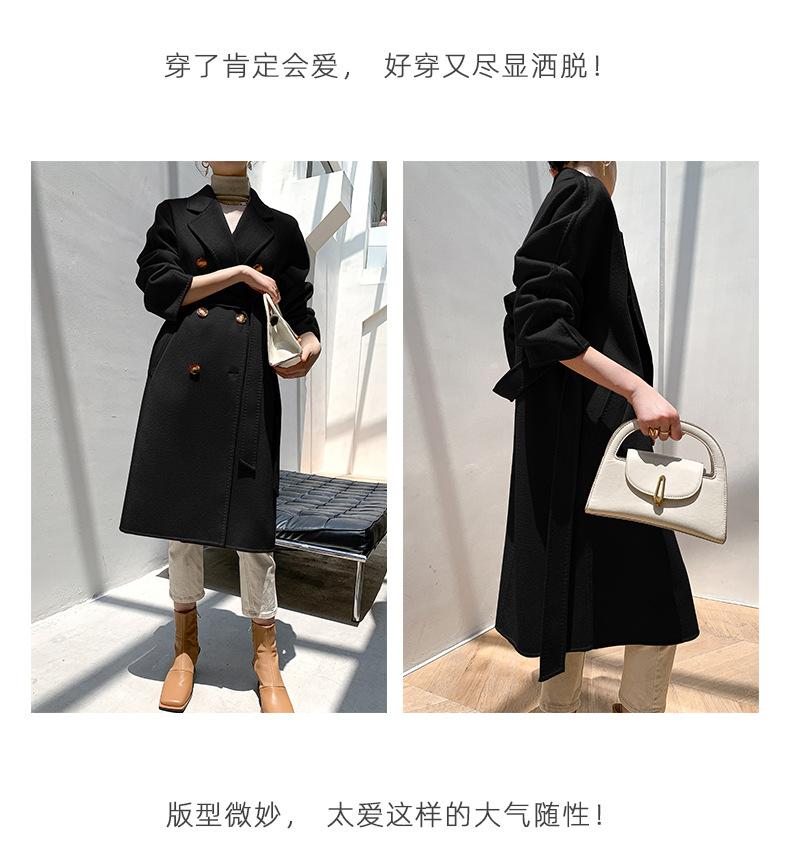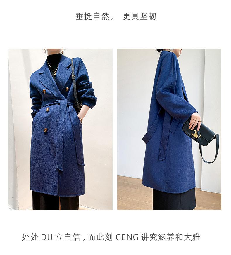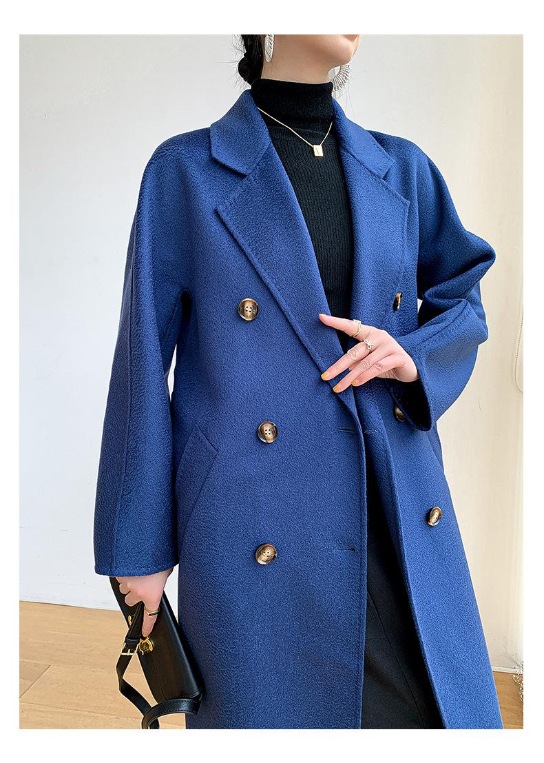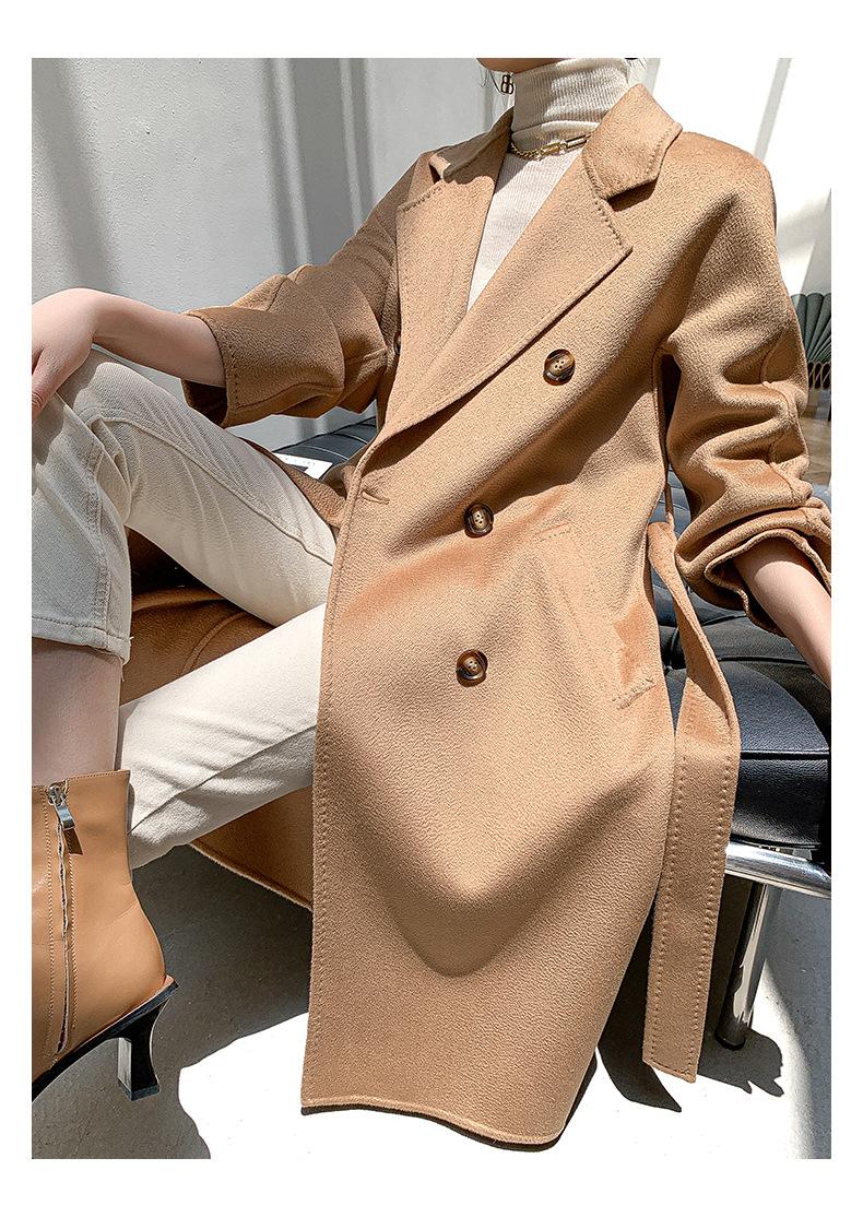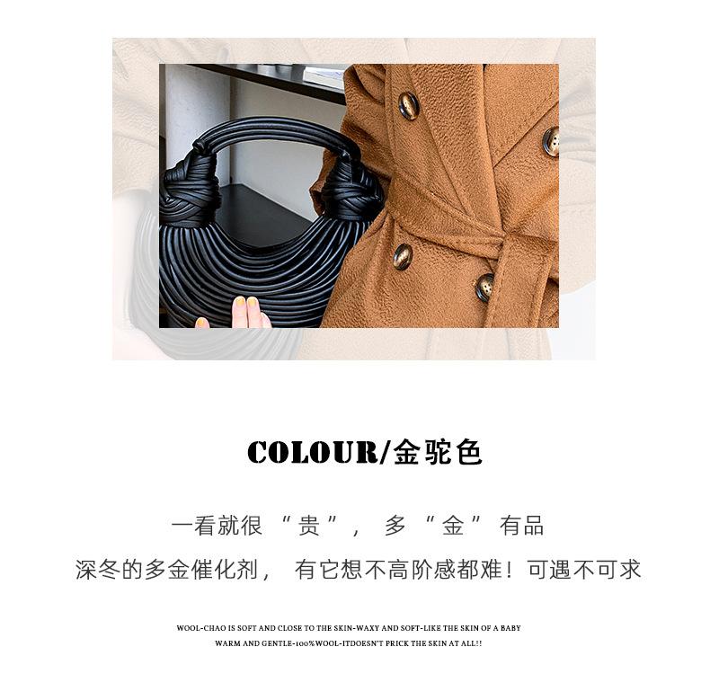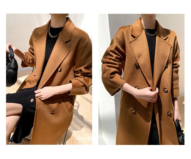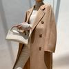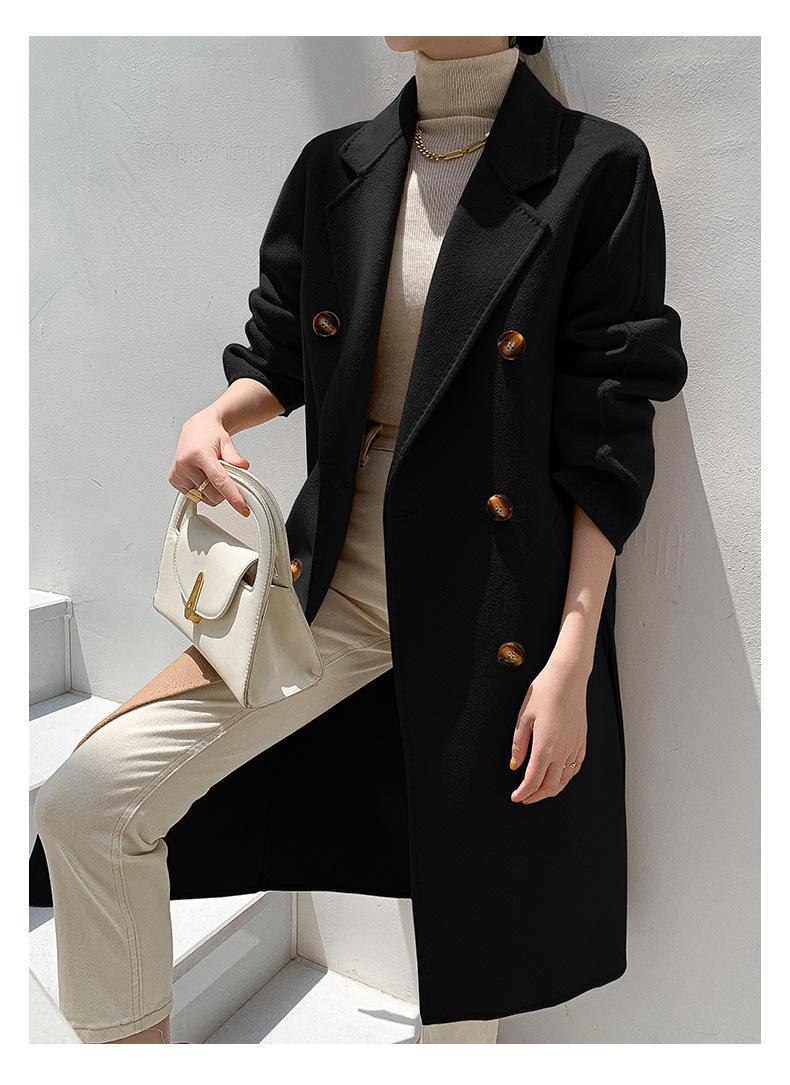 Abrigo de lana de doble botonadura de alta calidad con efecto de onda de agua para mujer, largo medio, otoño e invierno, estilo coreano, grueso, de lana tweed de doble cara