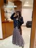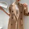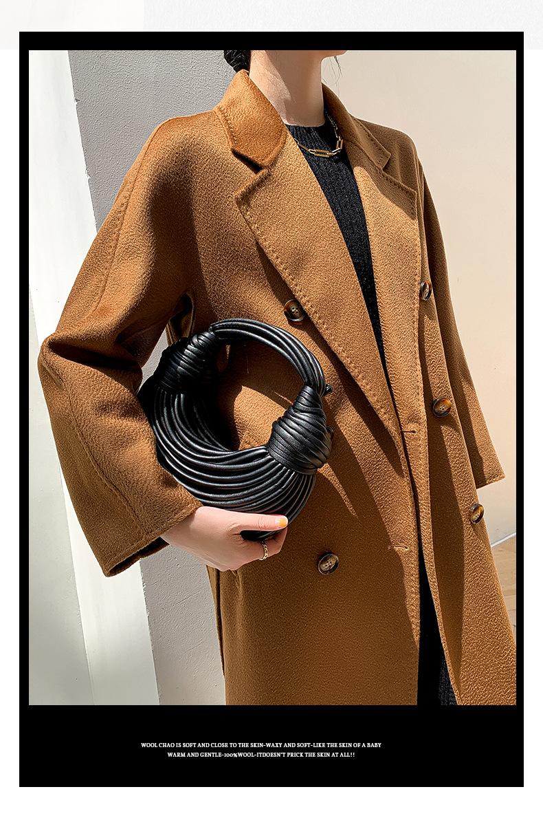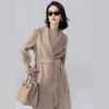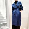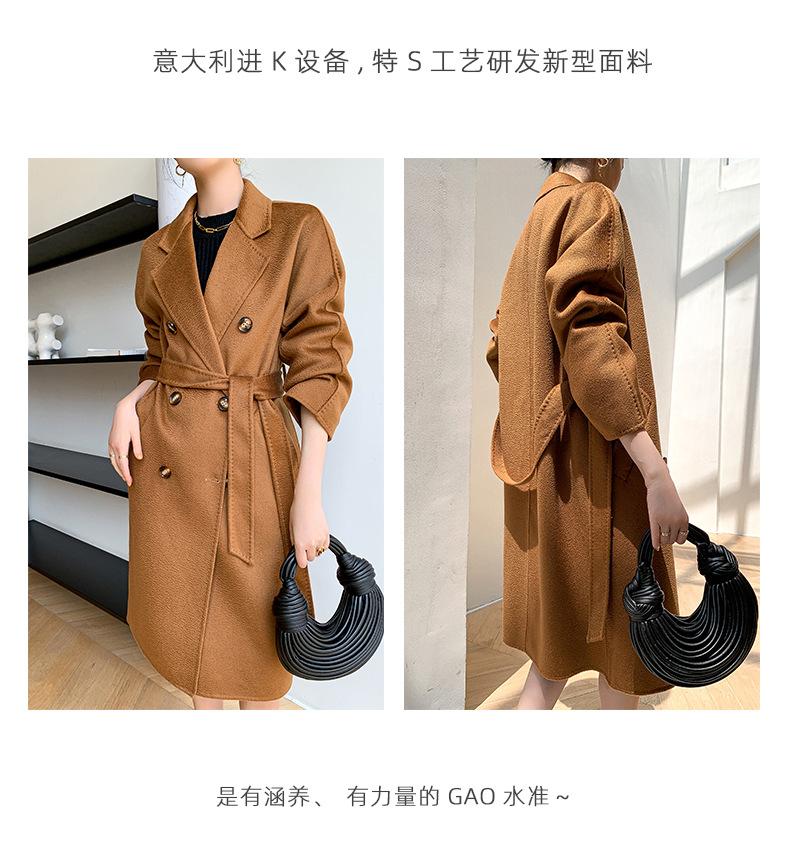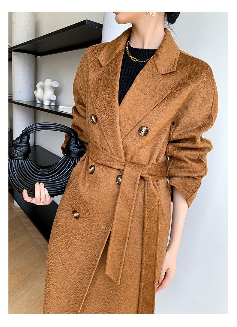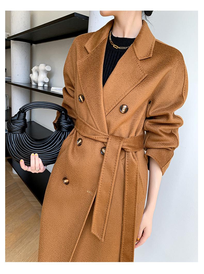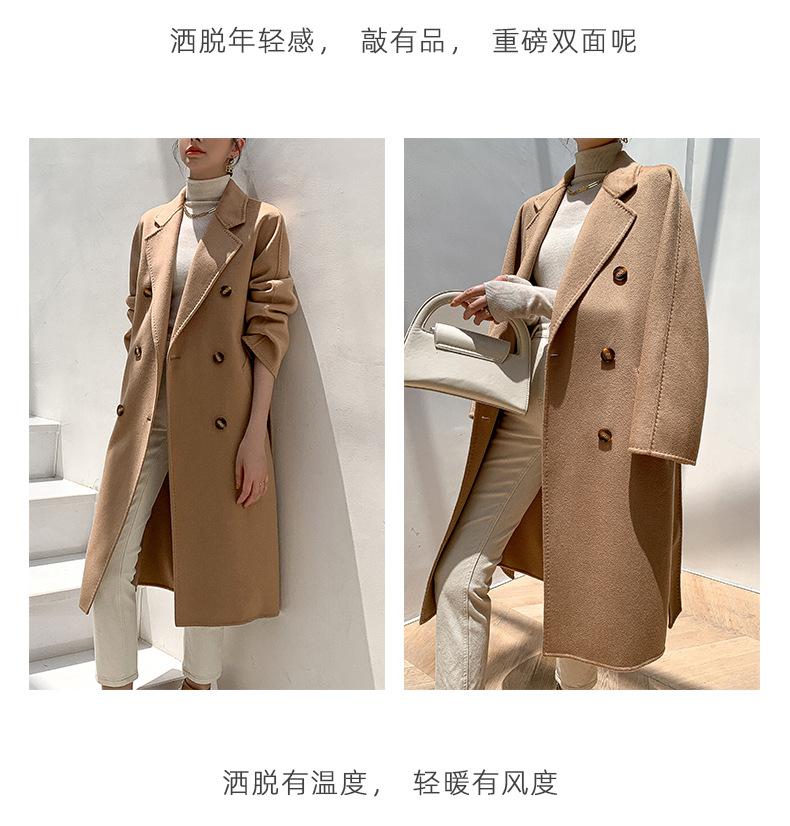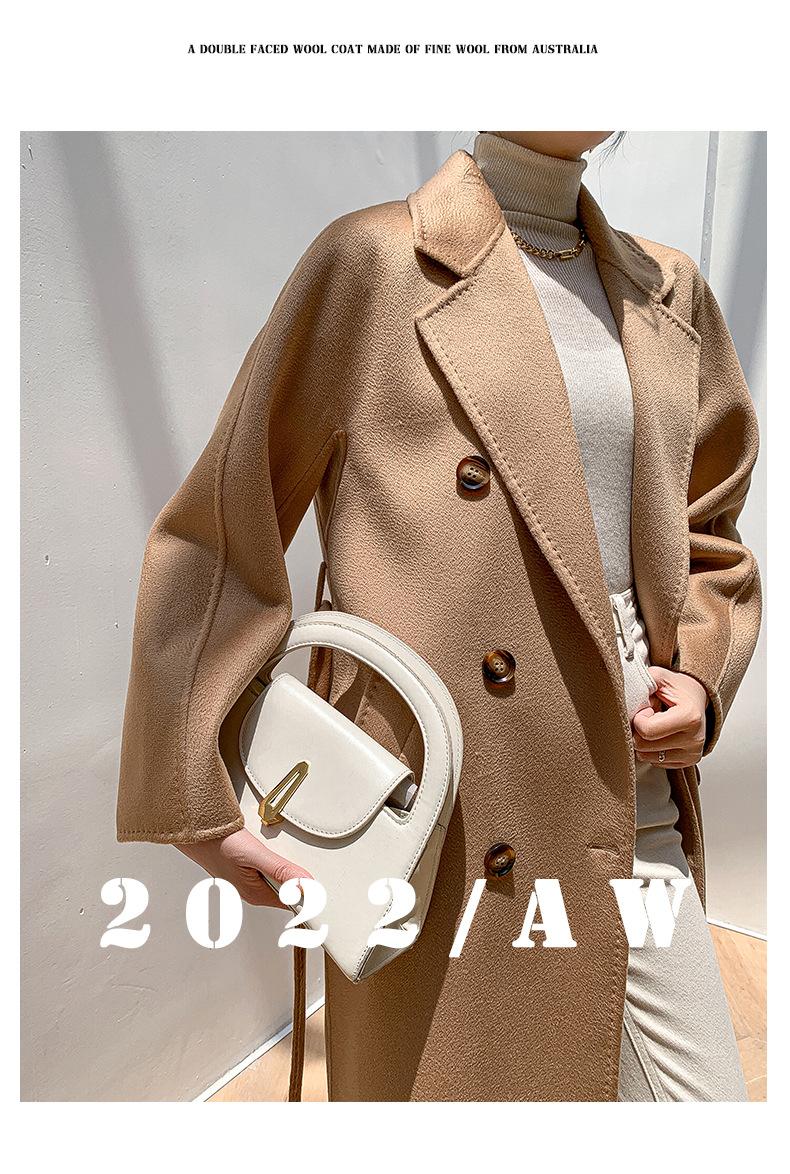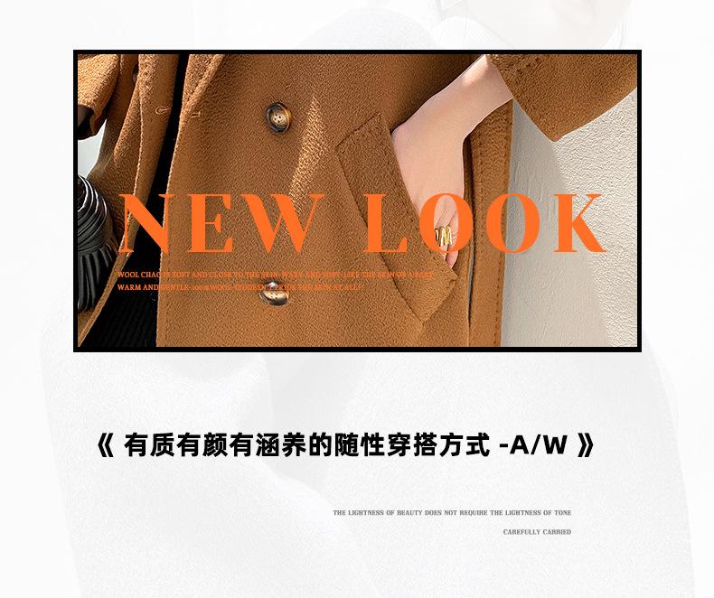Abrigo de lana de doble botonadura de alta calidad con efecto de onda de agua para mujer, largo medio, otoño e invierno, estilo coreano, grueso, de lana tweed de doble cara