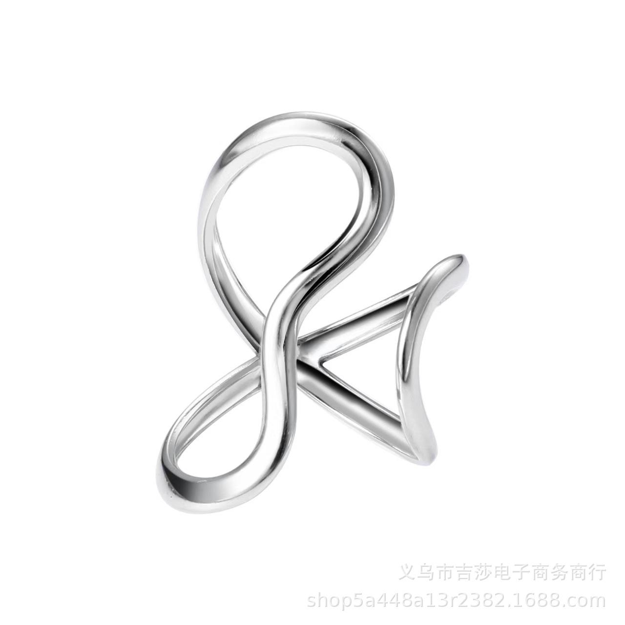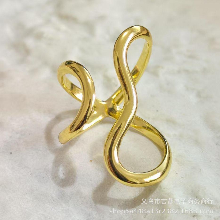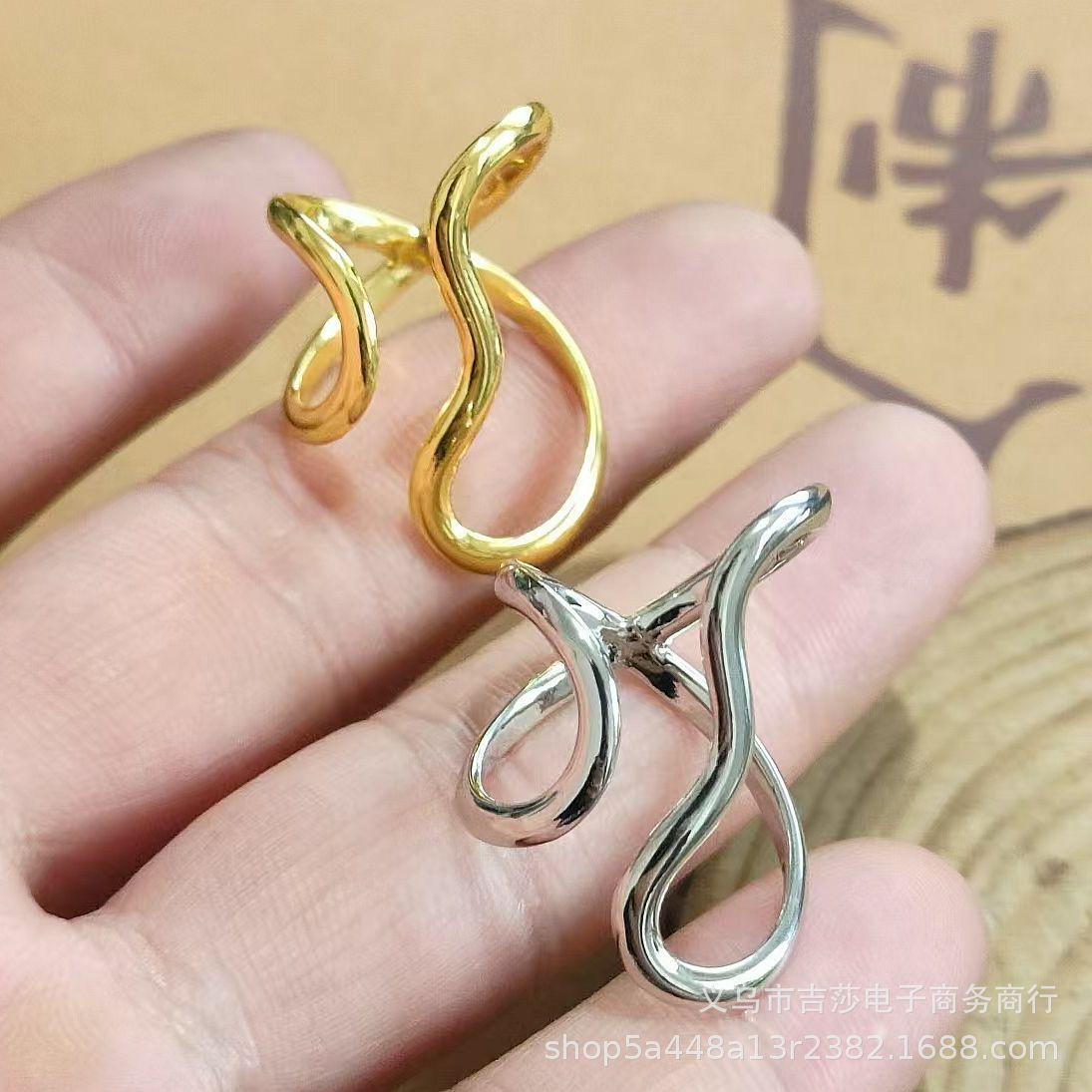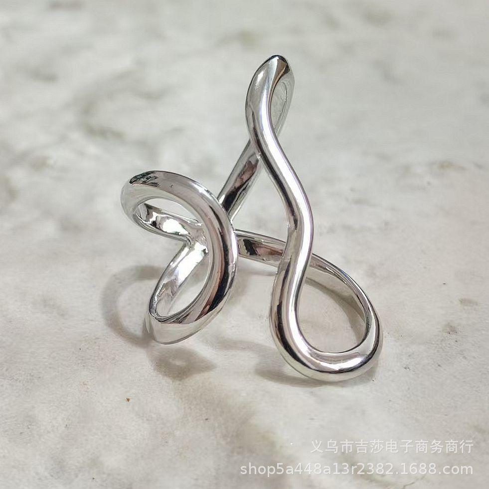 Anillo de Dedo Índice con Diseño de Línea Brillante de Forma Especial Transfronterizo, Anillo Abierto de Aleación de Estilo Frío Simple Exagerado Personalizado