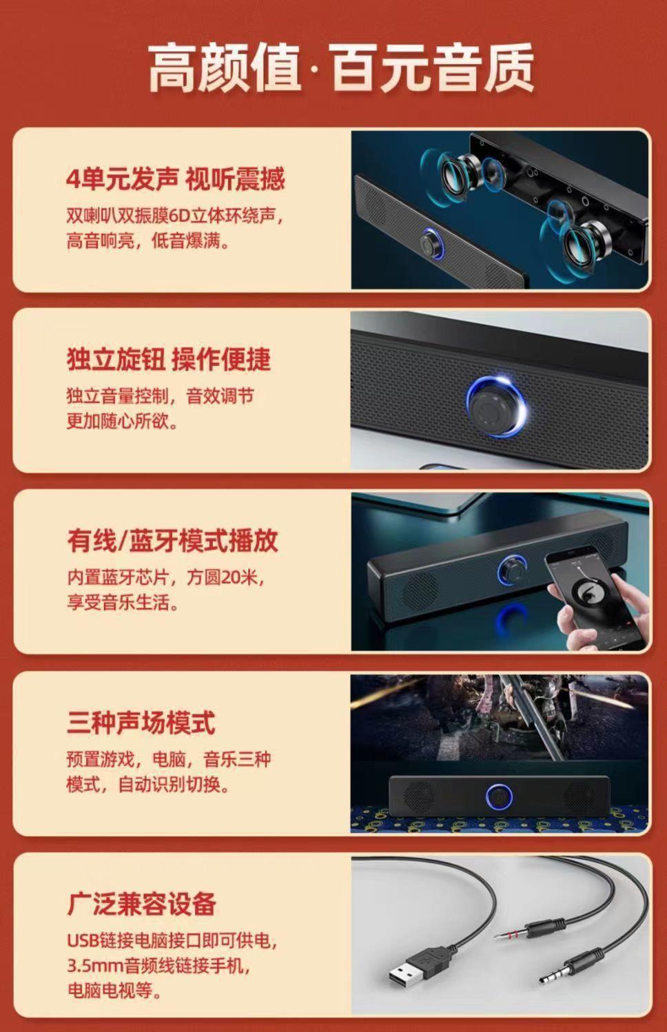 HIFI surround sound effect-bluetooth [bluetooth/wired universal] 3.5mm+USB