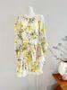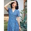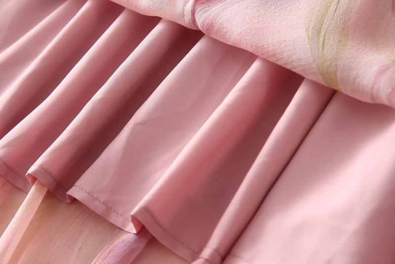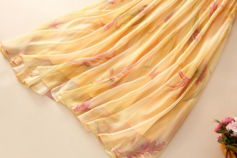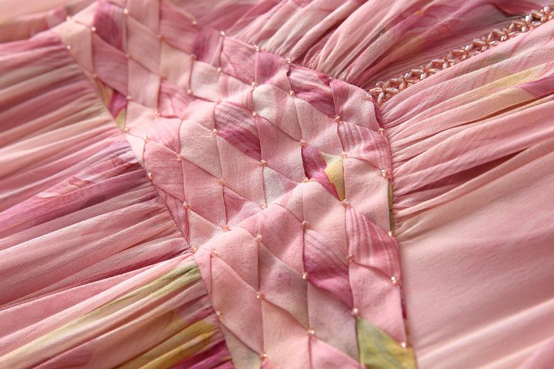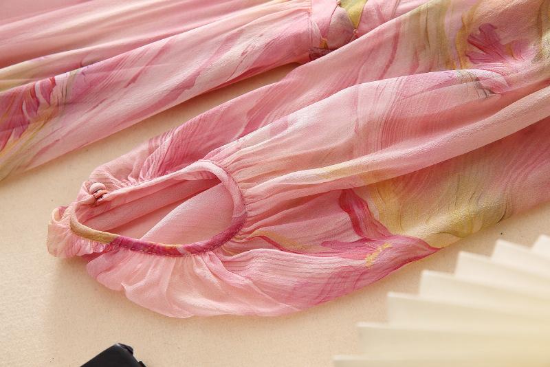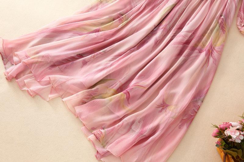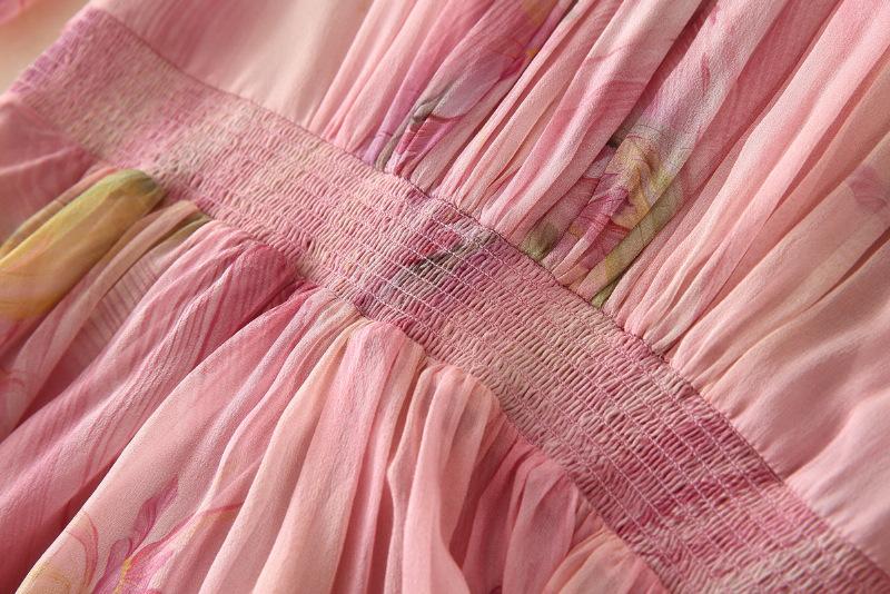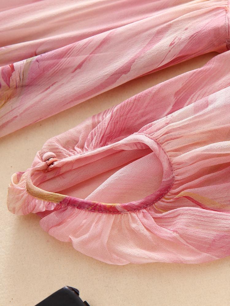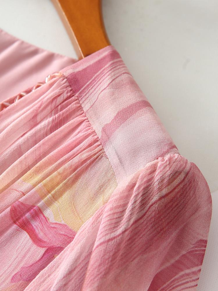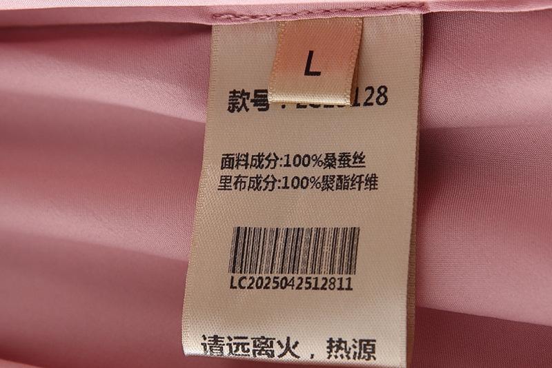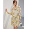 2025 Nuevo Estilo de Verano Moda Francesa Elegante Look Adelgazante de Cintura Cuello en V con Cuentas Vestido Midi de Manga Larga de Seda de Morera