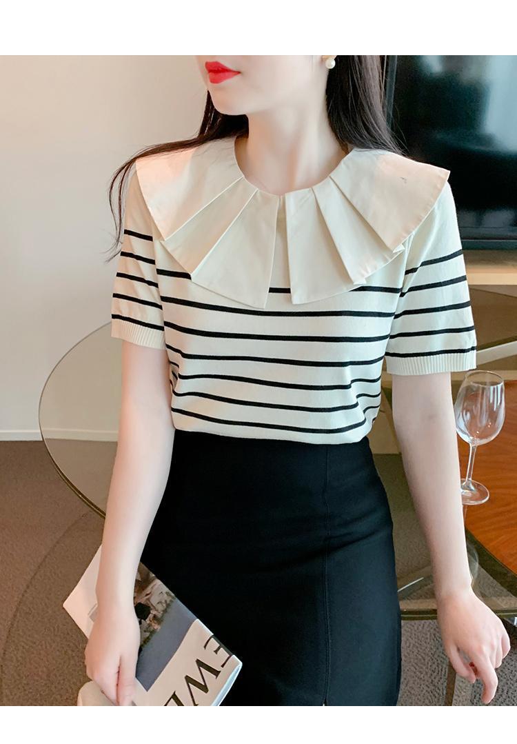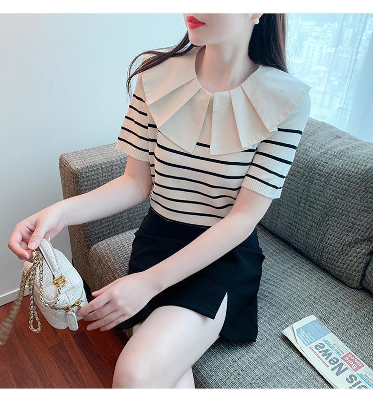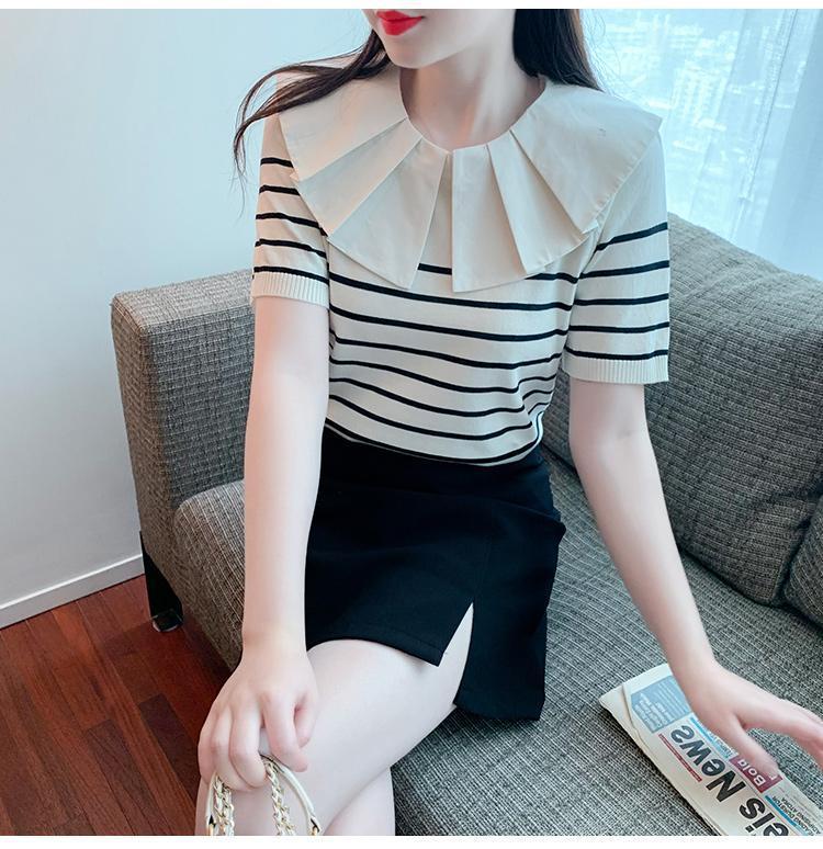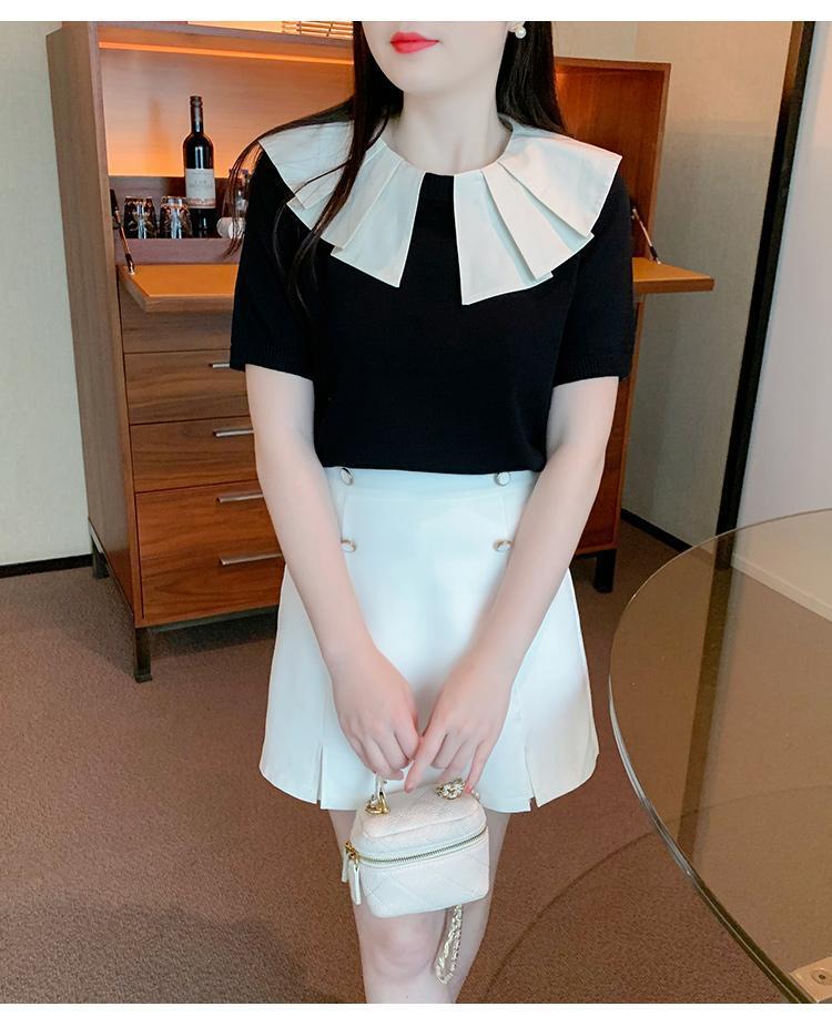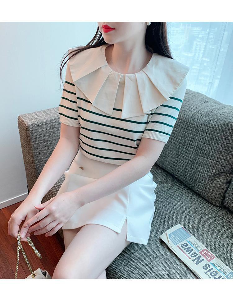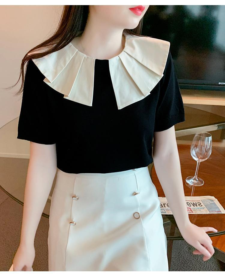 Nuevo verano estilo coreano sentido del diseño nicho estilo occidental suéter cuello muñeca camisa de fondo ins camiseta de manga corta top para mujer