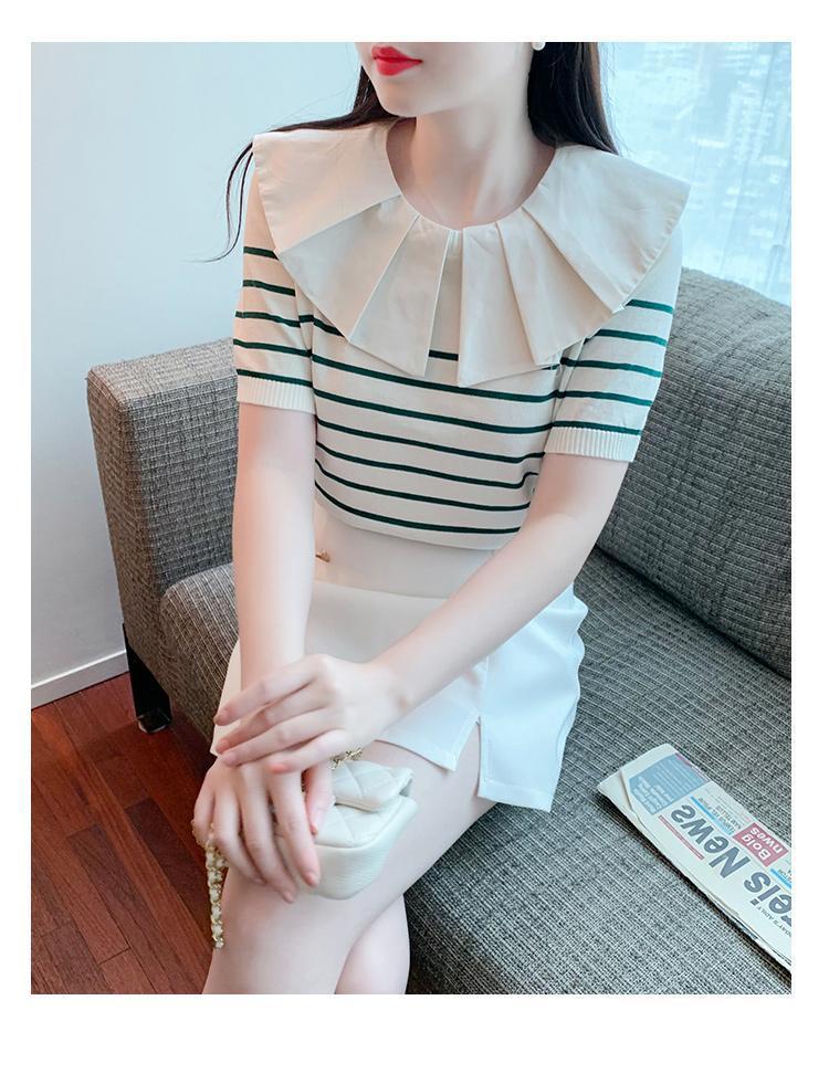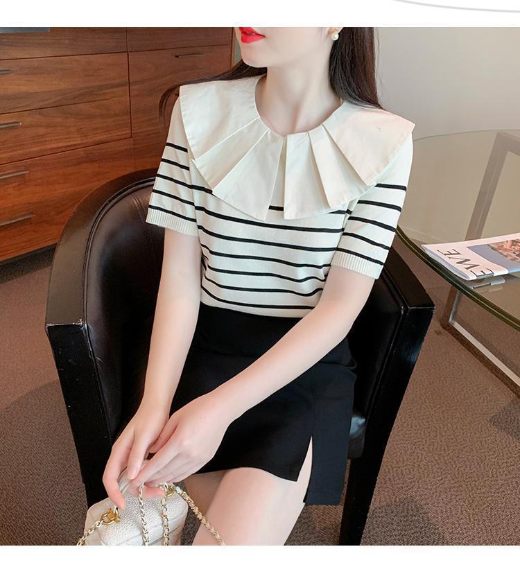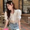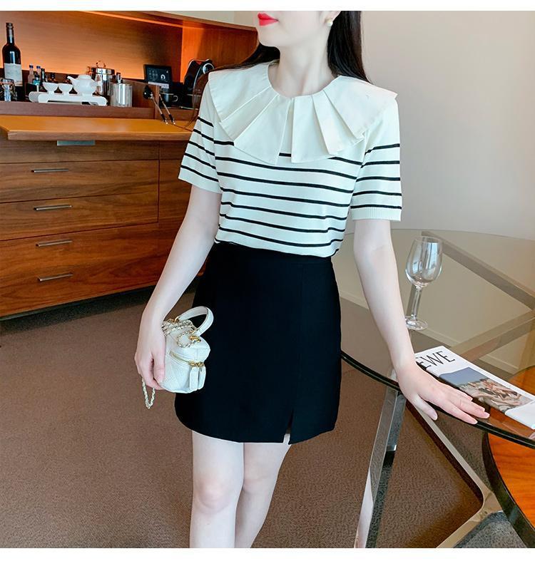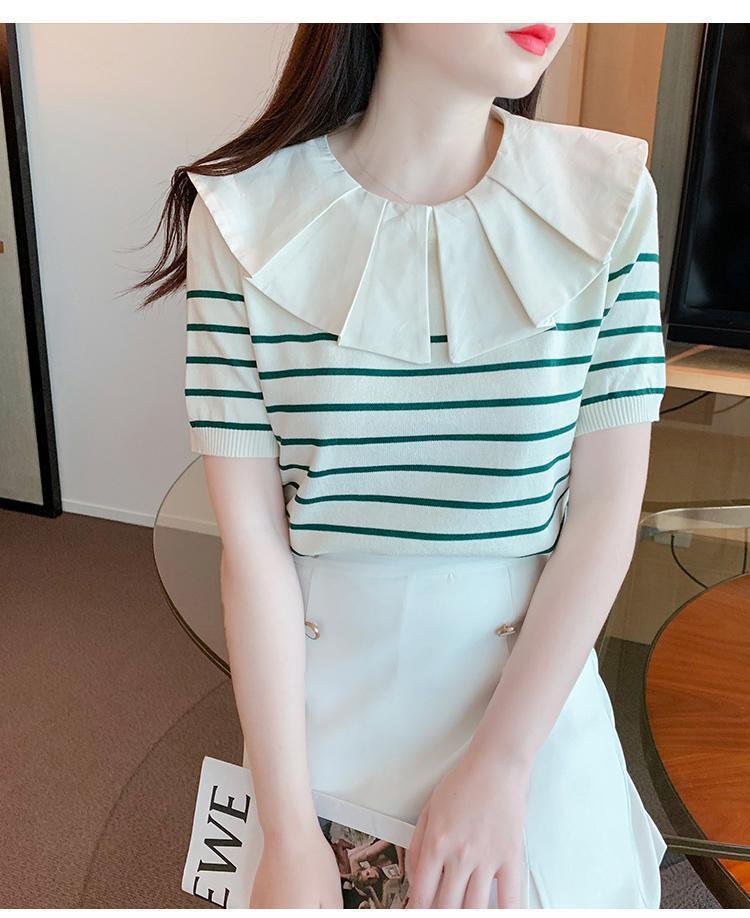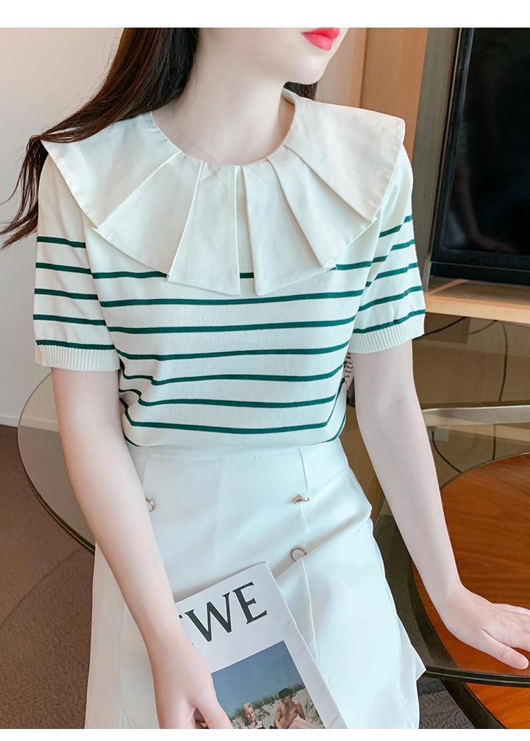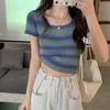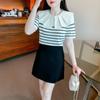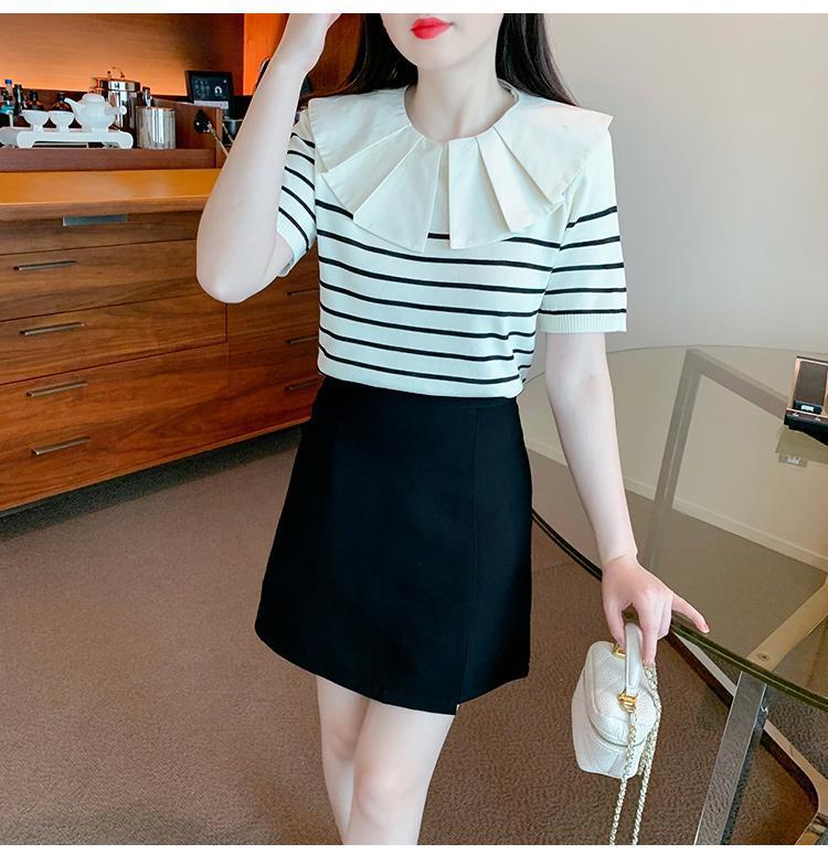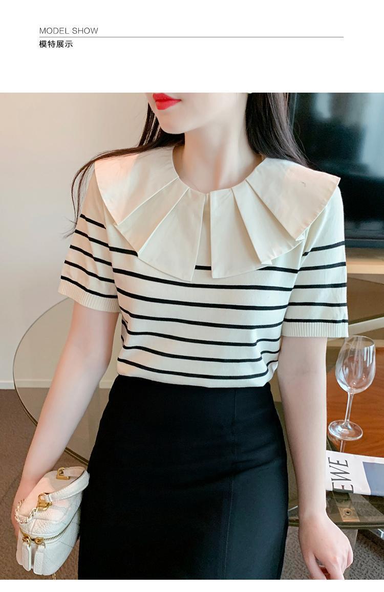 Nuevo verano estilo coreano sentido del diseño nicho estilo occidental suéter cuello muñeca camisa de fondo ins camiseta de manga corta top para mujer