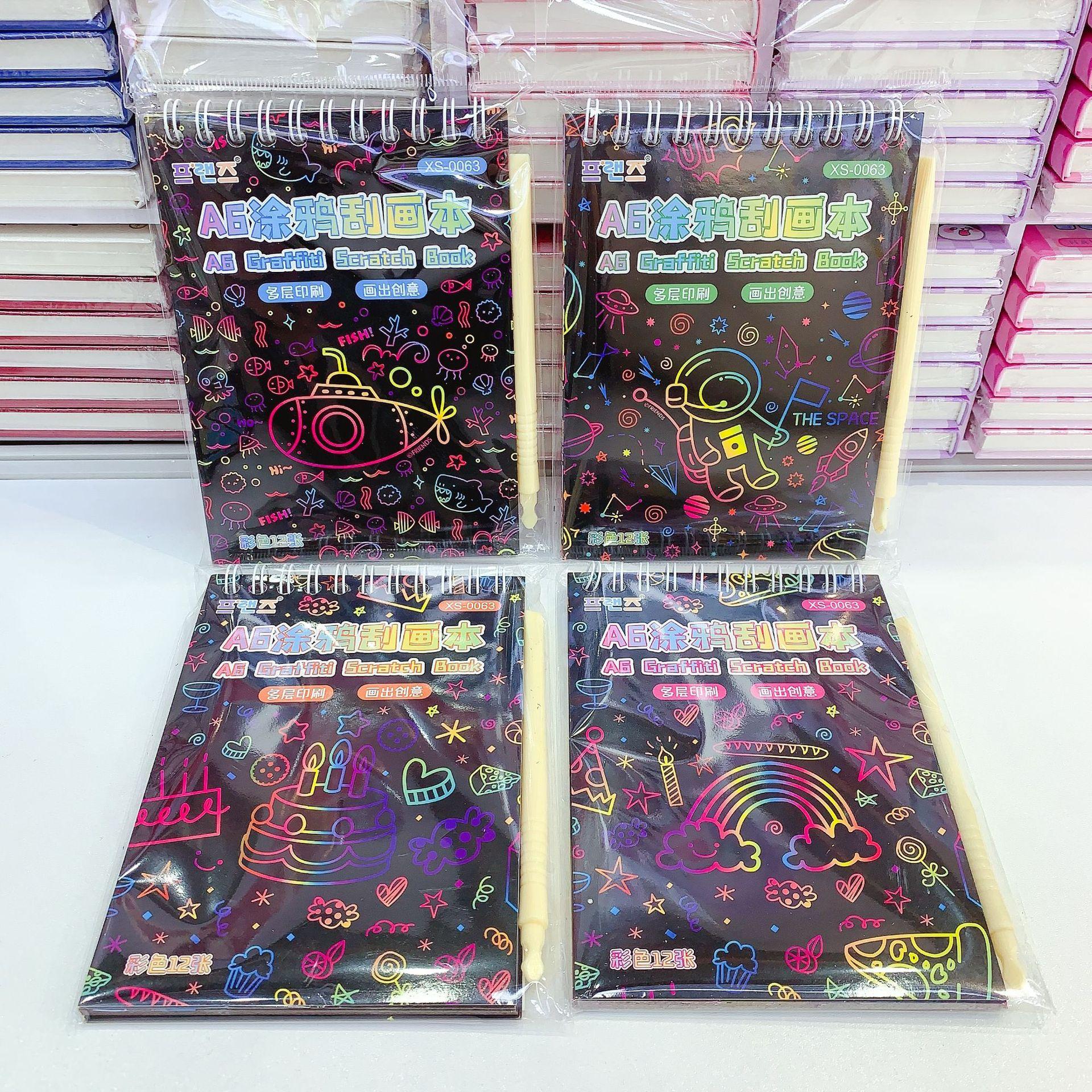 Nuevo Set de Libro para Rascar Graffiti Colorido A6 diy Hecho a Mano Libro de Bobina de Imágenes Papel para Rascar Pintura Libro para Rascar