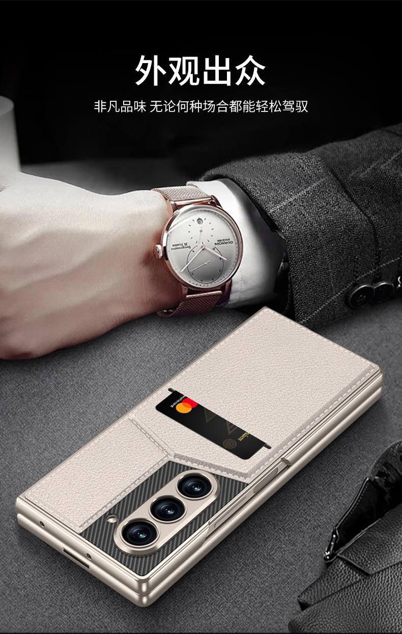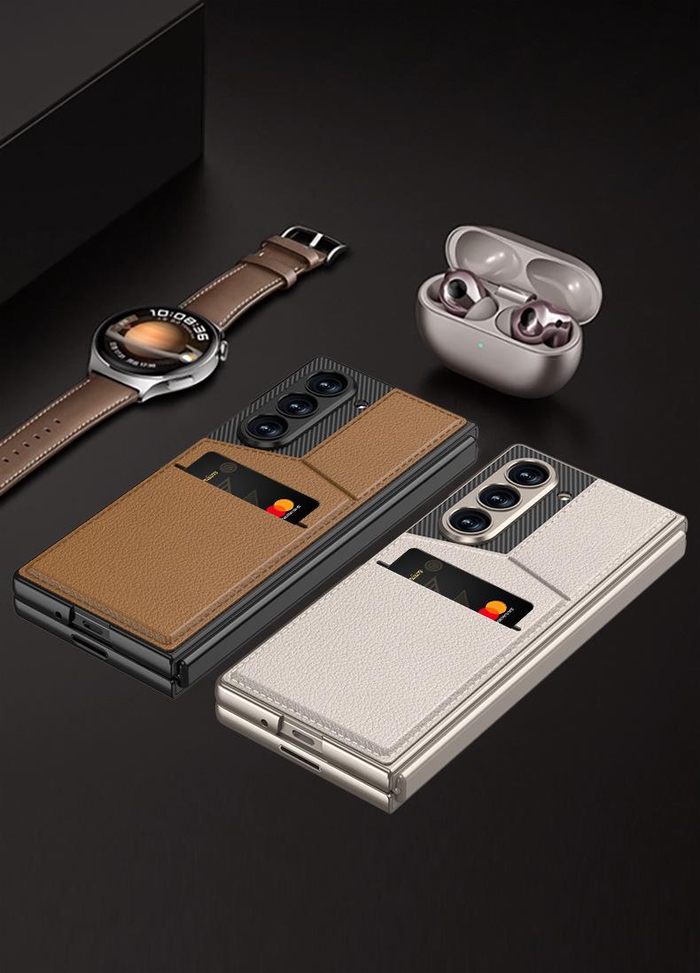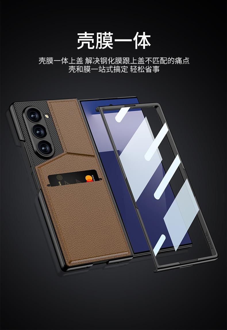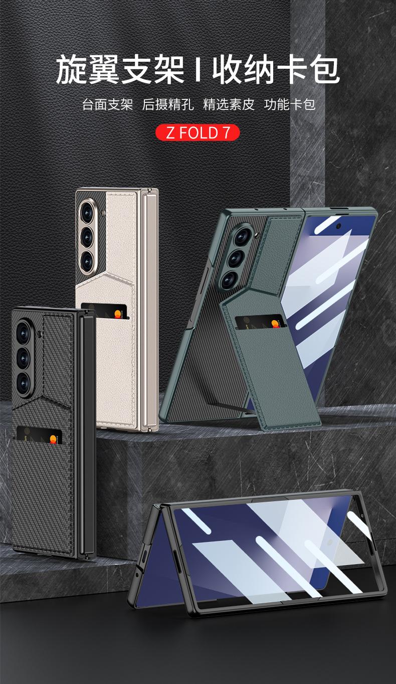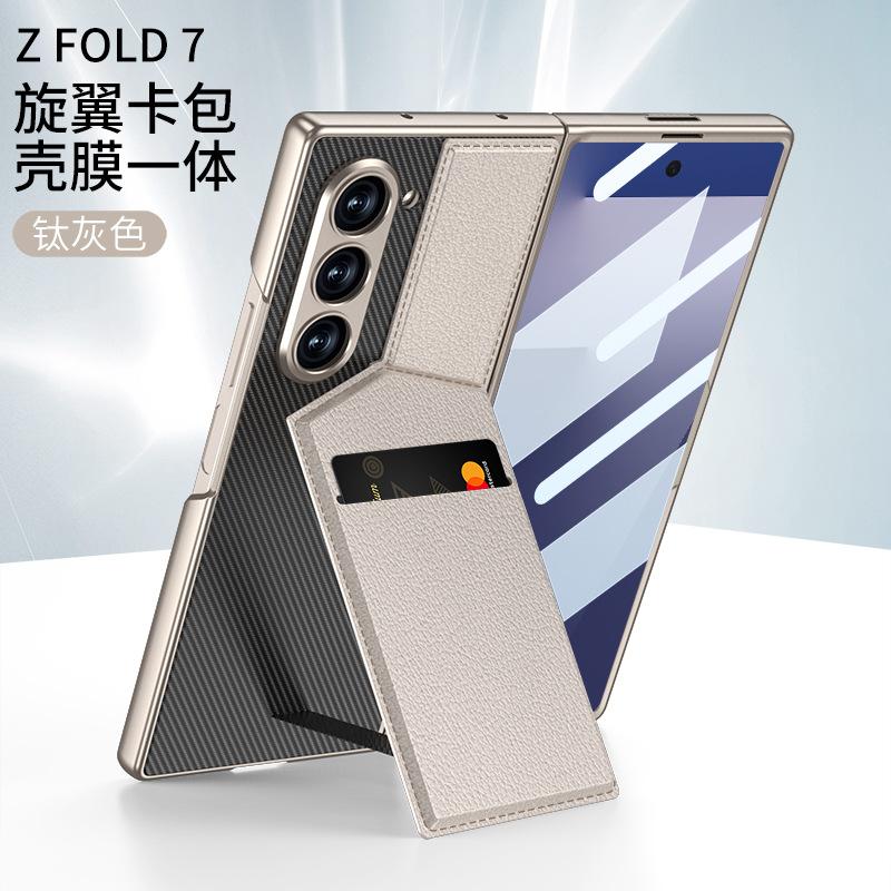Para Samsung Z Fold7 Funda para Teléfono Móvil Pantalla Plegable Rotor Tarjetero Película Integrada Resistente a Caídas Soporte Personalizado Funda de Cuero