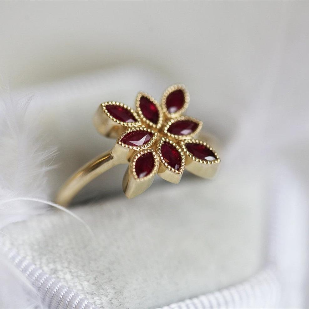 Anillo geométrico de aleación europeo y americano nuevo transfronterizo con circonita joyería para mujer anillo de flor fabricantes para la venta