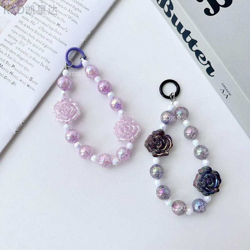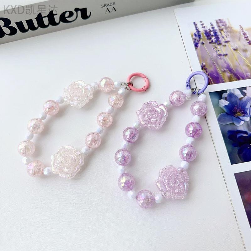 [purple] laser rose beaded mobile phone chain, [white] laser rose beaded mobile phone chain, [pink] laser rose...