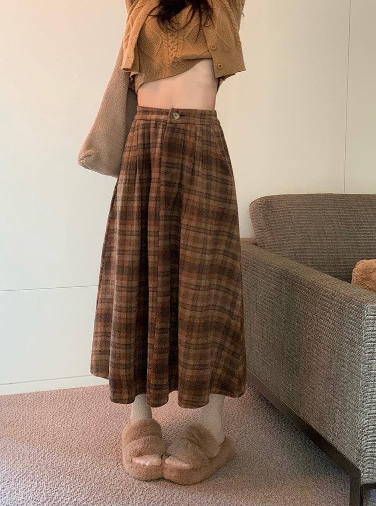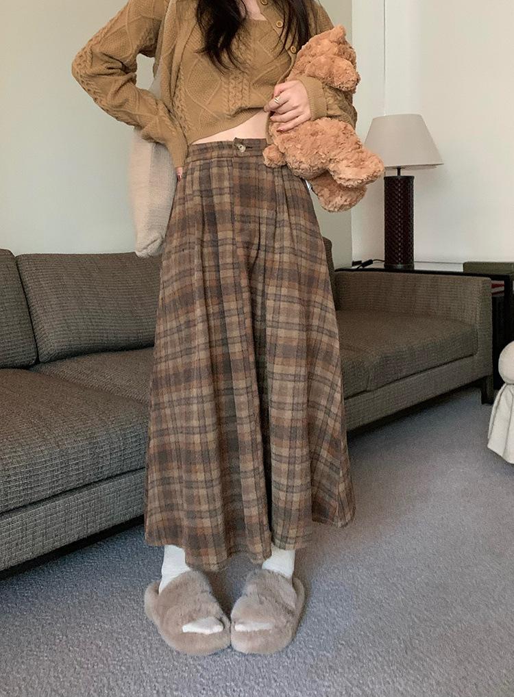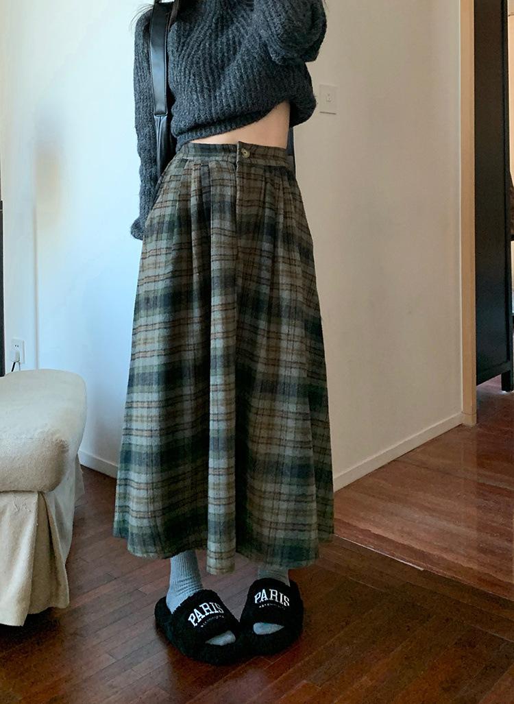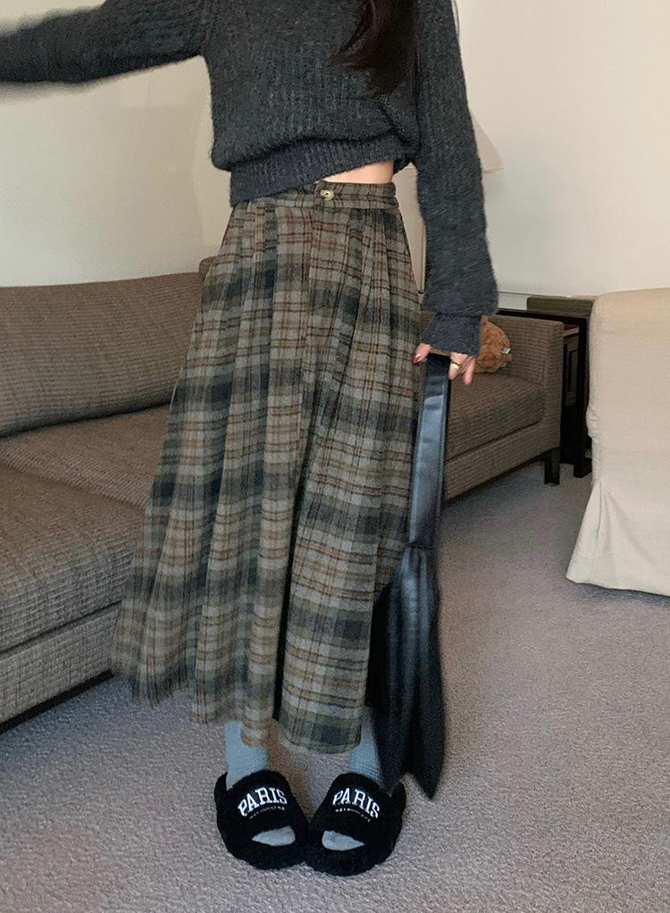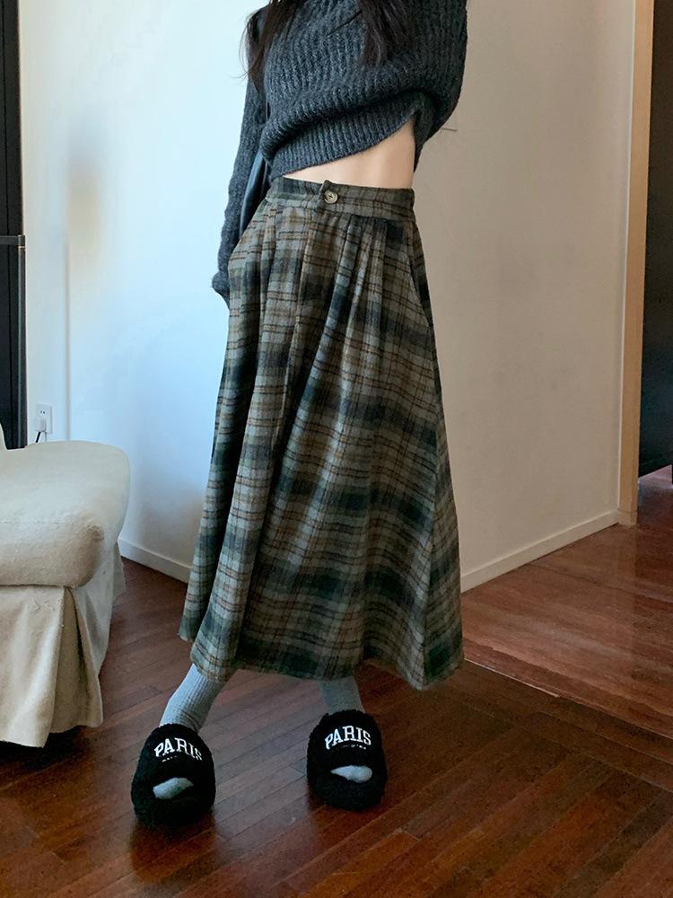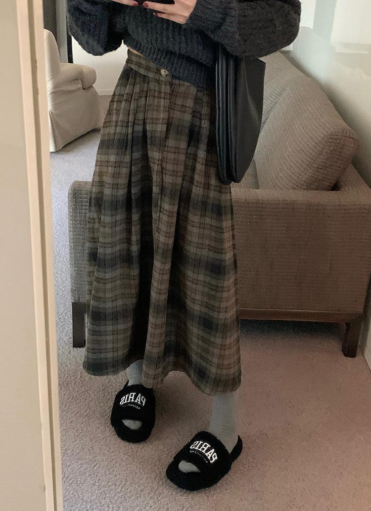 Otoño e Invierno Coreano 2022 Nuevo Cintura Alta Adelgazante Moda Cuadros Falda Paraguas Grande Falda Midi Falda de Mujer