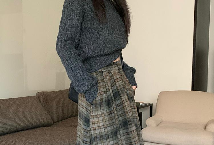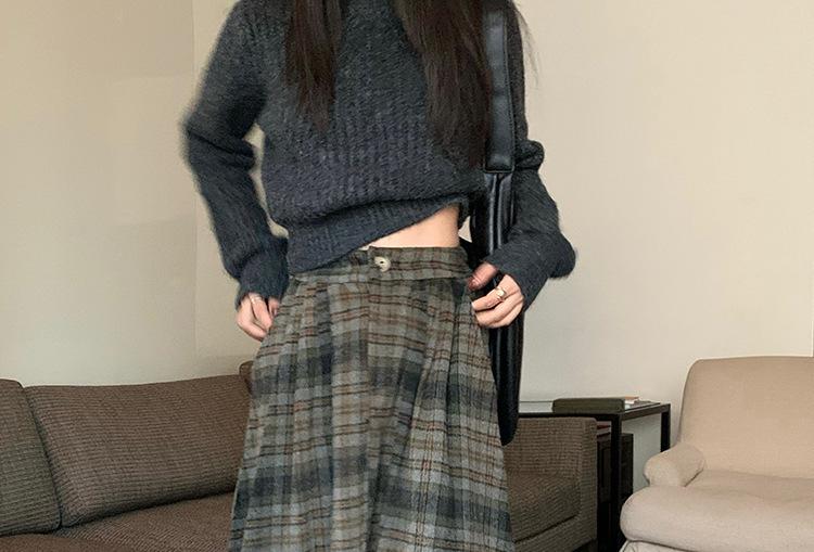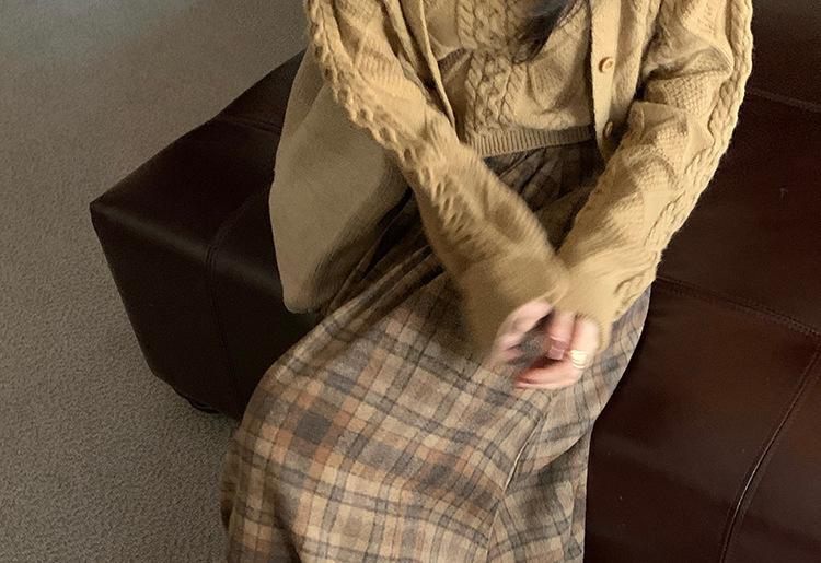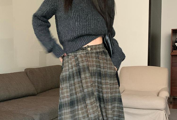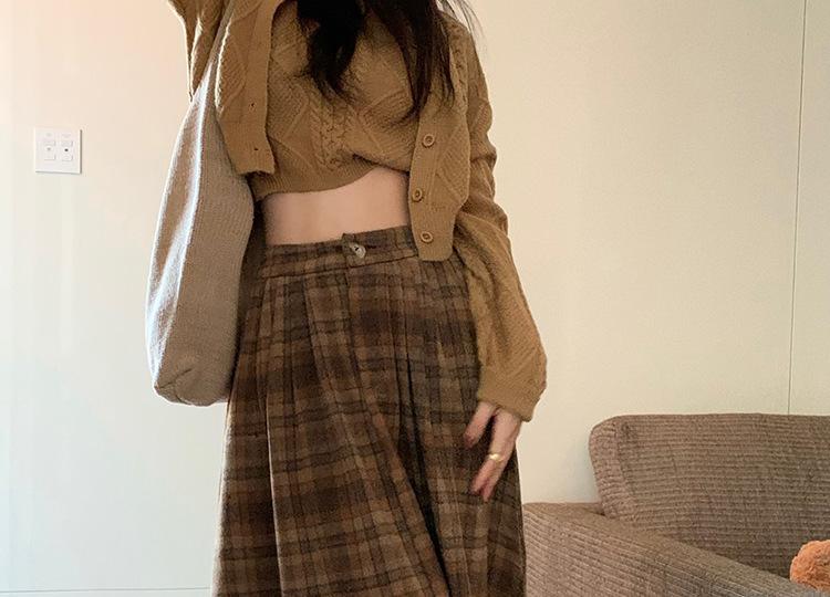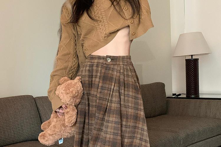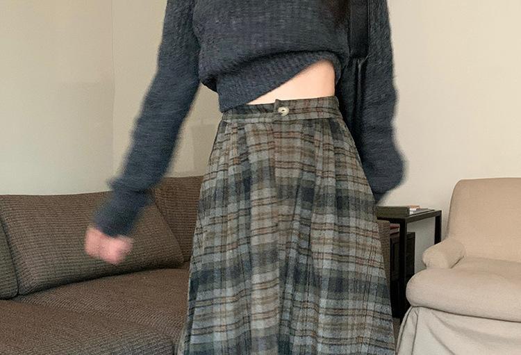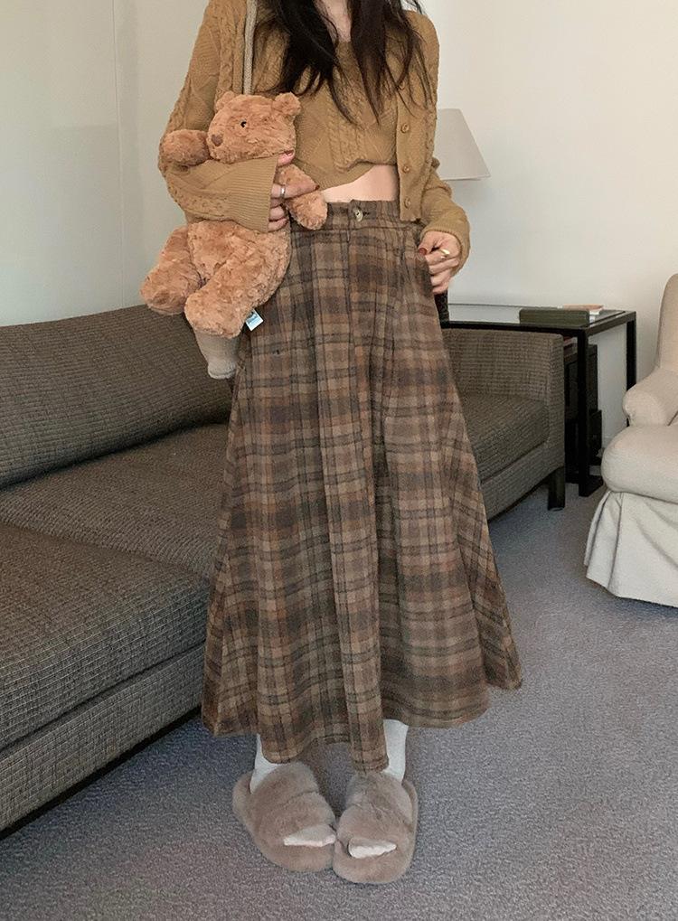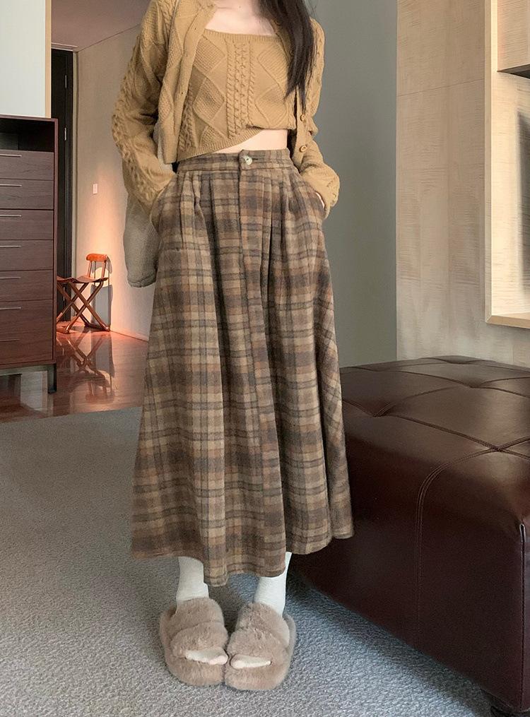 Otoño e Invierno Coreano 2022 Nuevo Cintura Alta Adelgazante Moda Cuadros Falda Paraguas Grande Falda Midi Falda de Mujer