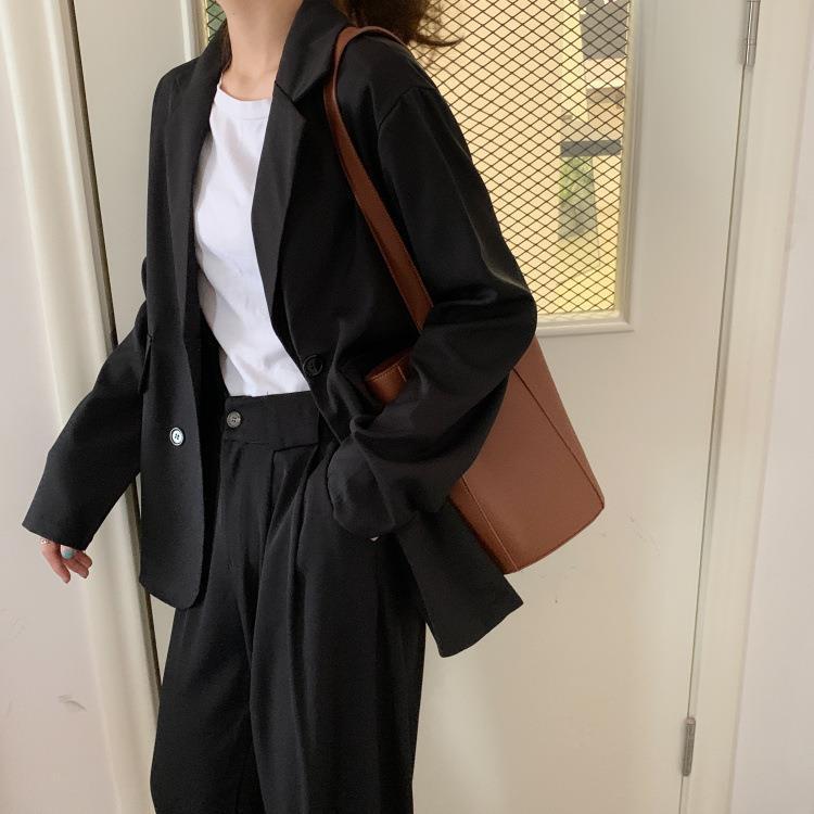 Otoño estilo coreano 2021 Nuevo Delgado Drapeado Suelto Largo Medio Negro Popular Chaqueta de Traje de Manga Larga Ropa de Mujer