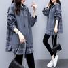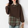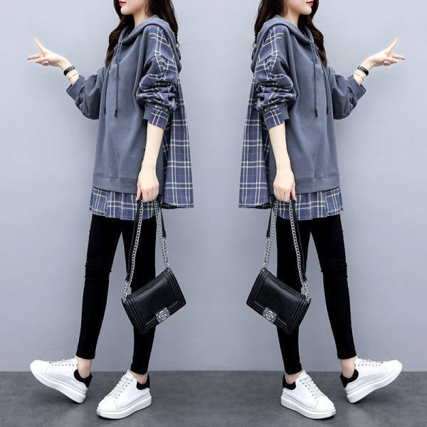 Primavera 2023 Nueva Camiseta de Costuras Falso Dos Piezas Suéteres de Manga Larga para Mujer Holgados Delgados con Capucha Tallas Grandes Tops