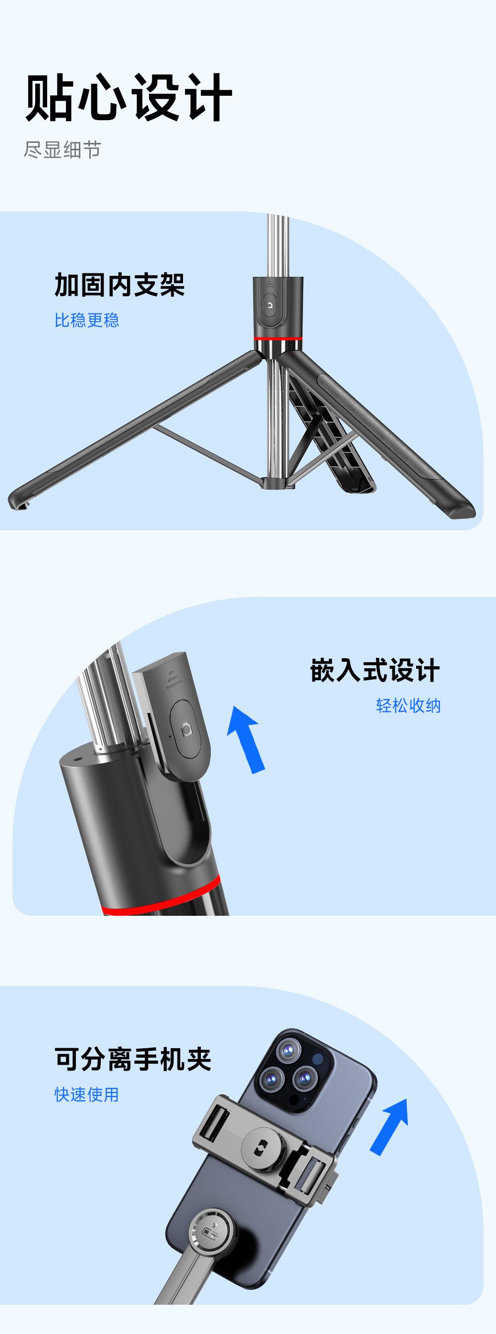 Hermoso Palo Selfie, Soporte para Teléfono, Transmisión en Vivo Antivibración, Trípode Extensible, Herramienta de Fotografía Bluetooth Tres en Uno