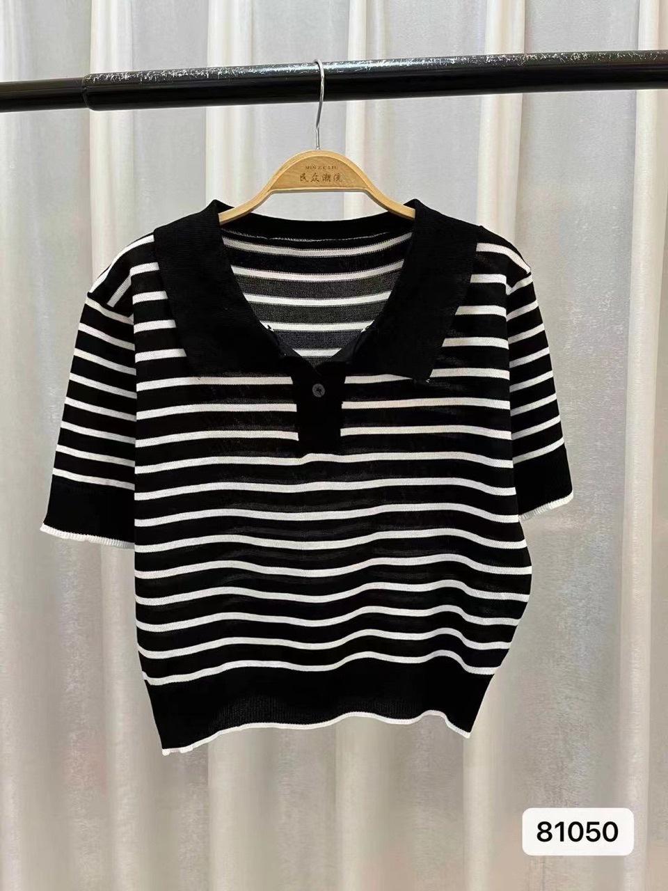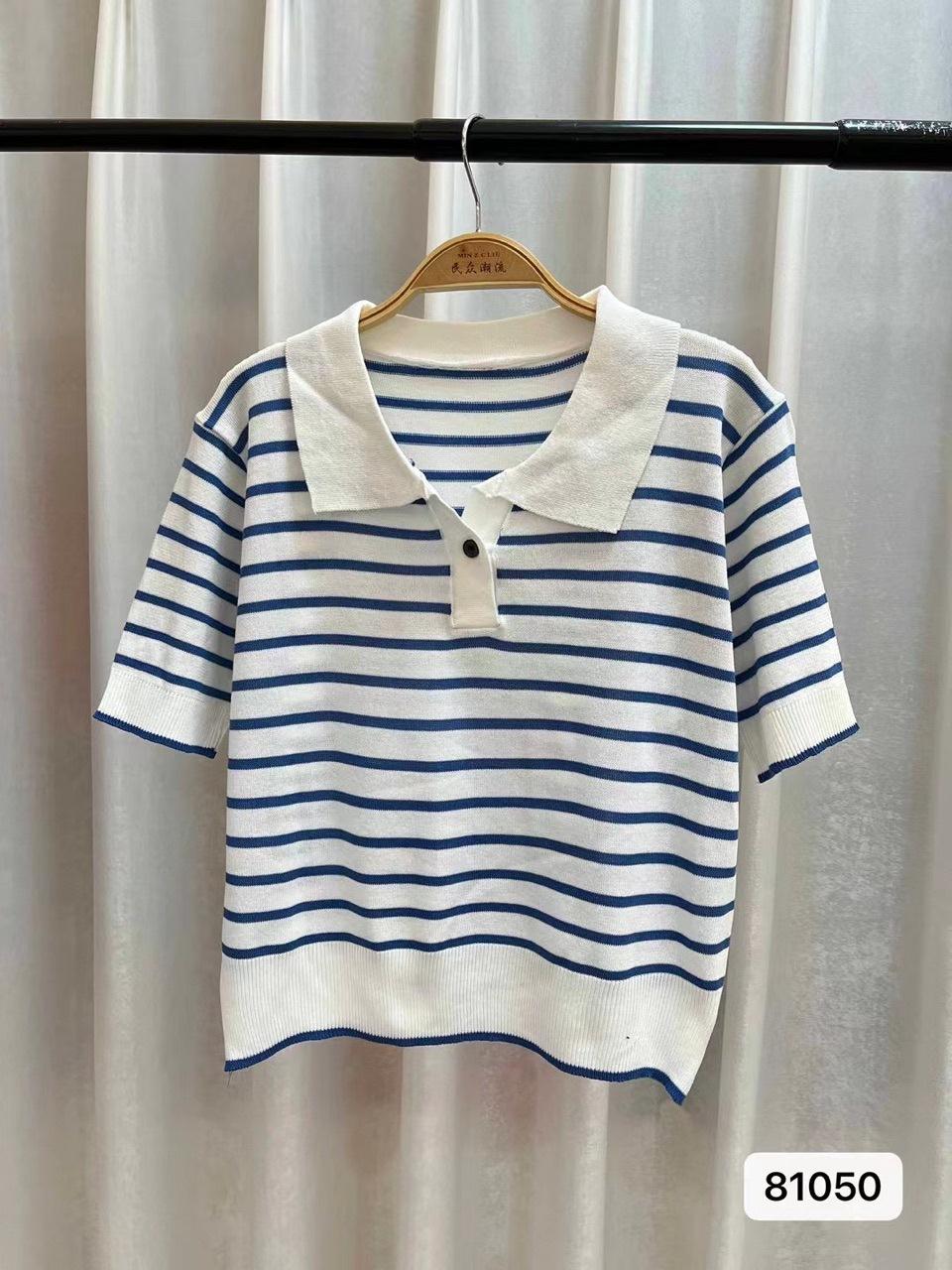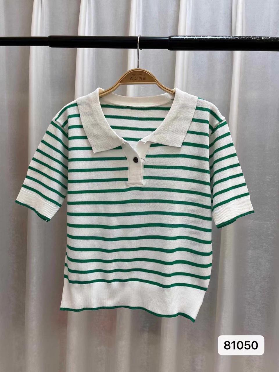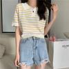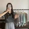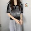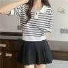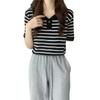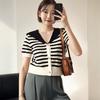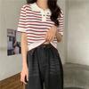 Suéter de rayas francesas para mujer, nuevo diseño de verano, manga corta, corte entallado, top corto