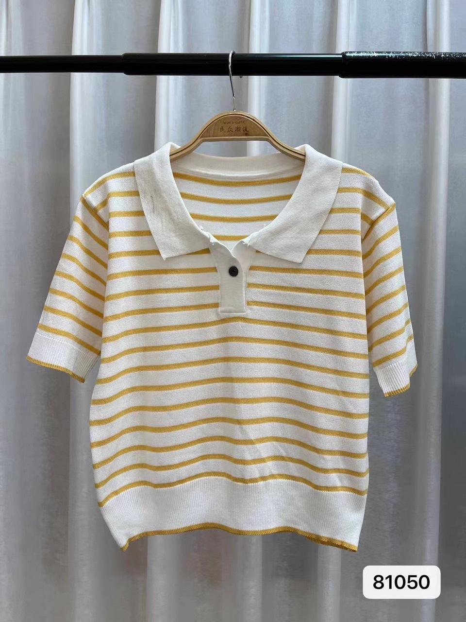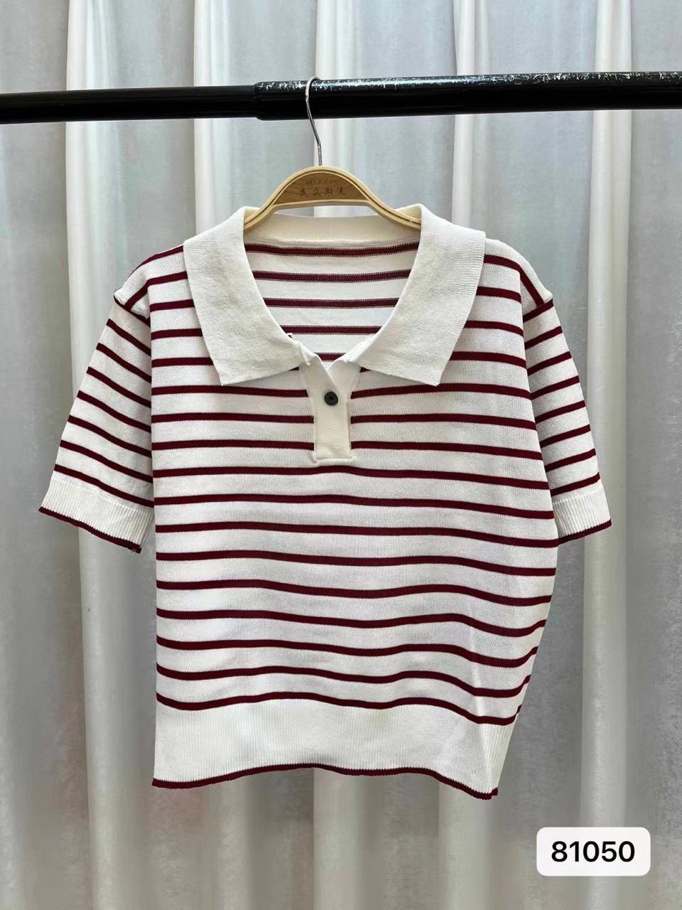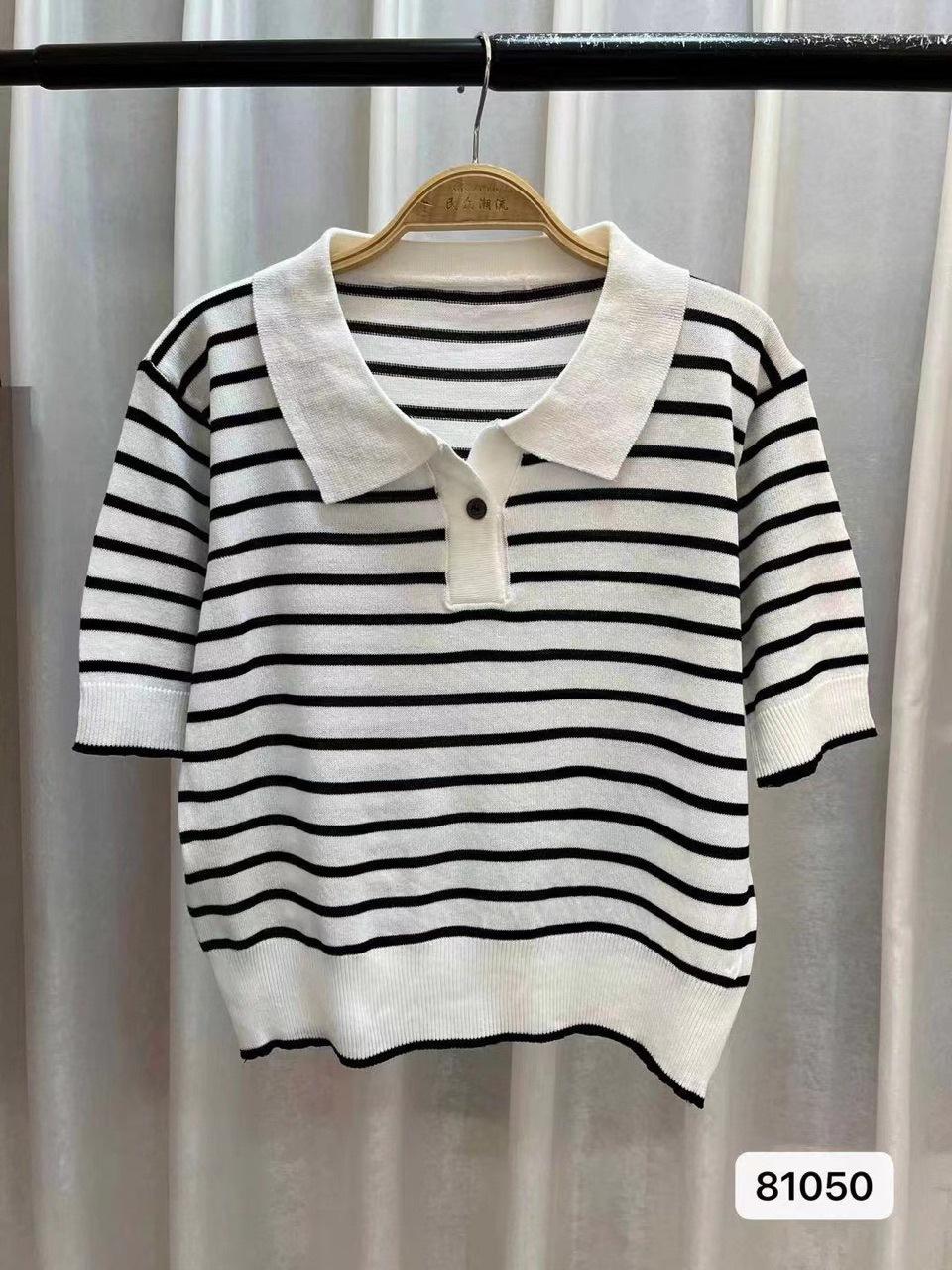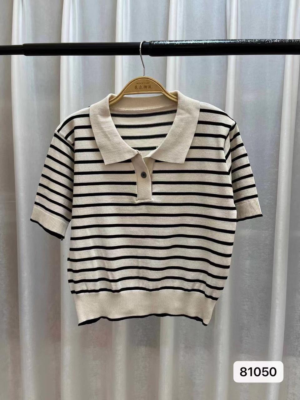 Suéter de rayas francesas para mujer, nuevo diseño de verano, manga corta, corte entallado, top corto