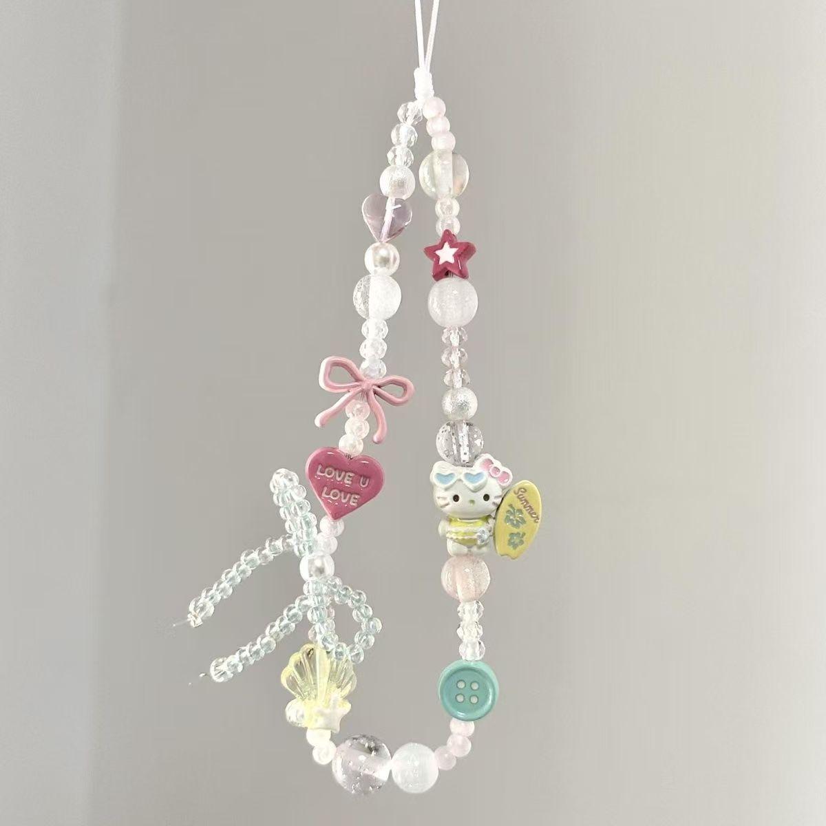 Búsqueda Caliente Ins Mariposa Kt Gato Cadena para Teléfono Móvil DIY Cuentas Ccd Anti-Pérdida Cadena Lanyard para Cámara Decorativa Llave