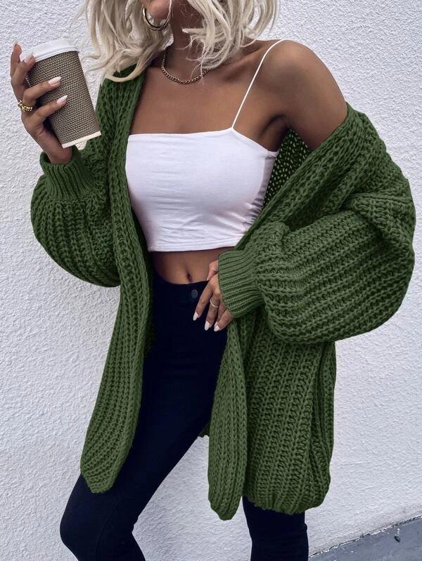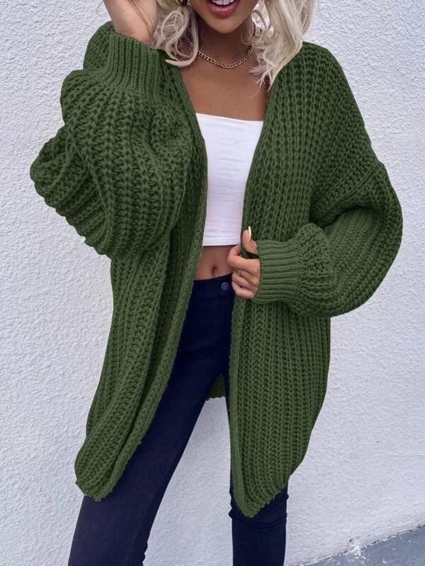 Cárdigan de Punto Nuevo Otoño e Invierno 2025 Europeo y Americano Transfronterizo de Largo Medio Color Puro Casual para Mujer Suelto Cárdigan Outwear para Mujer