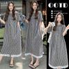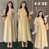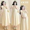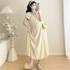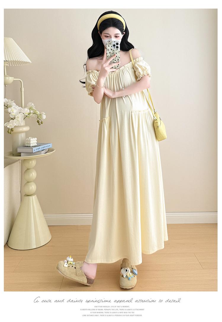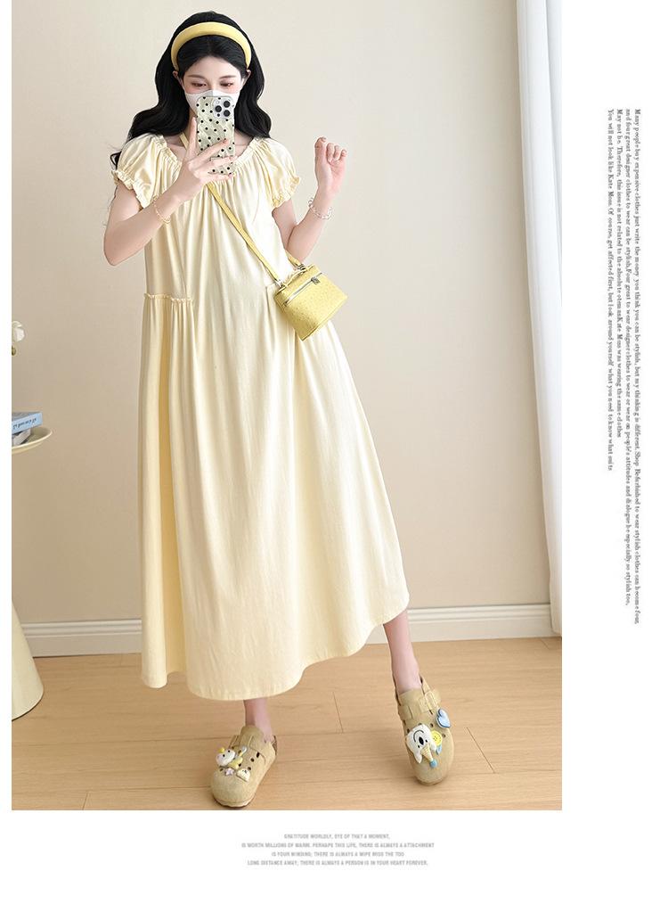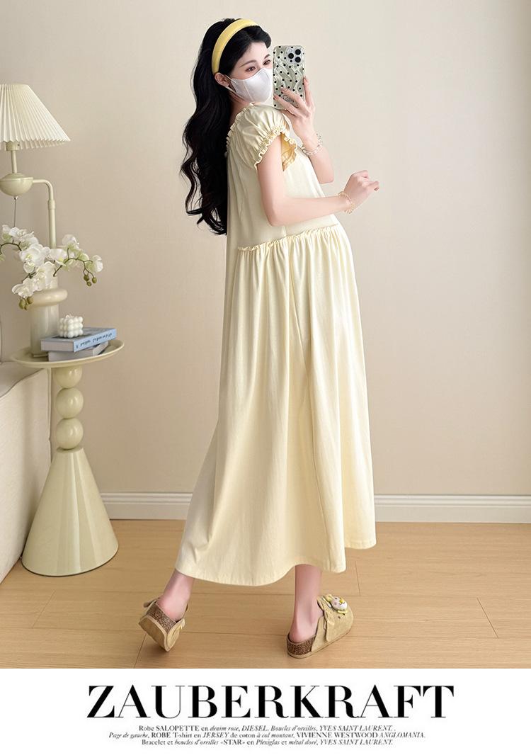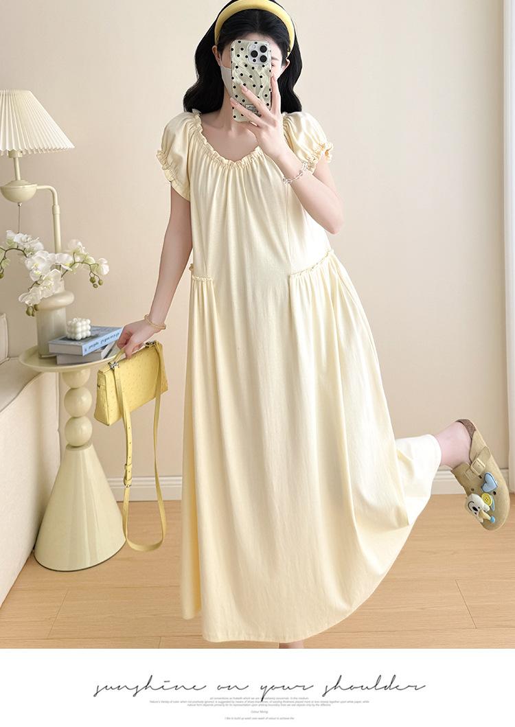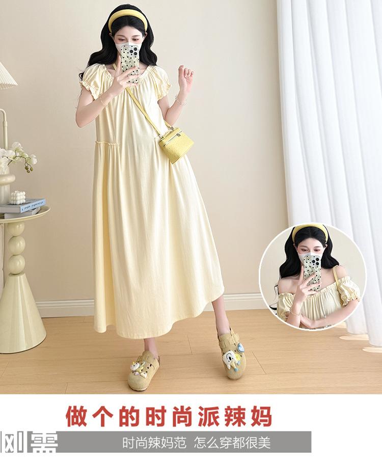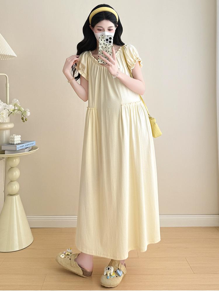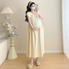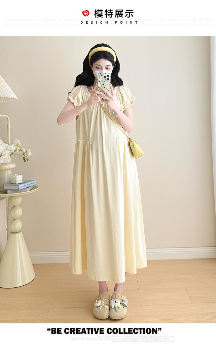2025 Nuevo Vestido de Maternidad de Verano Coreano de Encaje de Manga Corta Holgado Casual Cuello en V Look Adelgazante Vestido Largo de Maternidad