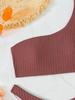 Traje de baño bikini dividido para mujer de un hombro con almohadilla para el pecho desmontable