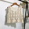 Chaleco de Punto con Cordones de Color Contrastante Estilo Coreano para Mujer Nuevo Verano Delgado Corto Chic Top sin Mangas