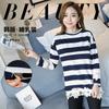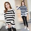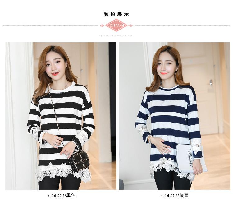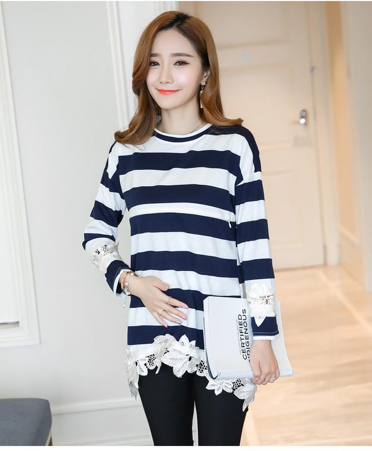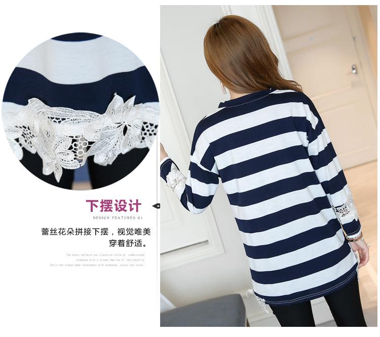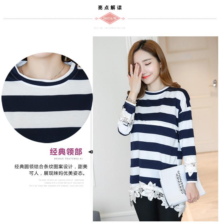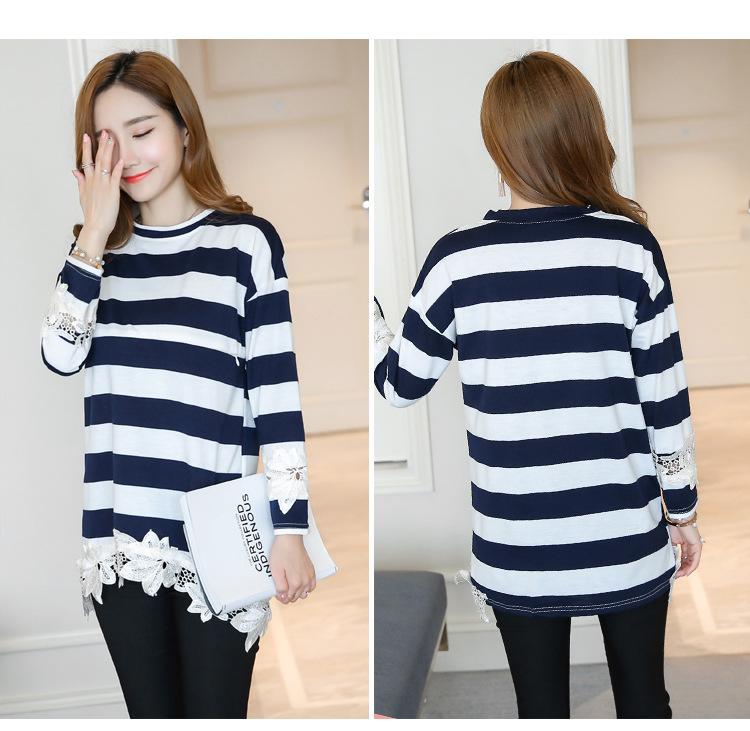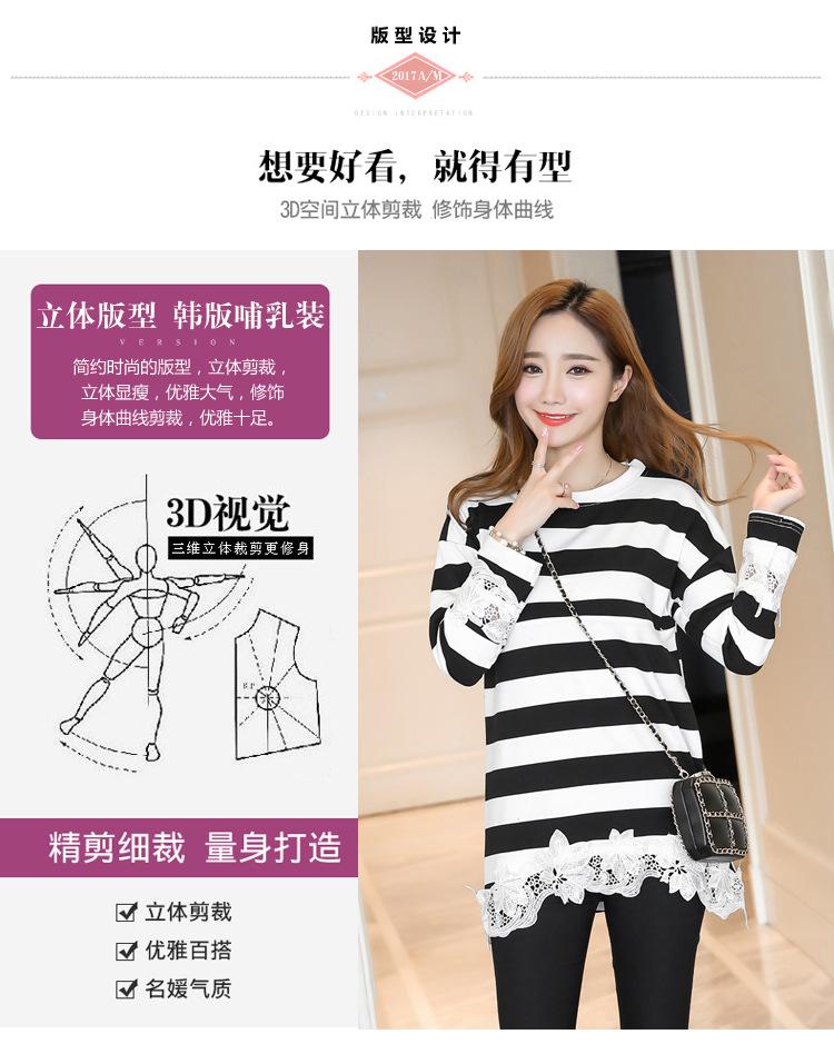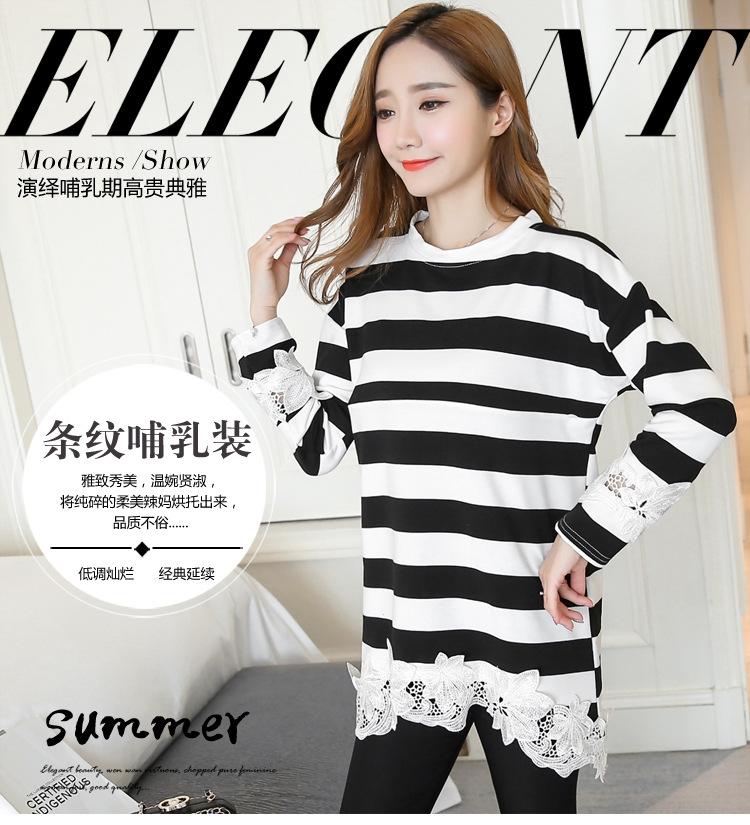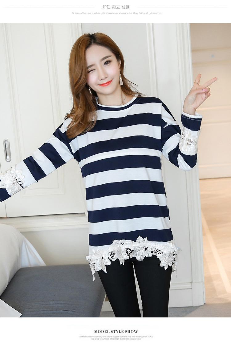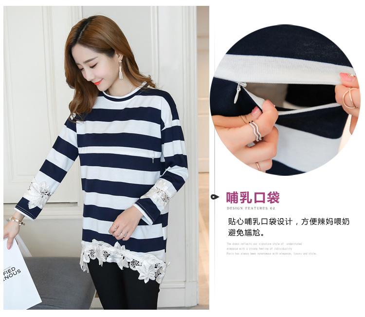 Maternidad 2022 Primavera y Otoño Nuevo Forrado de Lana Engrosado Rayado Manga Larga Alimentación Camiseta Base Talla Grande Encaje Lactancia