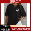 Camiseta de Manga Corta Nueva Europea y Americana 2025 para Mujer, Camiseta Casual Holgada con Estampado Chic de Corazón