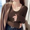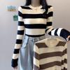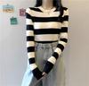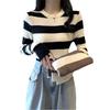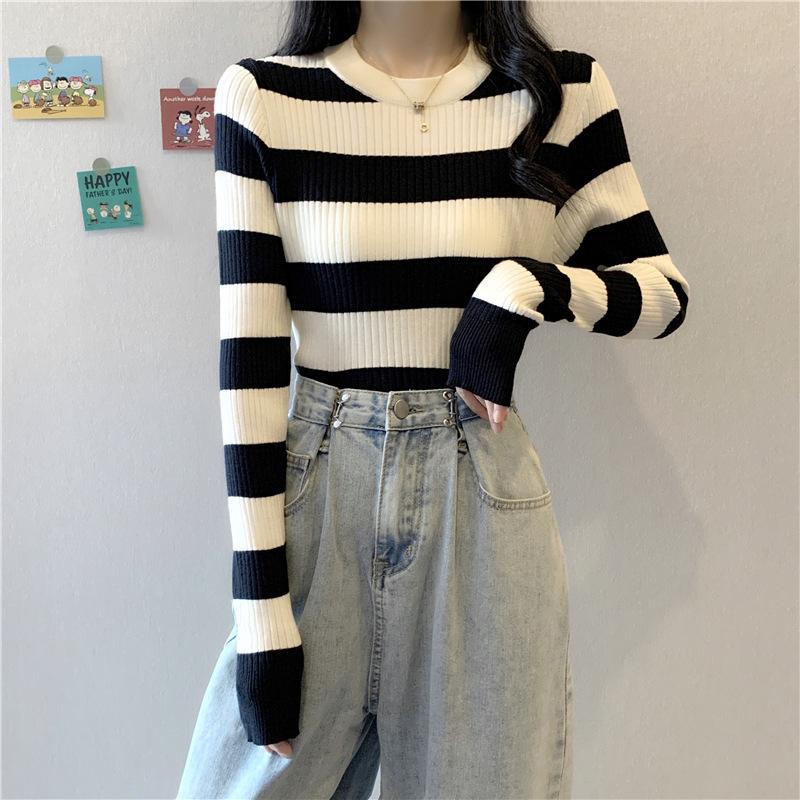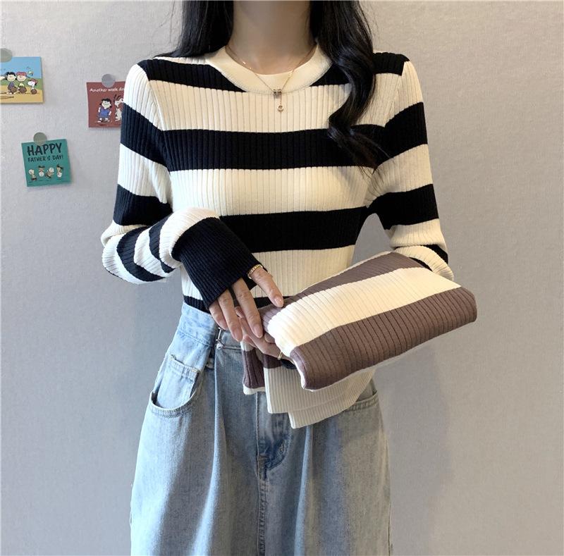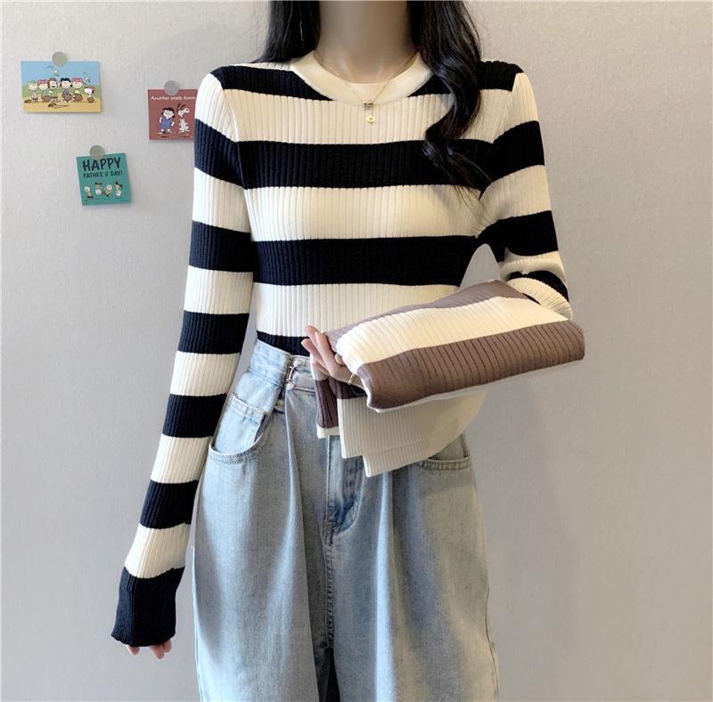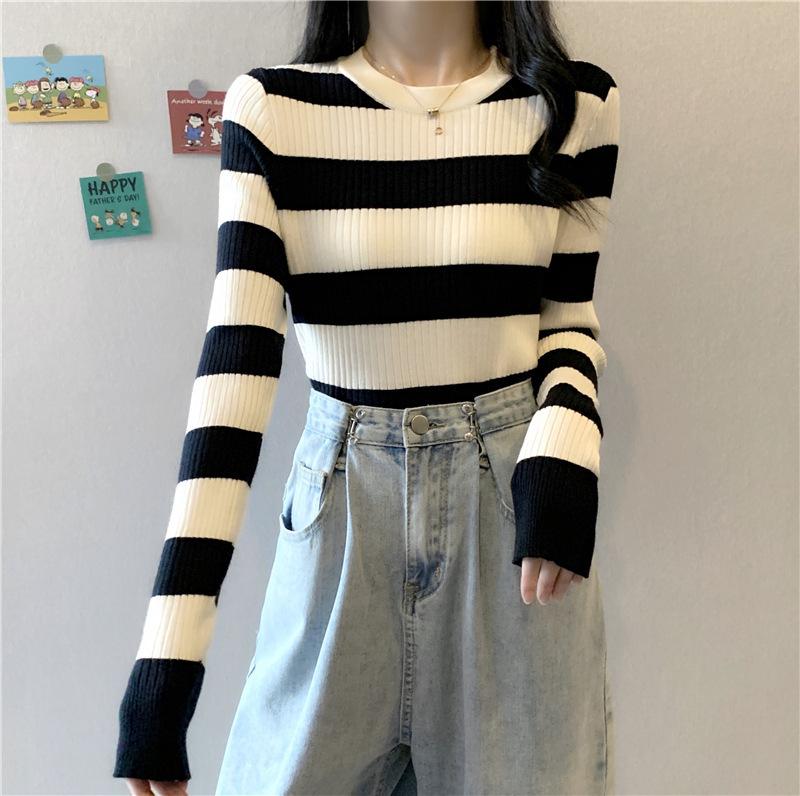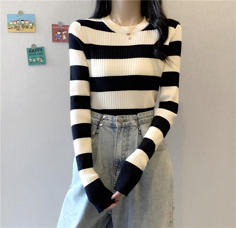 2024 primavera y otoño a rayas tejido manga larga camiseta básica top nuevo delgado adelgazante suéter versátil moderno simple
