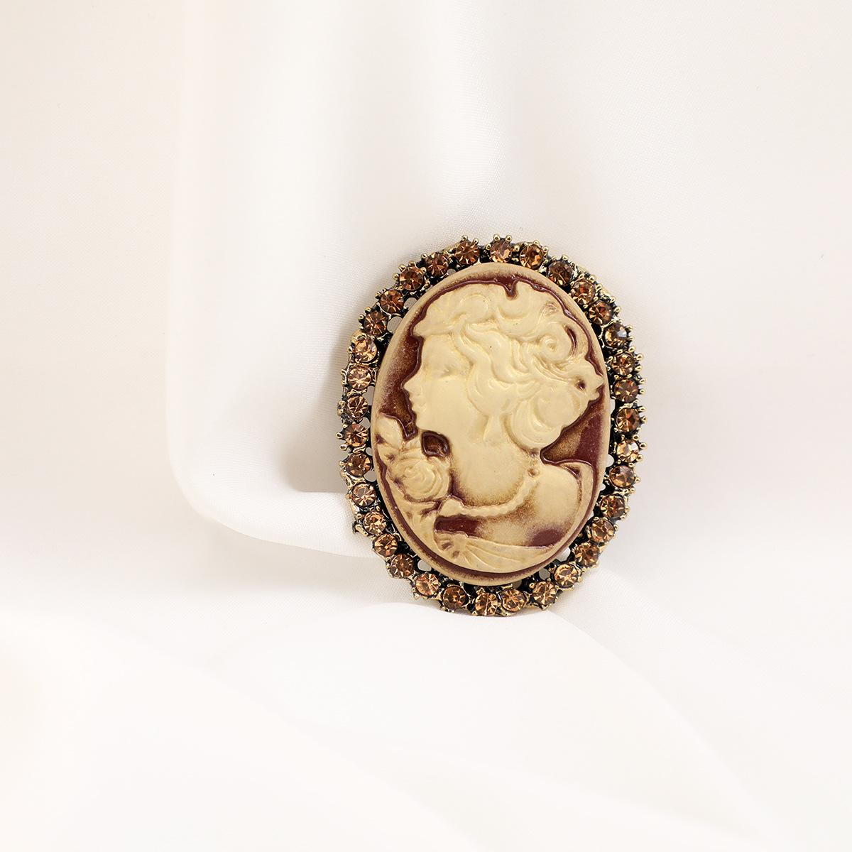 Broche Corsage Retro Europeo y Americano con Retrato de Belleza con Pedrería Broche de Pedrería de Alta Gama Accesorios para Ropa Pin Venta al por Mayor