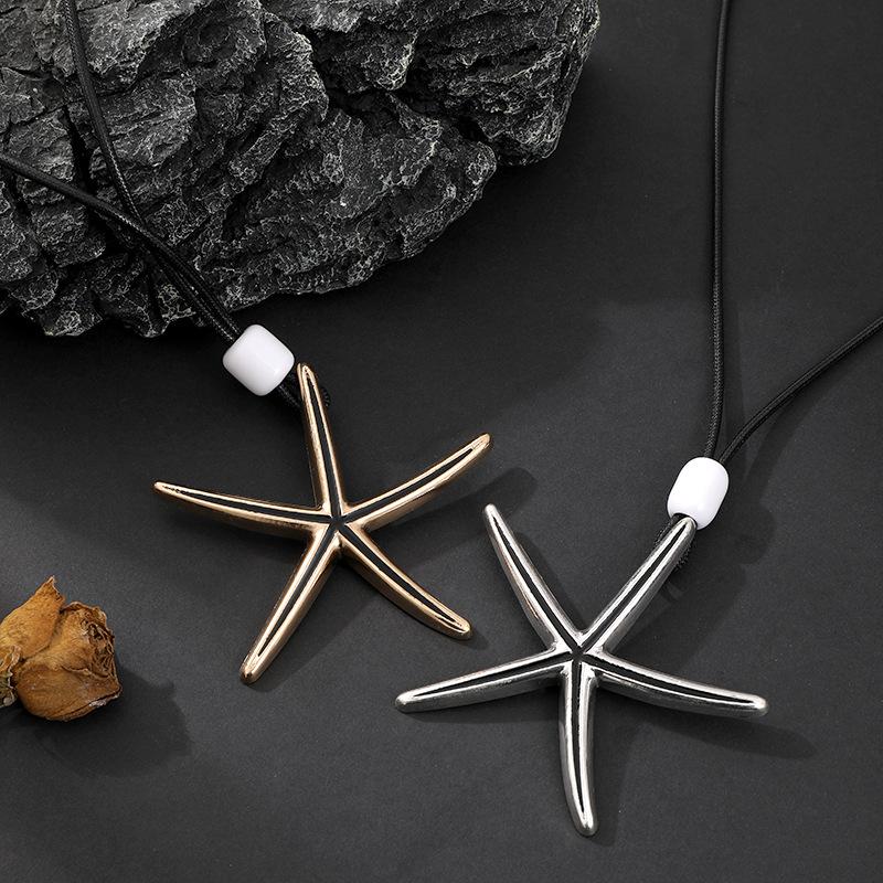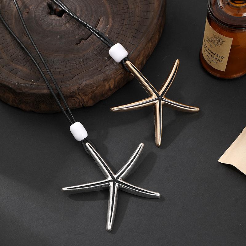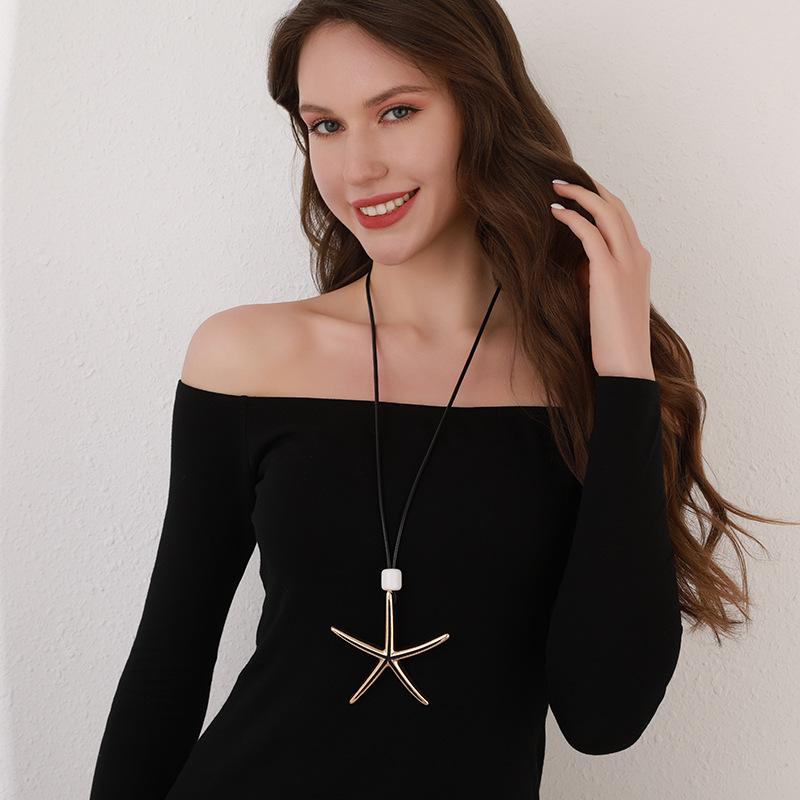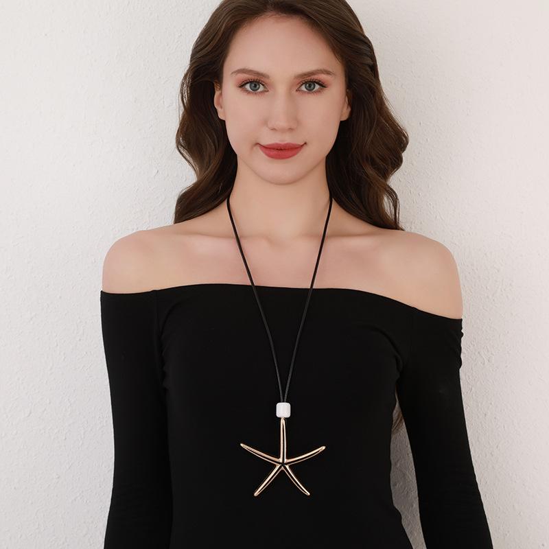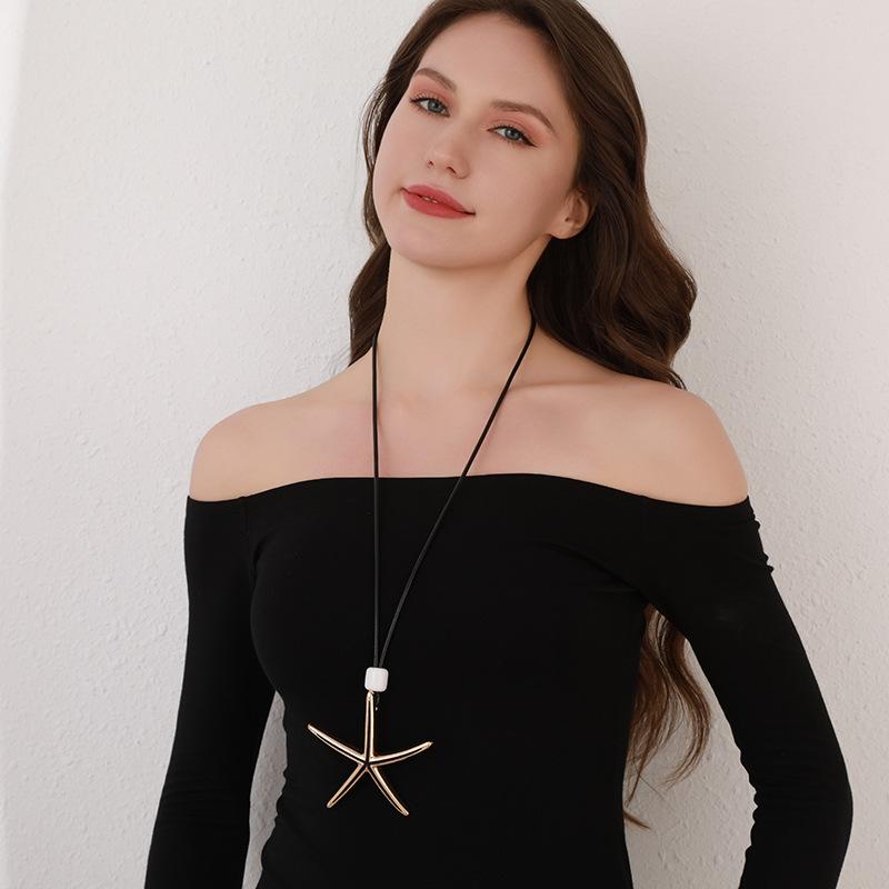 Collar largo de joyería para dama de Amazon transfronterizo, colgante de estrella de mar, joyería geométrica personalizada, moda europea y americana, simple al por mayor
