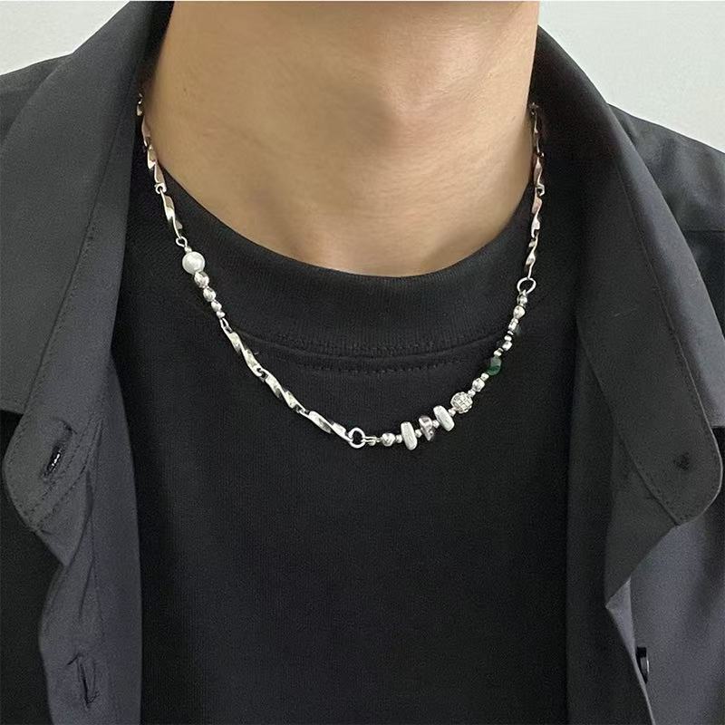 Collar Popular Transfronterizo de Empalme de Acero de Titanio que No se Desvanece para Hombre Diseño de Nicho Hip-Hop de Alta Gama Accesorios de Cadena para Clavícula