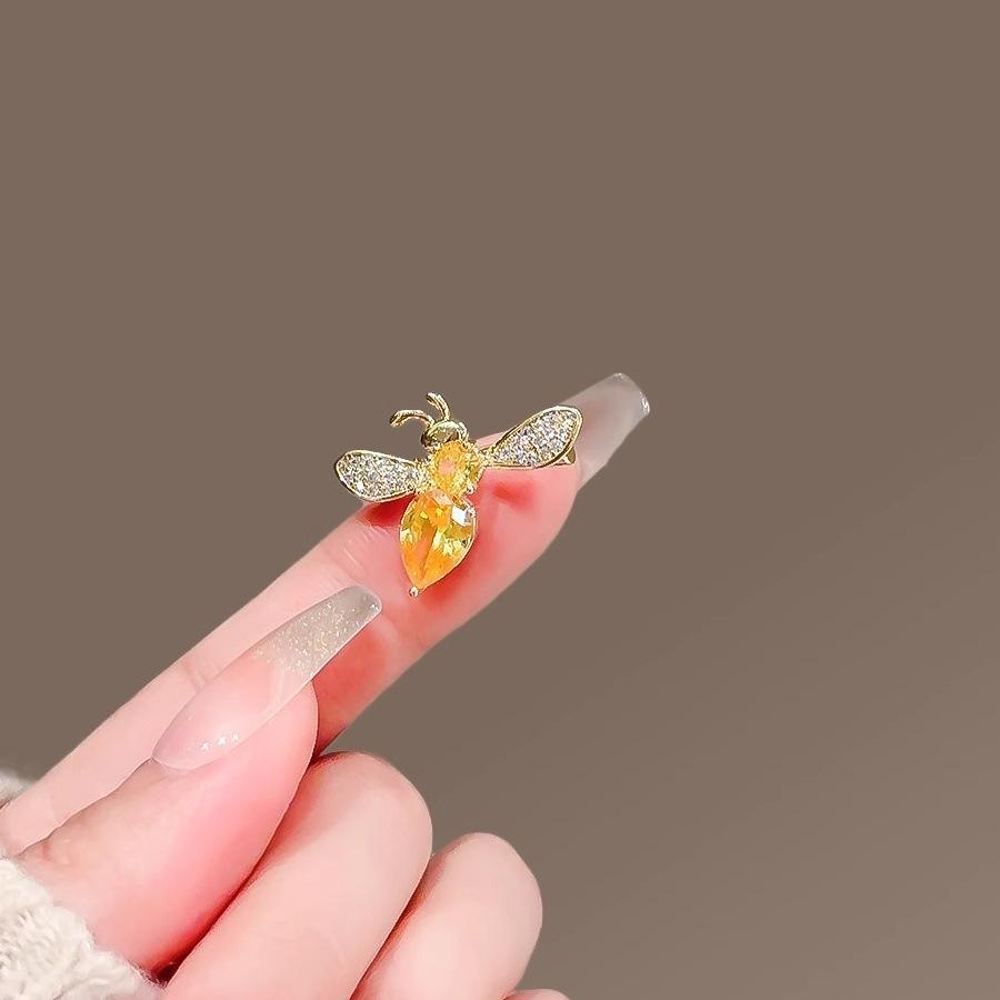 Broche Mini de Abeja de Zircón para Mujer, Lindo Exquisito Corsage, Accesorios para Cuello de Cárdigan, Pin de Hebilla Antideslumbrante de Verano