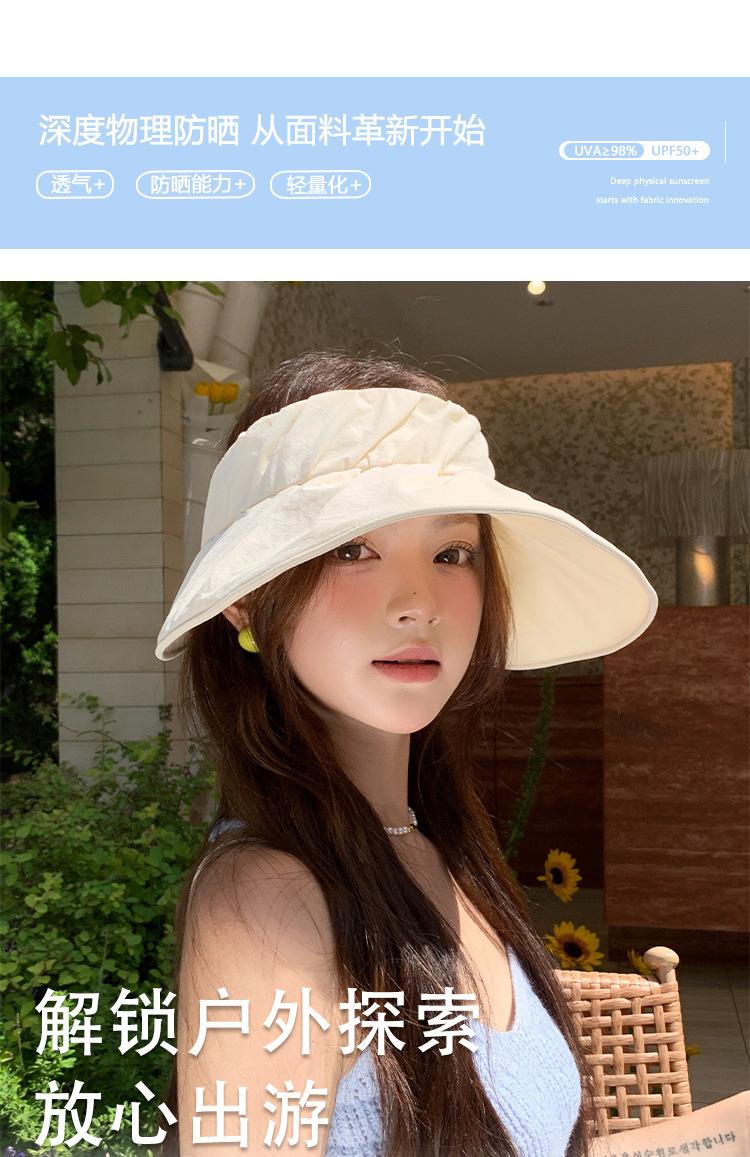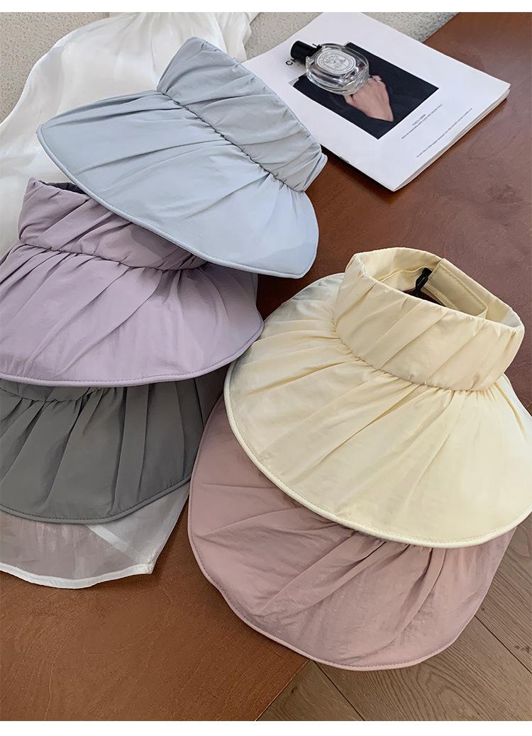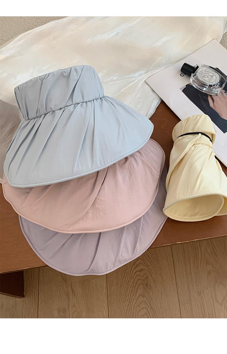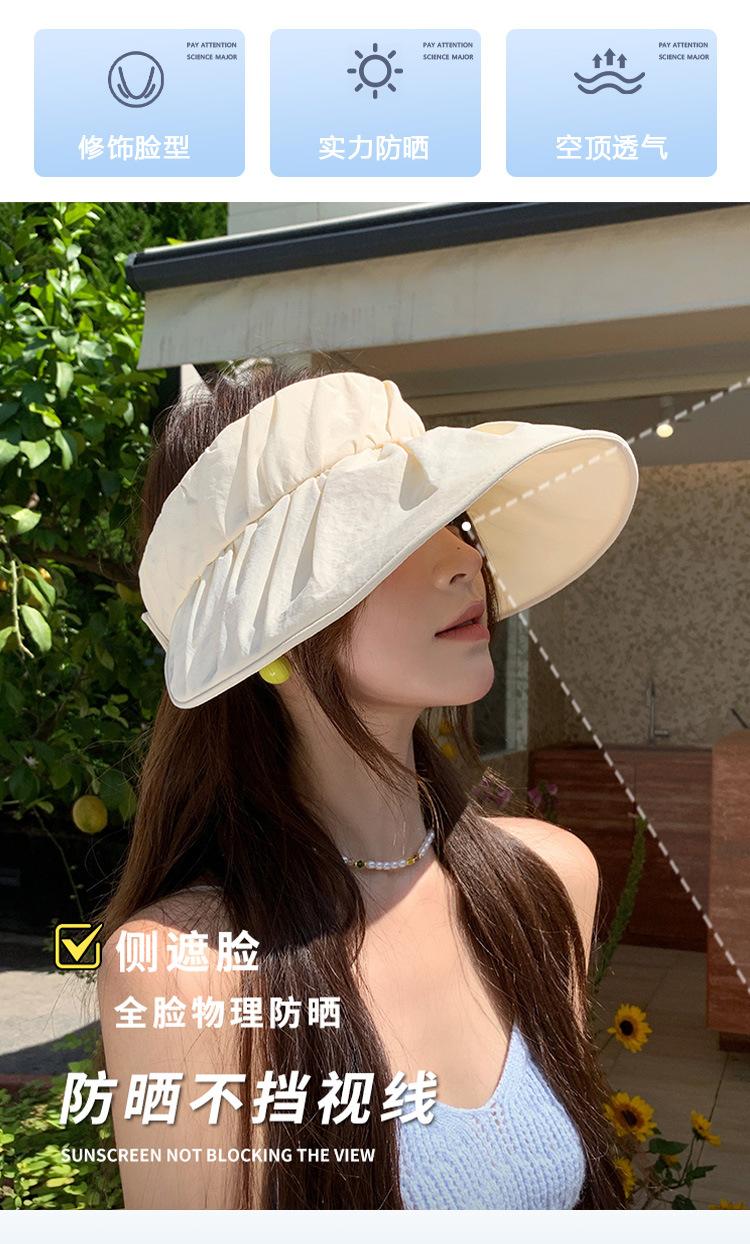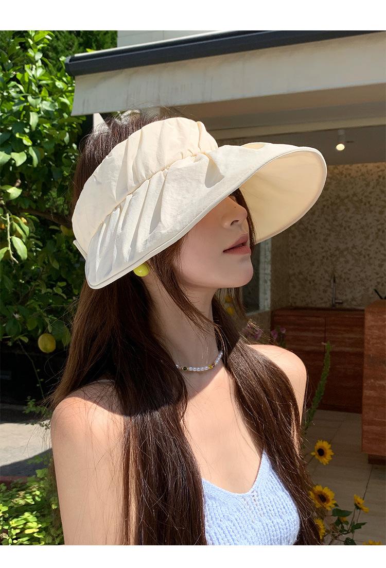 Sombrero de Sol de Ala Ancha Plisado Estilo Coreano con Copa Pequeña Vacía para Mujer Verano Exterior Protección Solar UV Cubierta Facial Sombrero de Sol